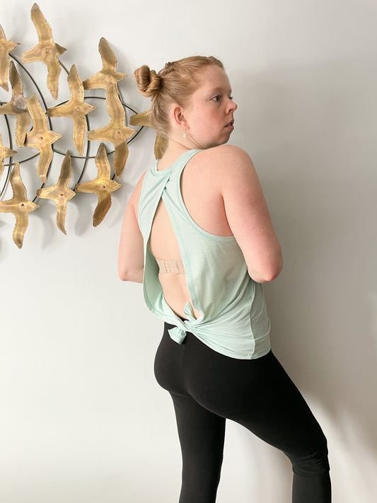 Gap Fit Mint Green Stripe Open Back Workout Top - XS/S