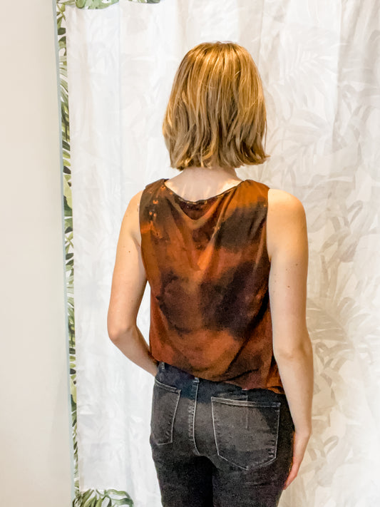 Reverse Tie Dye Upcycled Brown Black Sleeveless Top - XS/S