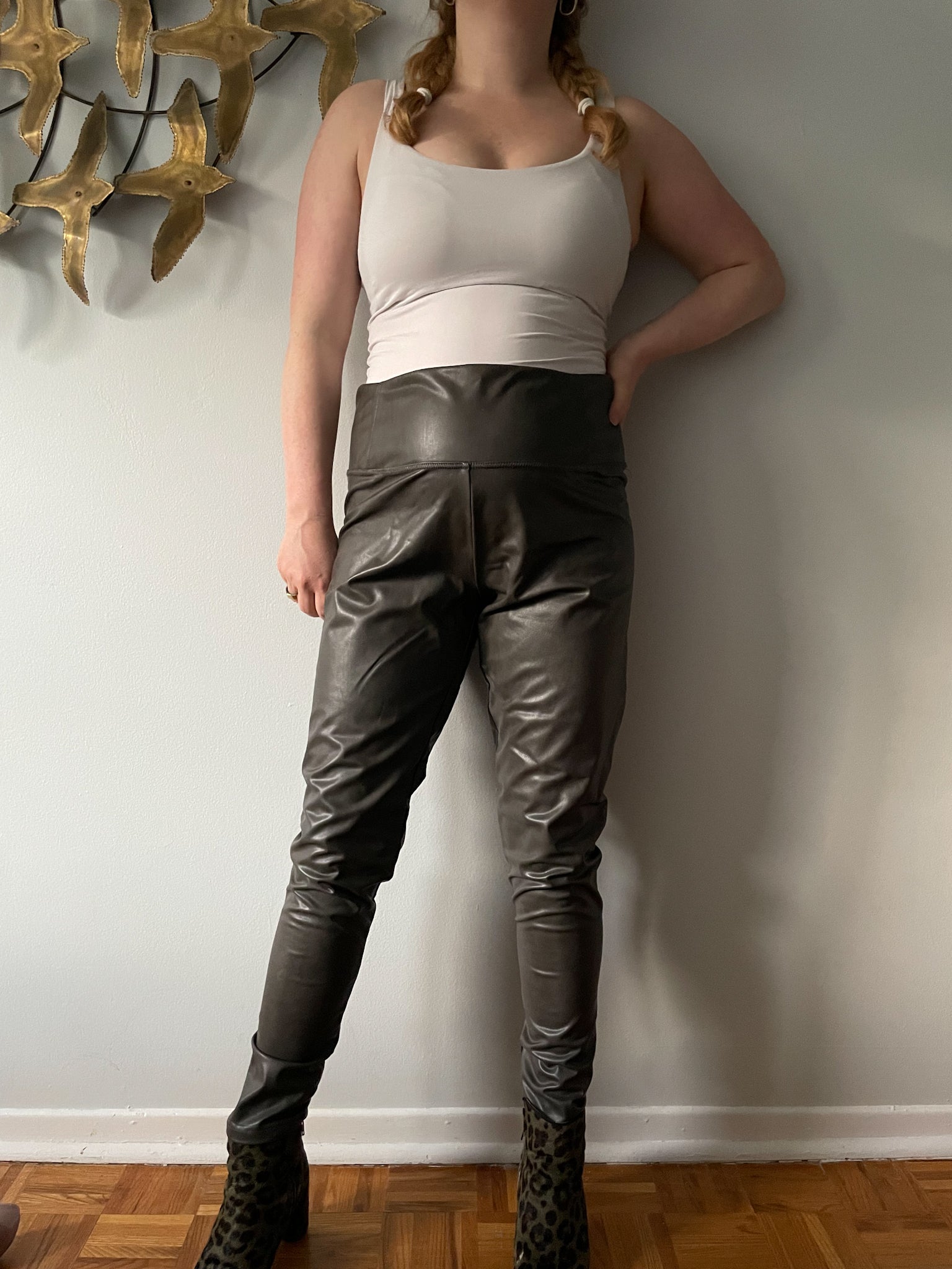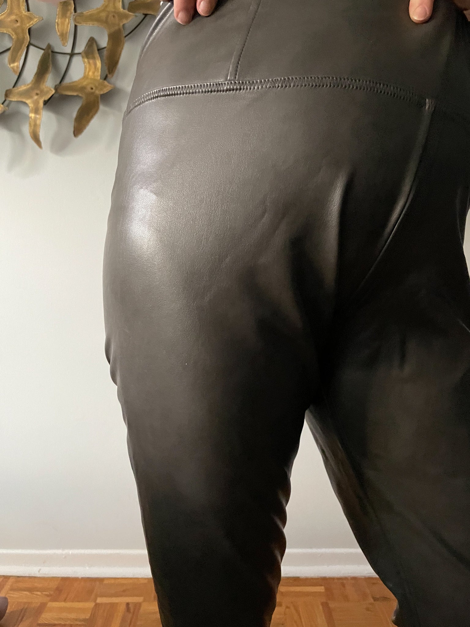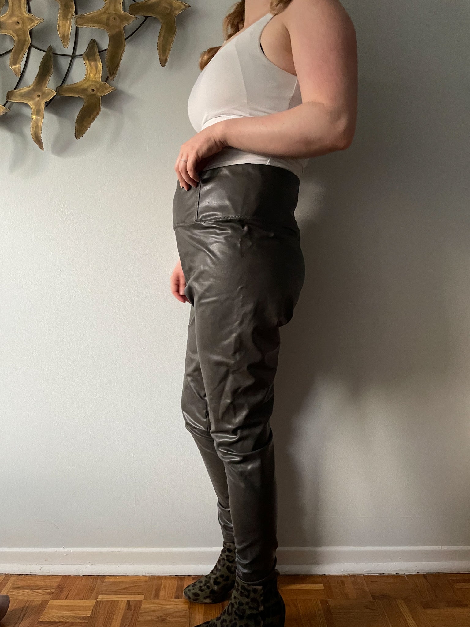 7 For All Mankind Taupe Gray Faux Leather Fleece Lined Legging Pants - 1X