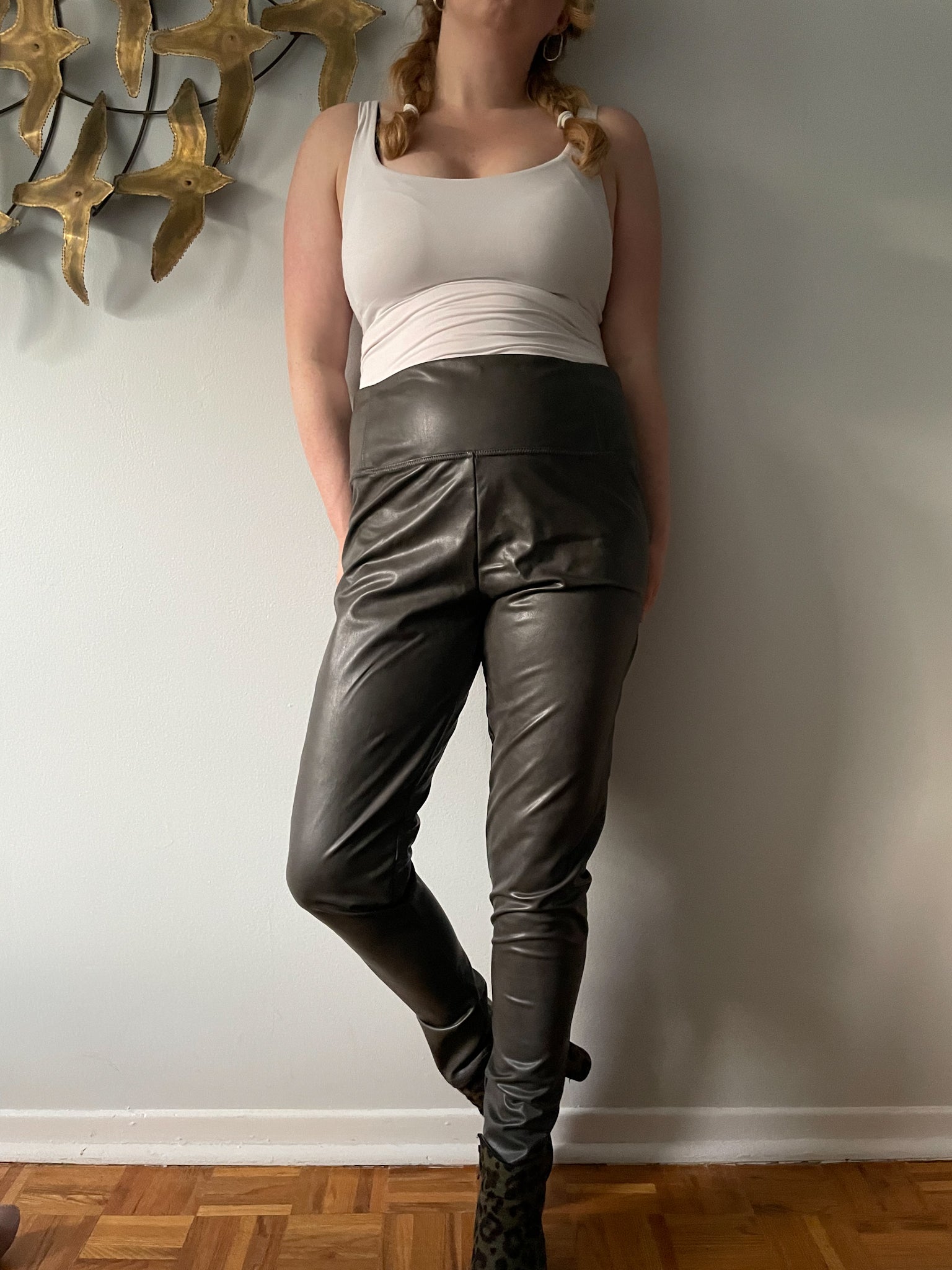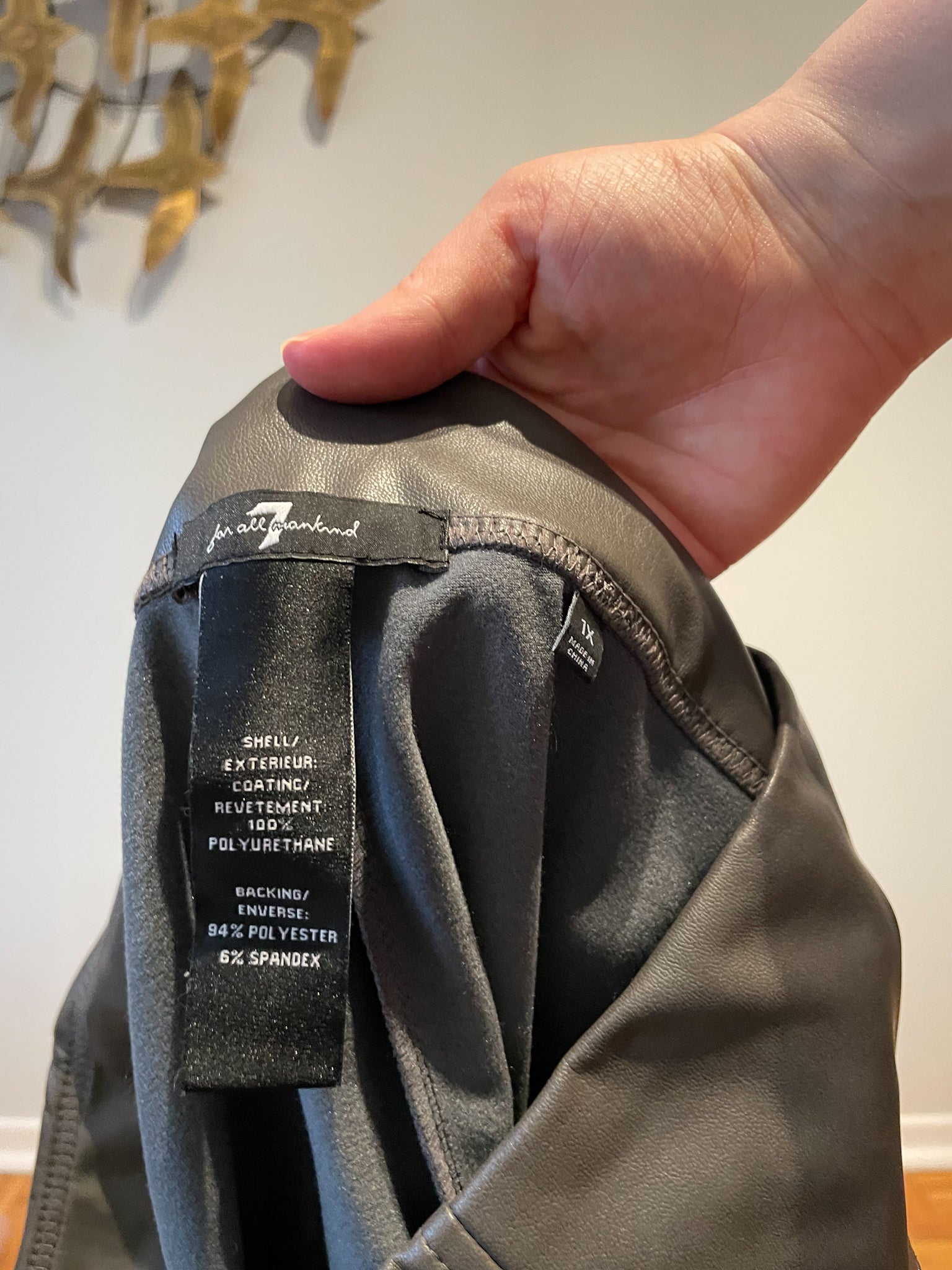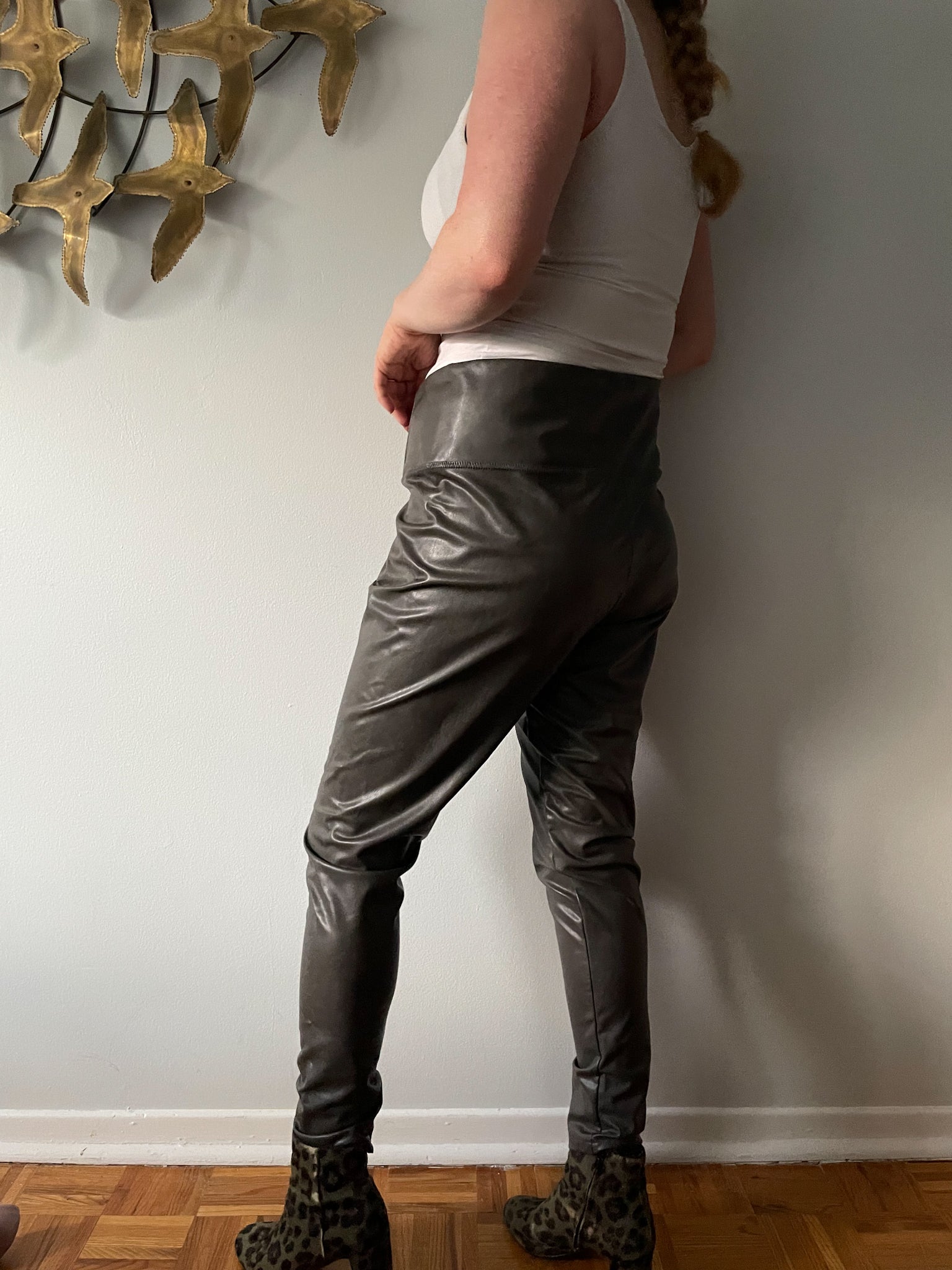 7 For All Mankind Taupe Gray Faux Leather Fleece Lined Legging Pants - 1X