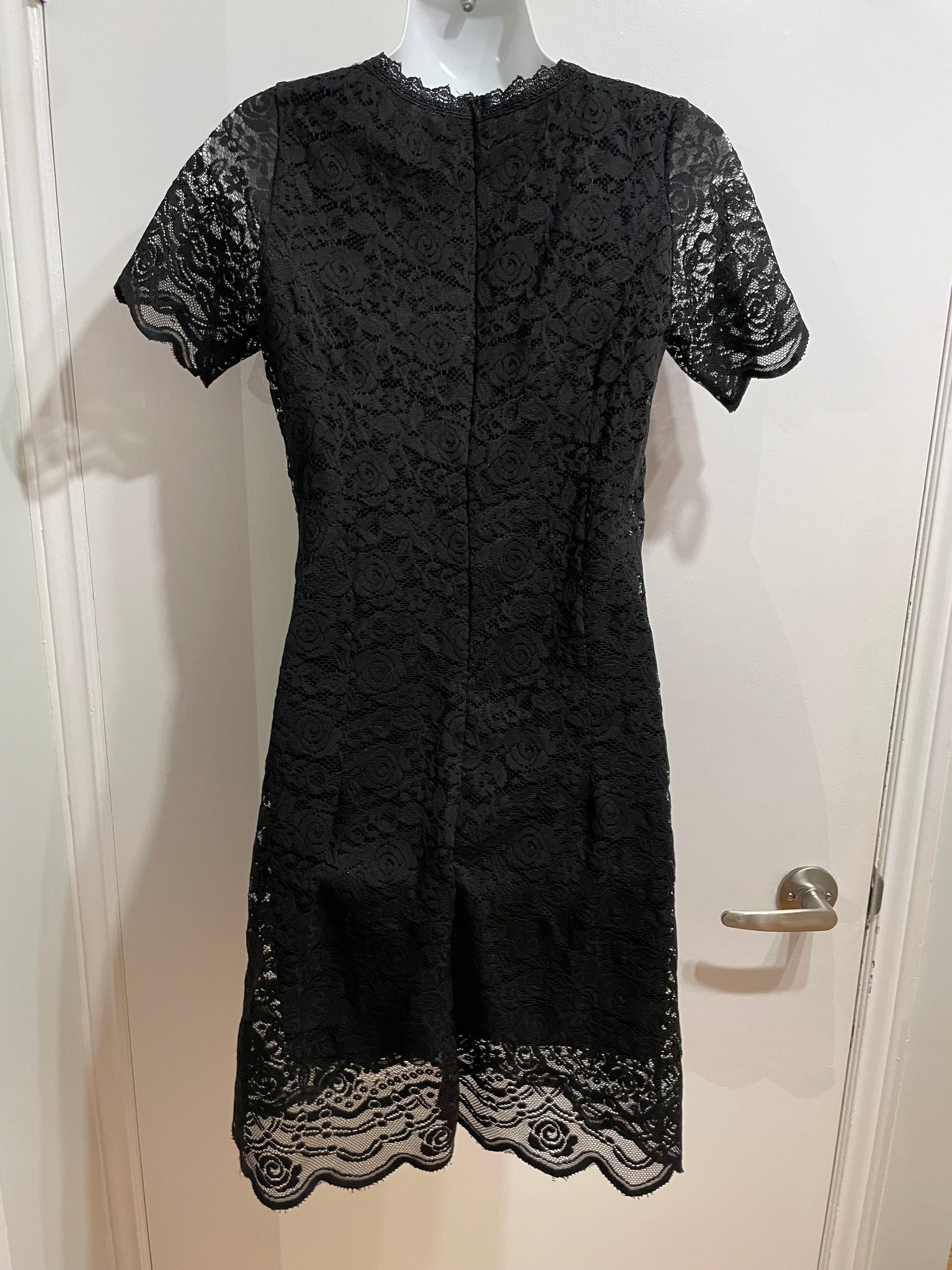 Classic Black Lace Short-Sleeve Shift Dress – Small