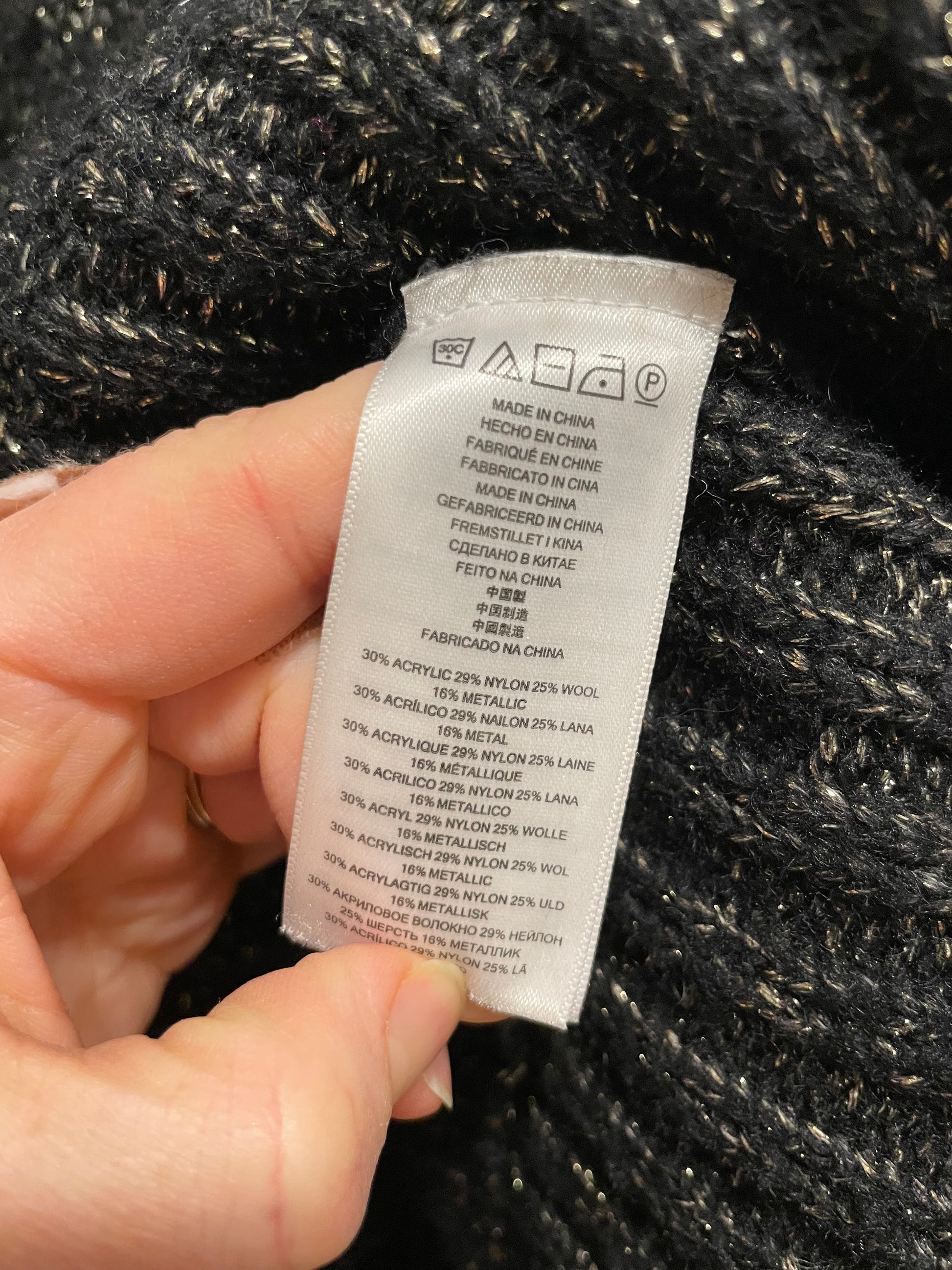 - Material: 30% Acrylic, 29% Nylon, 25% Wool, 16% Metallic