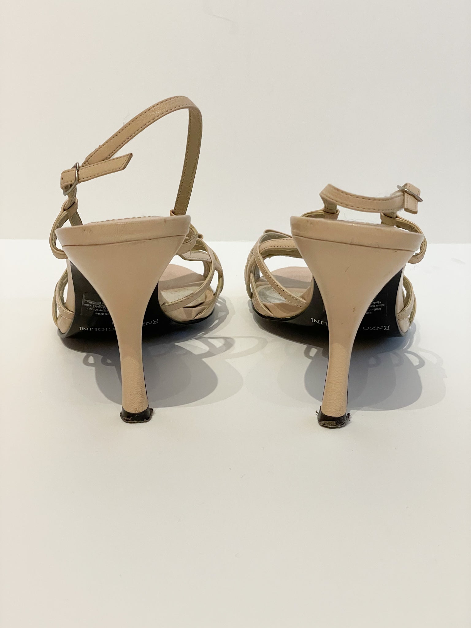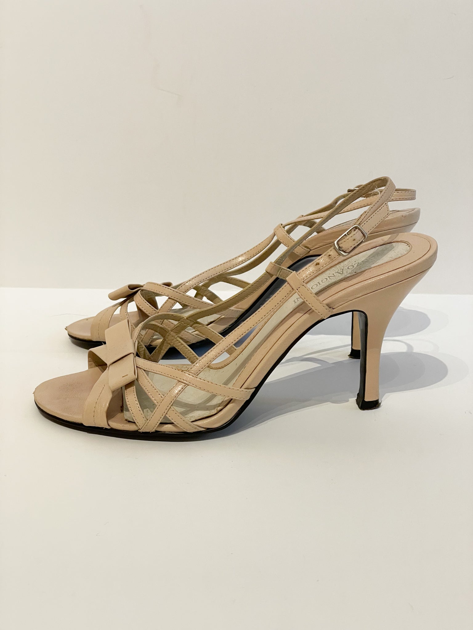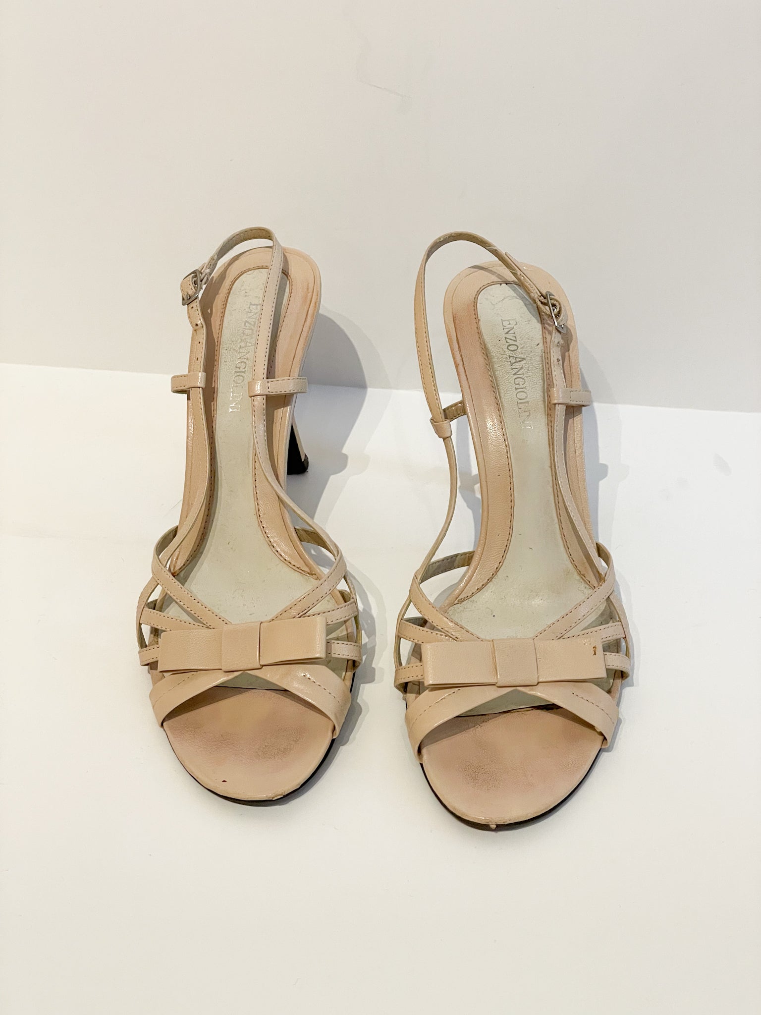 Enzo Angiolini Beige Leather Strappy Bow Heels - Size 7.5