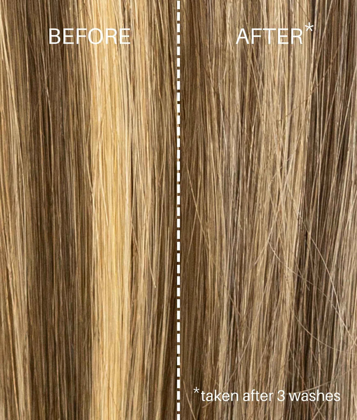 Individual results may vary and depend on factors such as hair shade, hair porosity, and consistency of use. Lighter hair colours and more porous hair will typically see the most dramatic results.