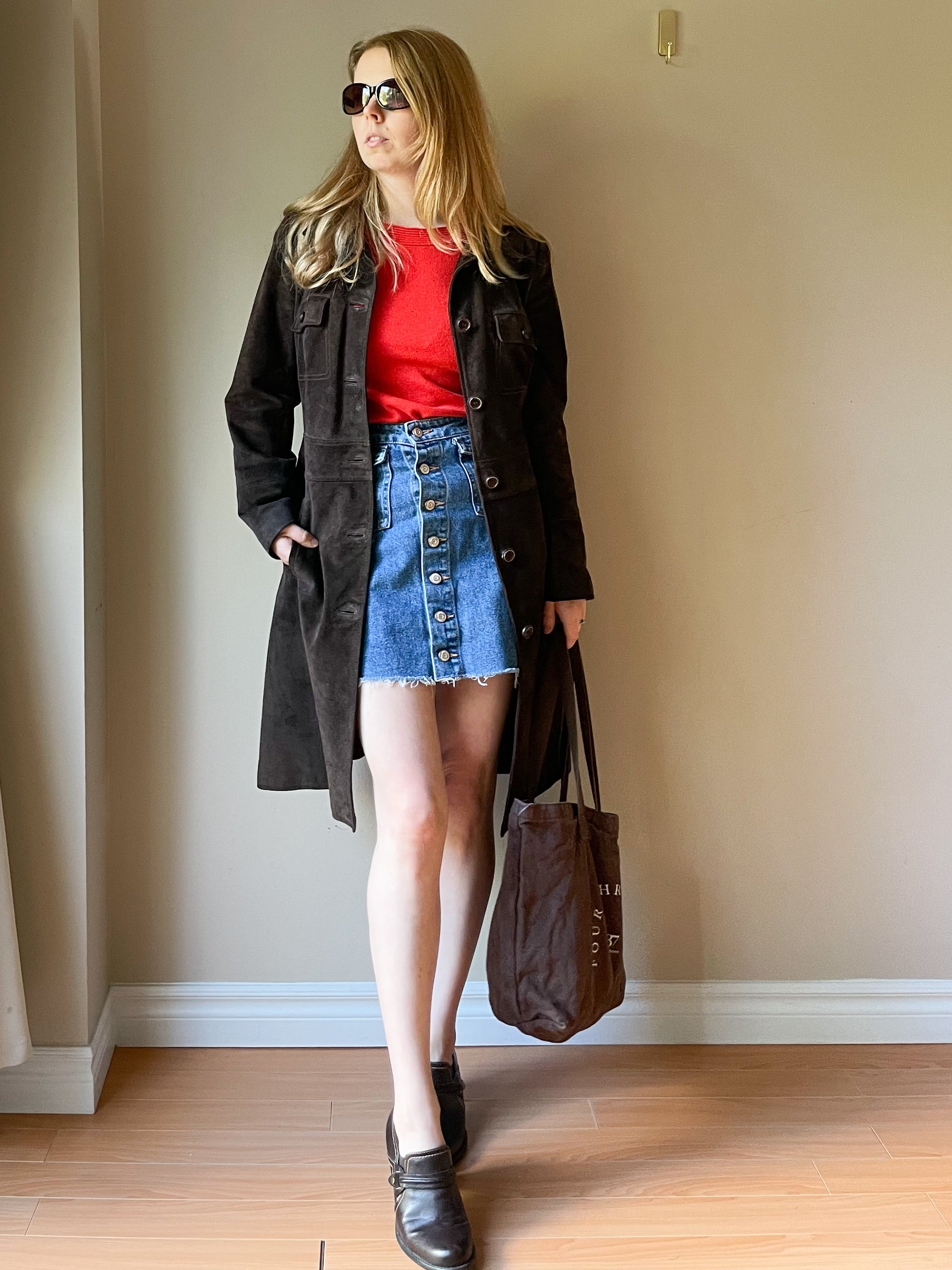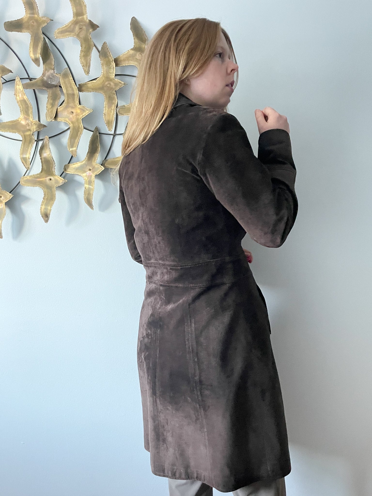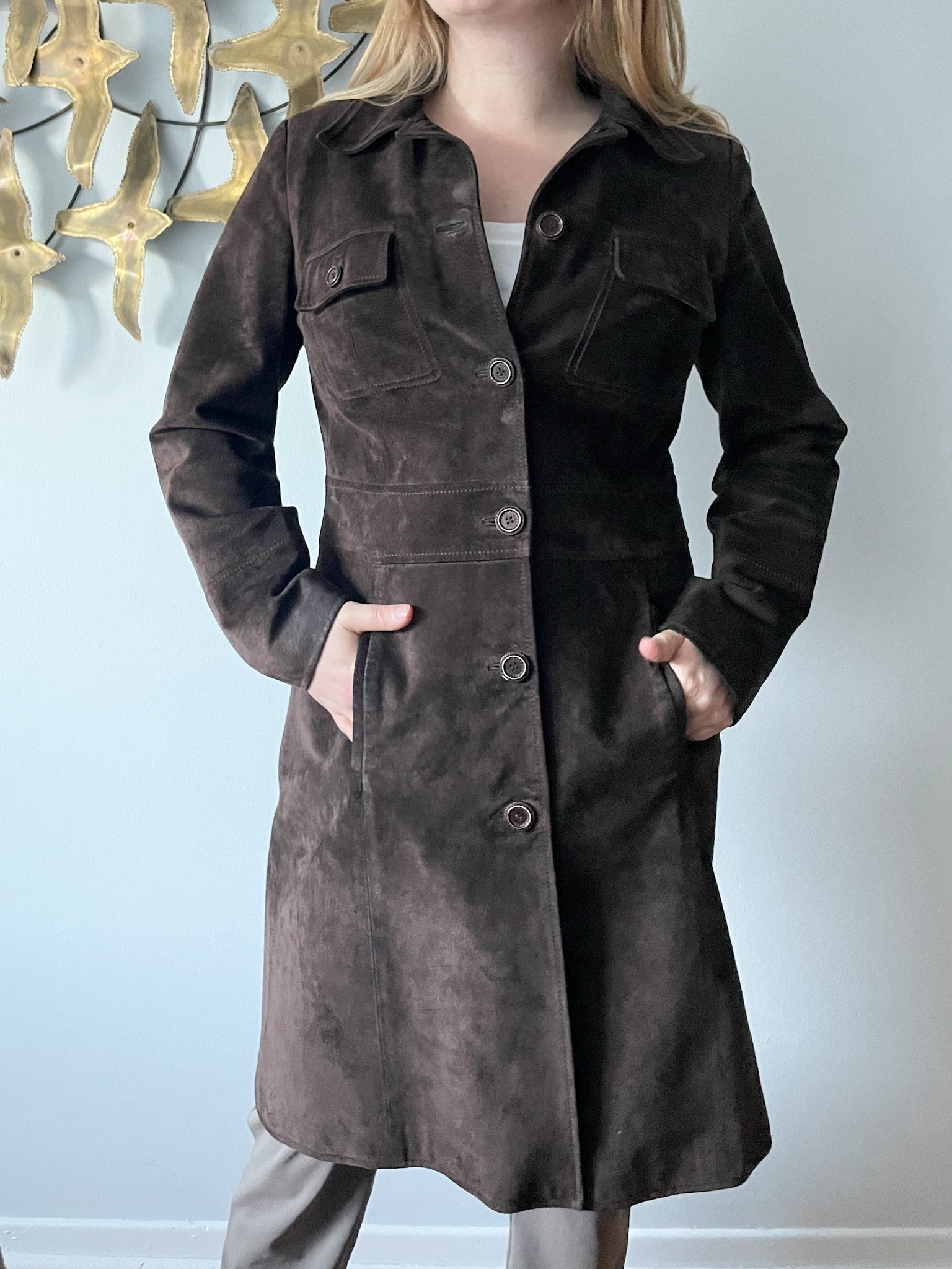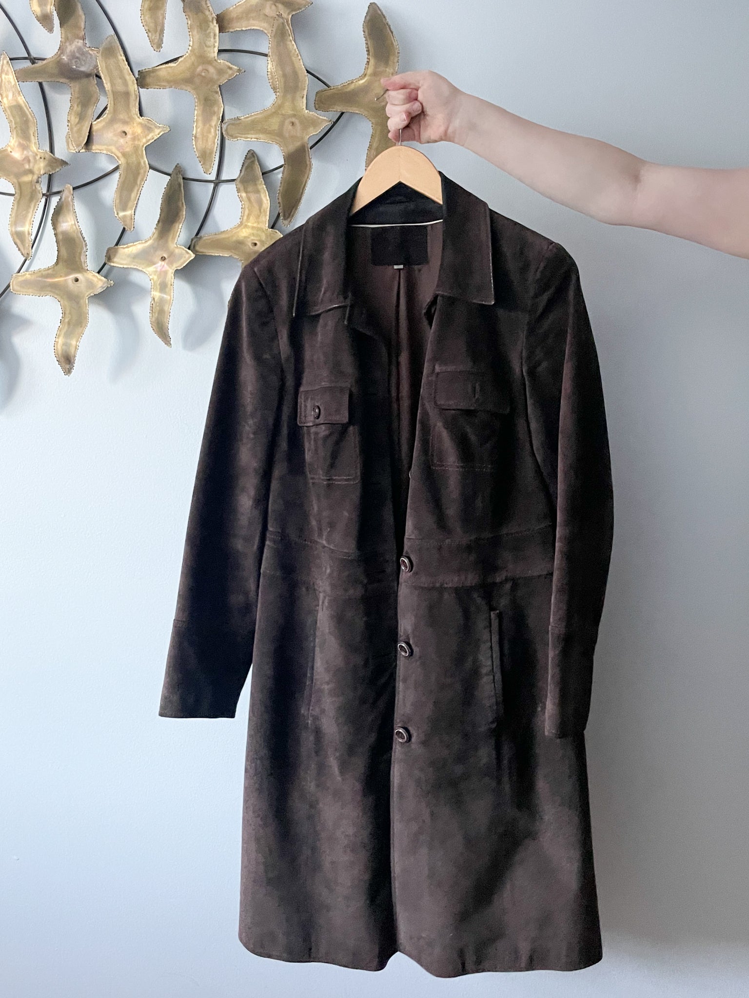 M&S Chocolate Brown Genuine Suede Mid Length Jacket - S/M