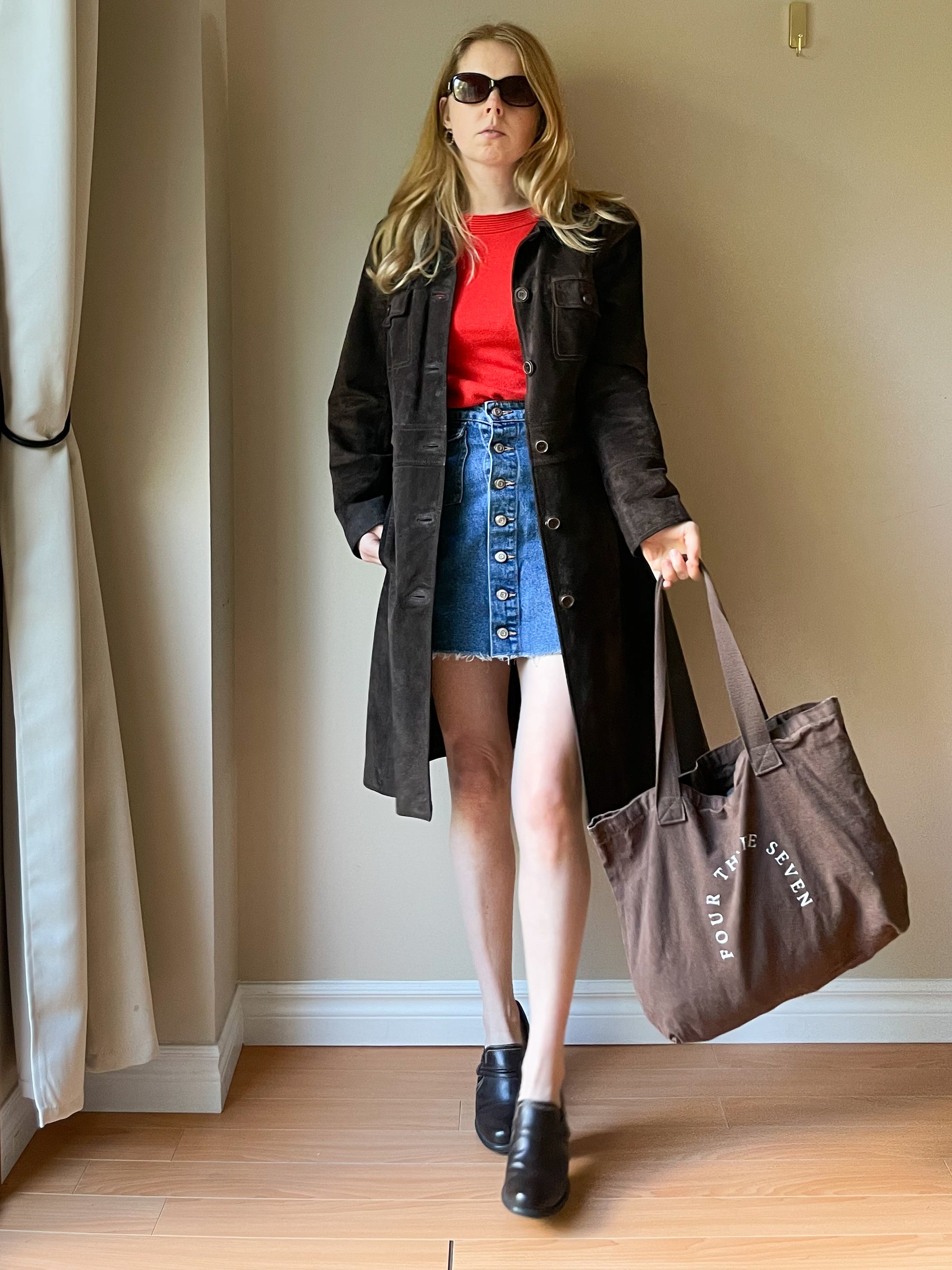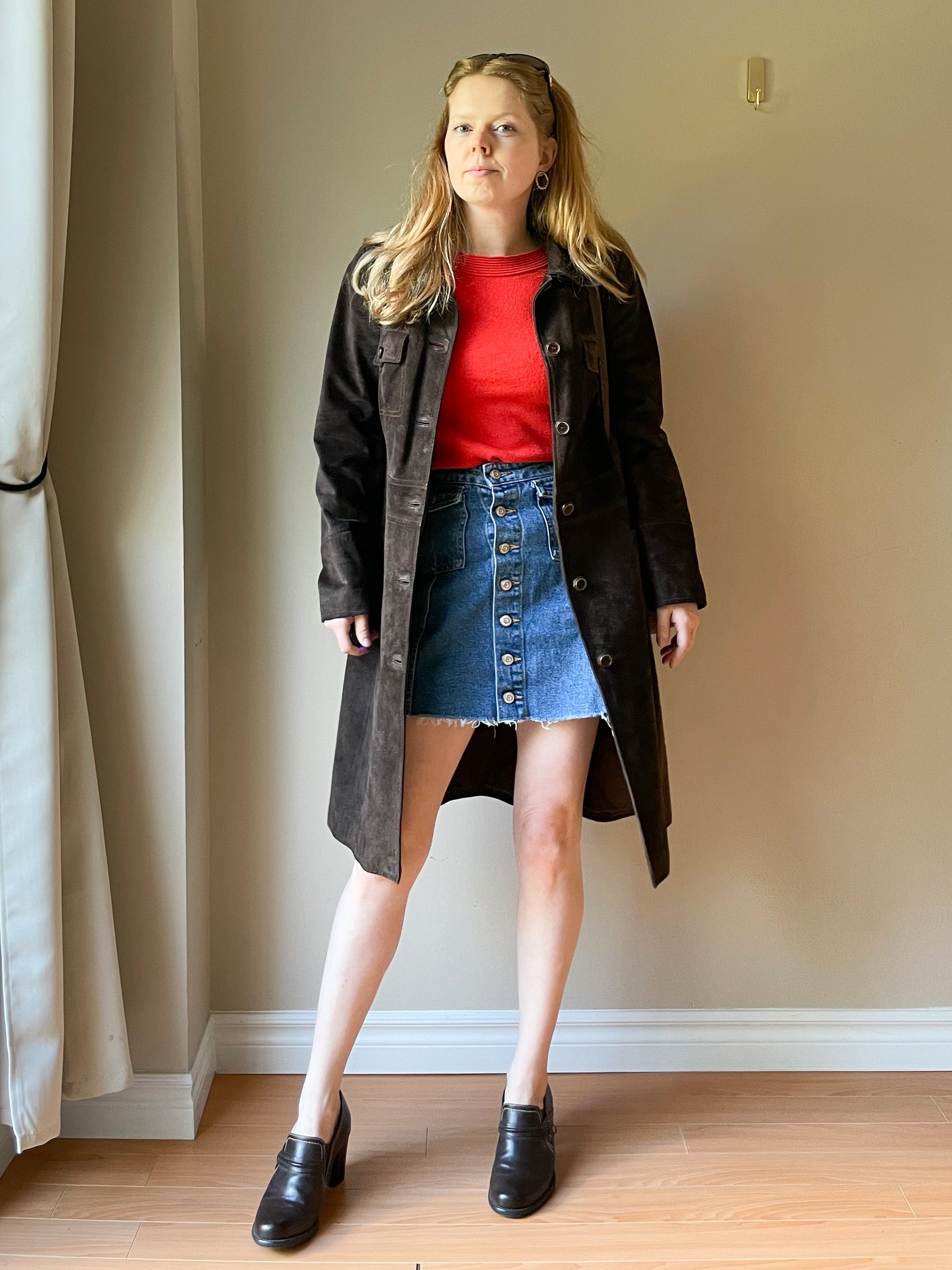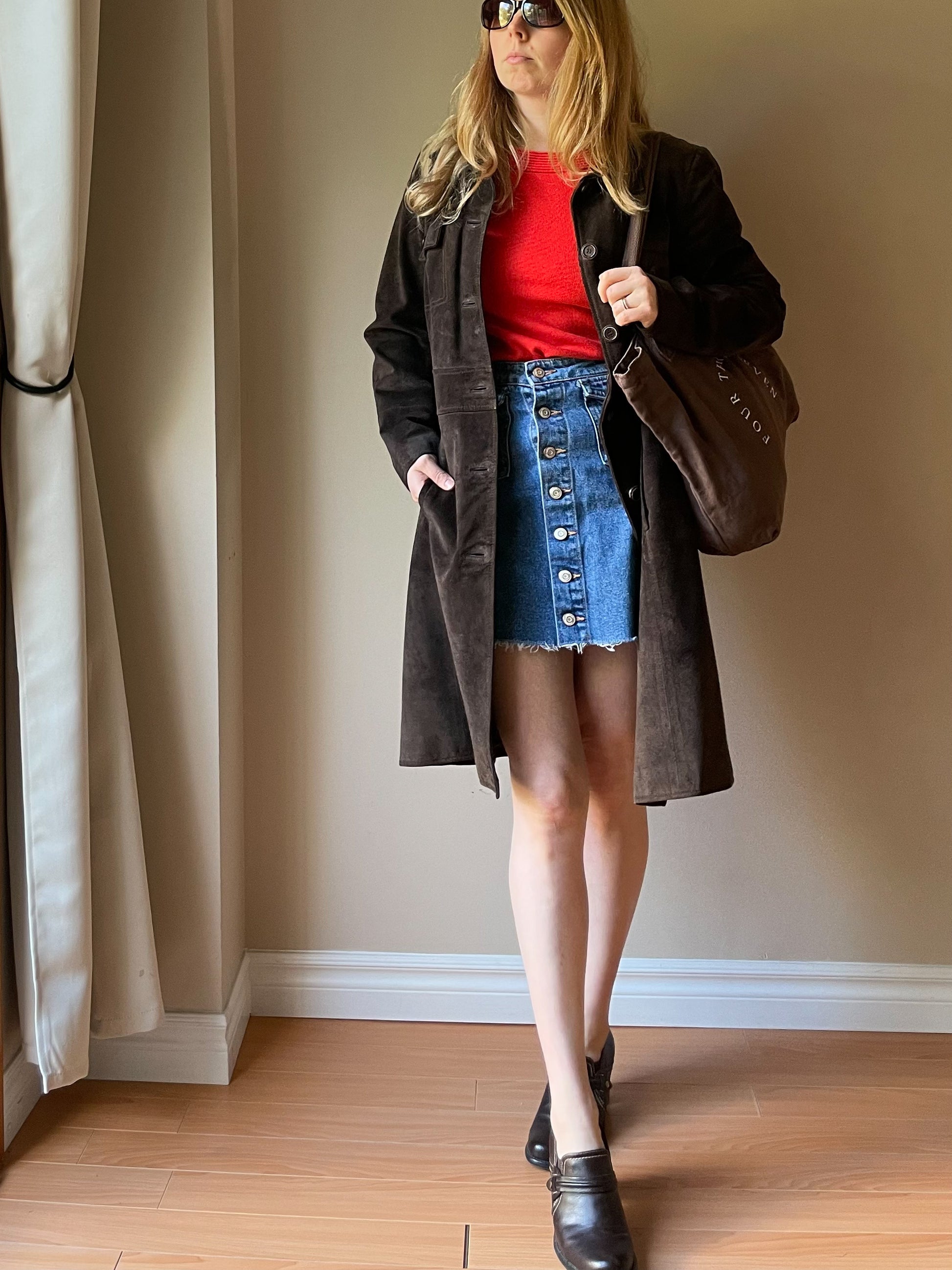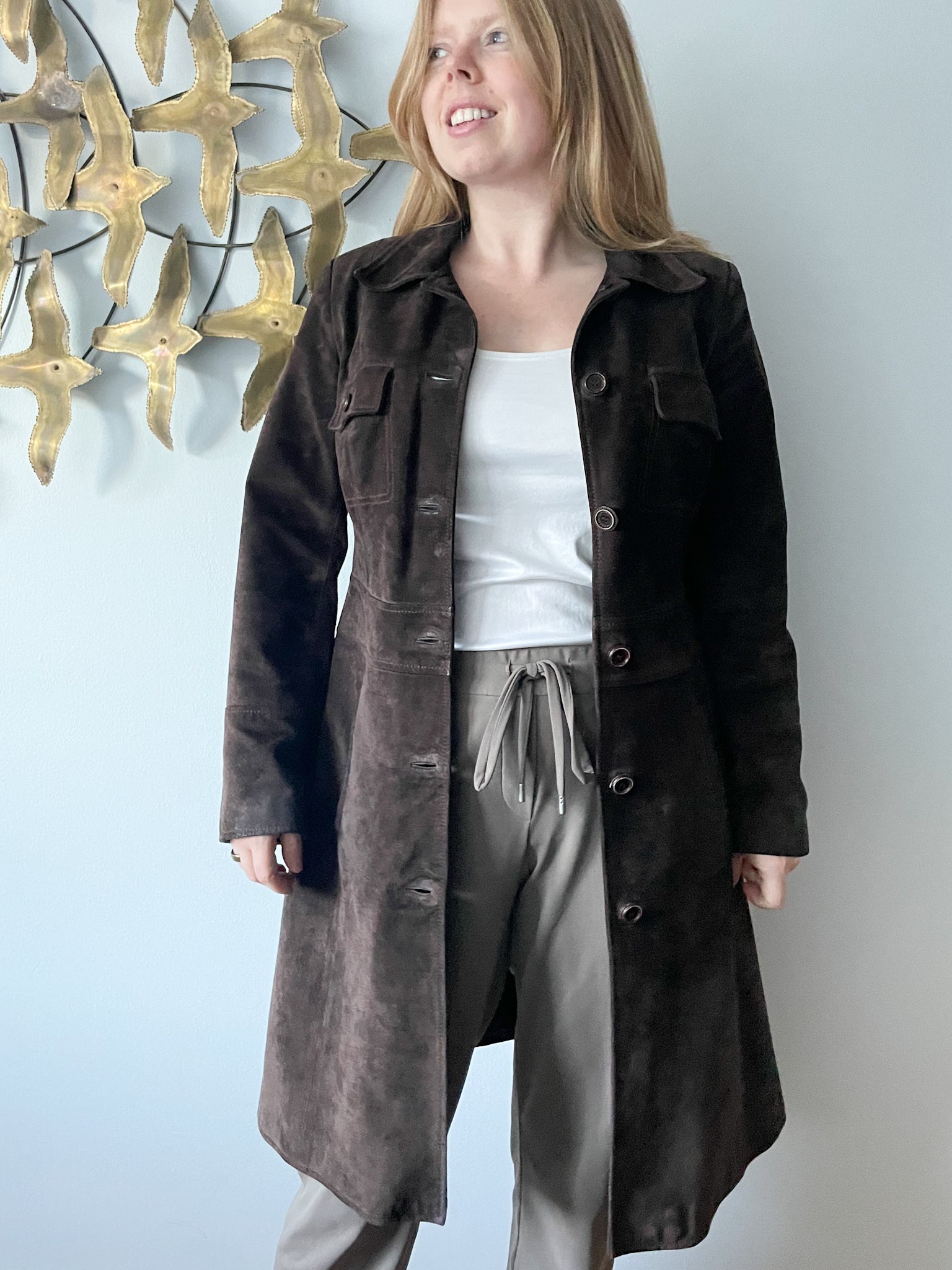 M&S Chocolate Brown Genuine Suede Mid Length Jacket - S/M