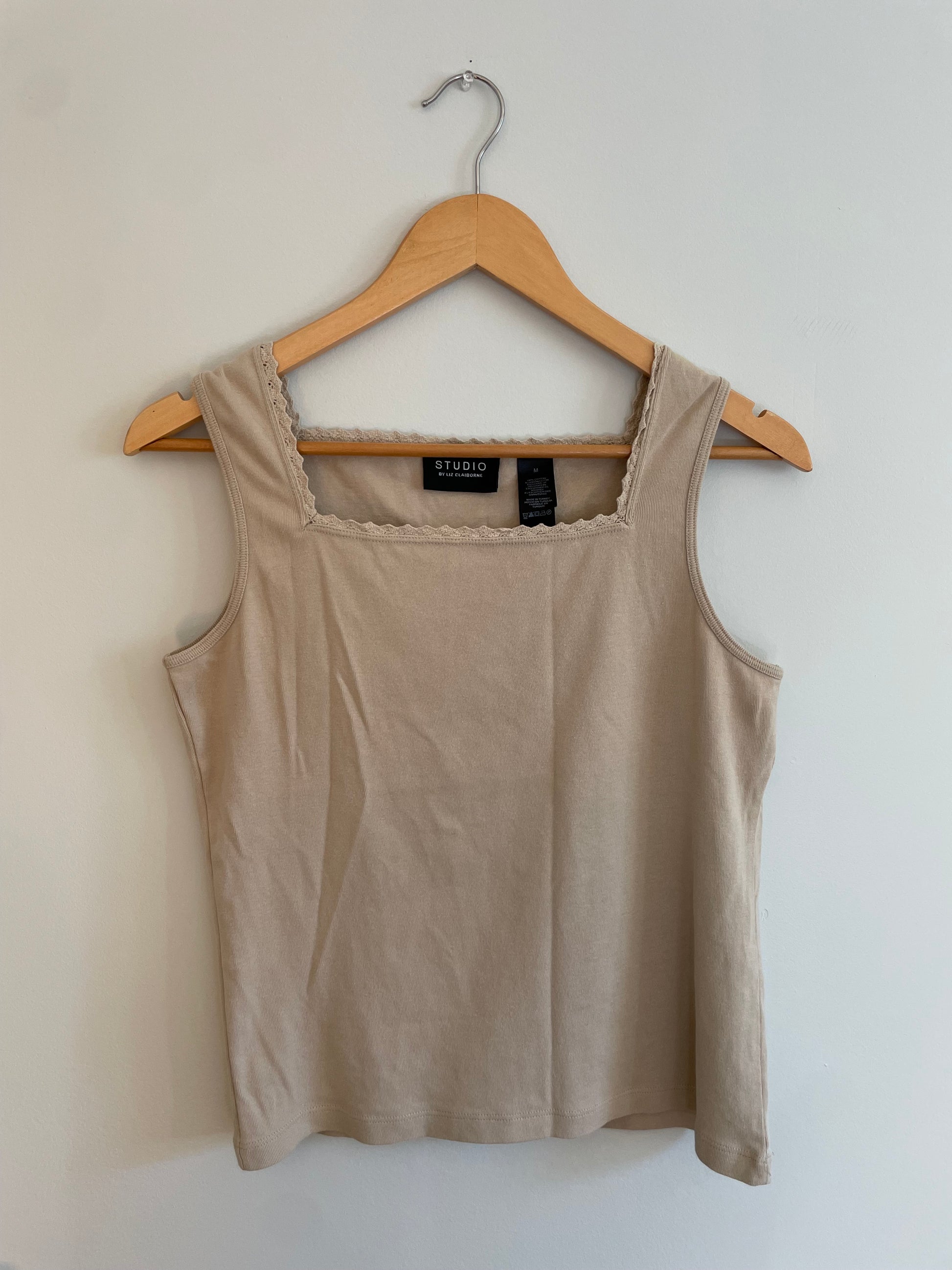 Studio by Liz Claiborne Beige Cotton Square-Neck Tank – Medium