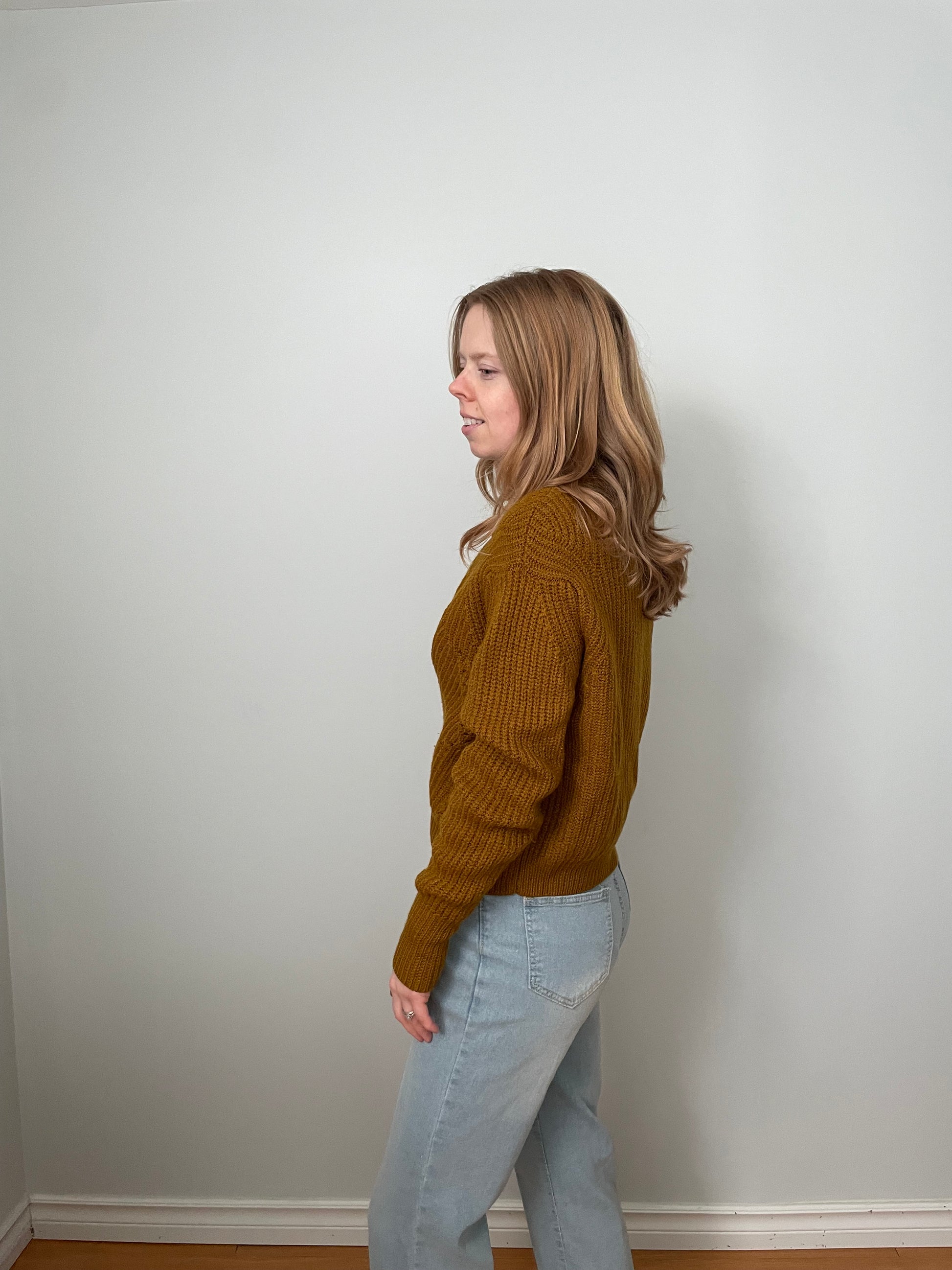 A beautifully textured knit from Wilfred, crafted from 100% merino wool. This sweater features a rich mustard tone with subtle knit detailing that adds interest without feeling busy. Soft, breathable, and naturally temperature-regulating, merino makes this an easy piece to wear through winter and straight into spring. A polished yet relaxed staple that pairs effortlessly with denim, tailored trousers, or layered under a coat or blazer.