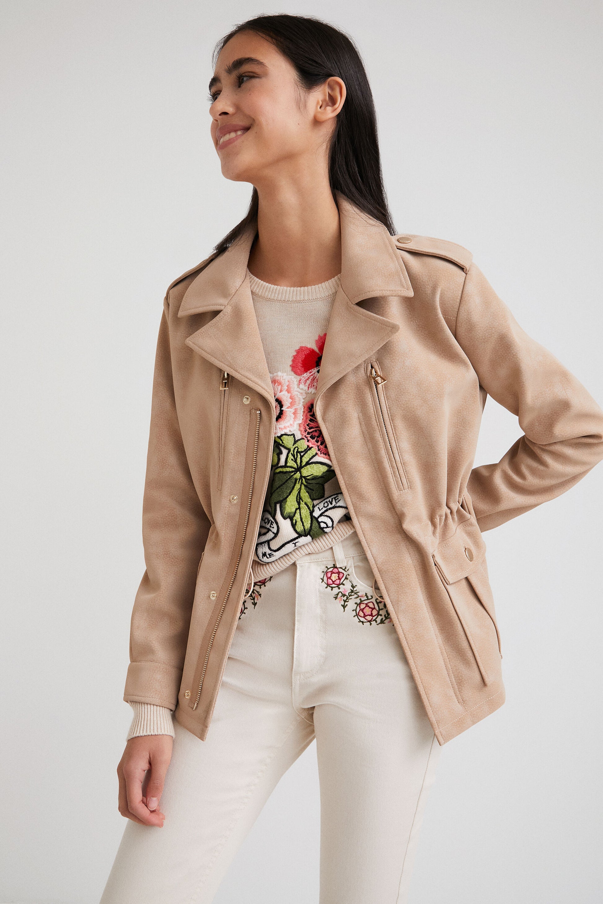 Desigual Recycled Fibers Beige Moto Jacket NWT - XL