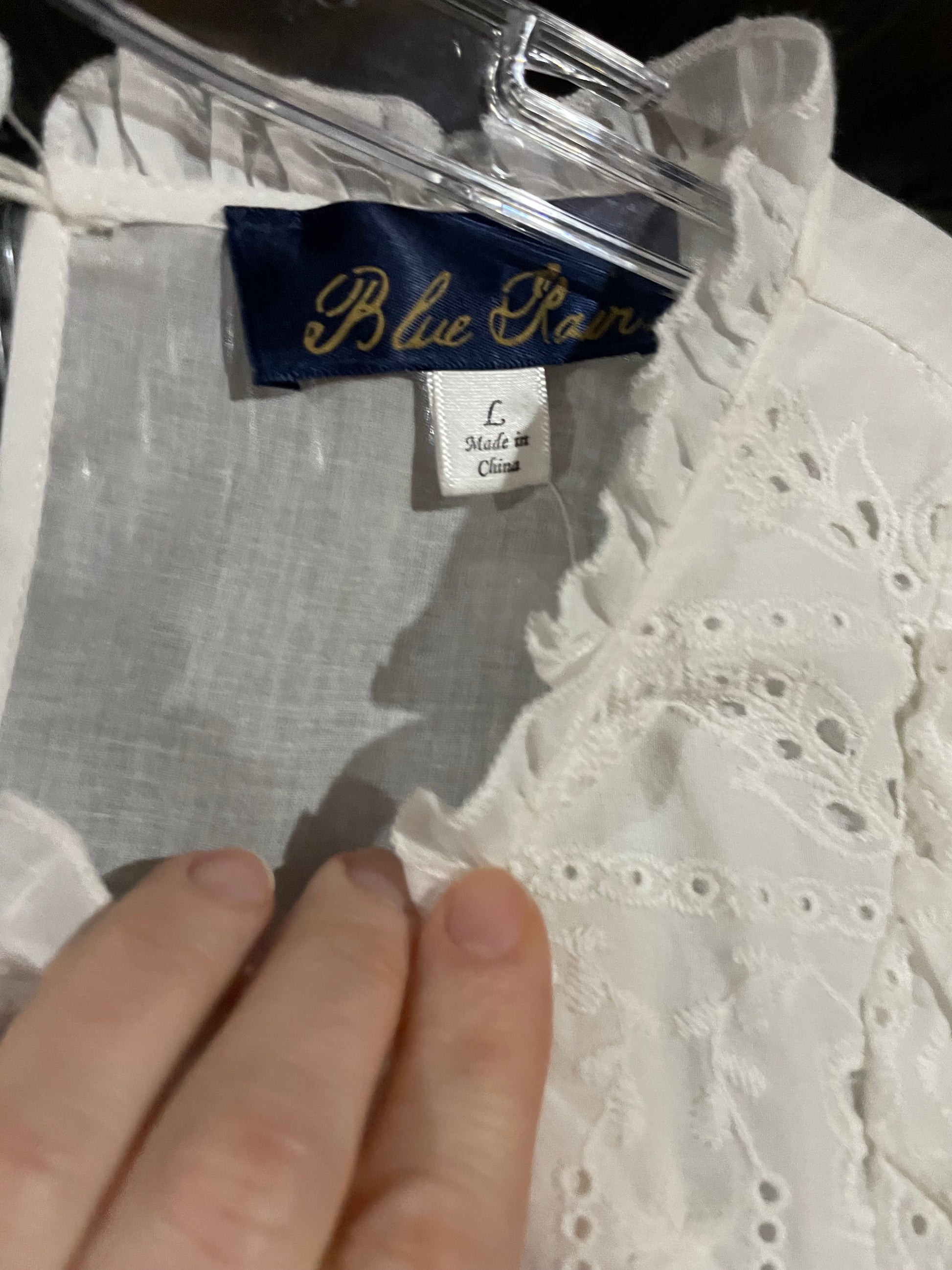 Blue Rain Cotton White Eyelet Ruffle Peplum Blouse – Large
