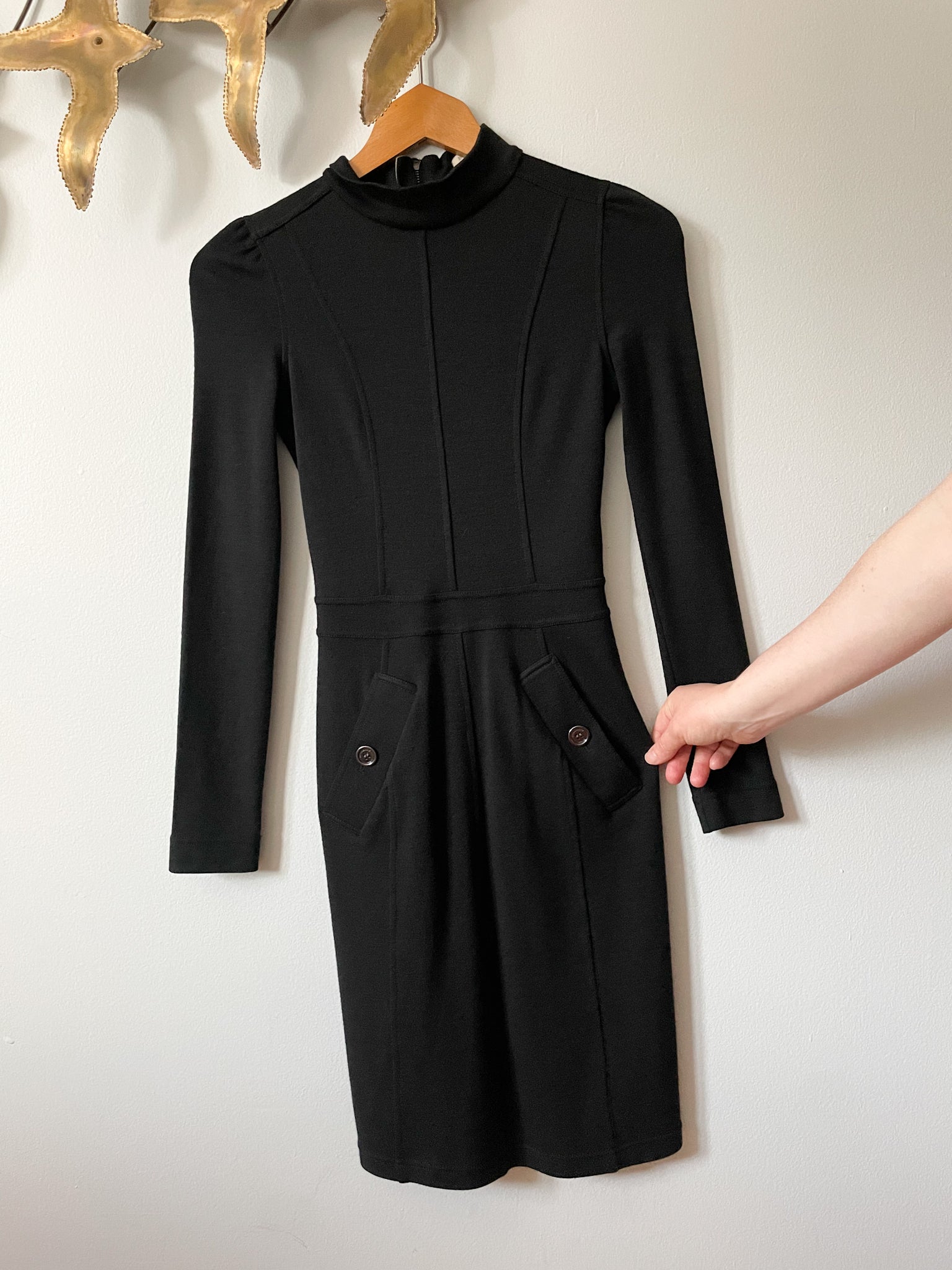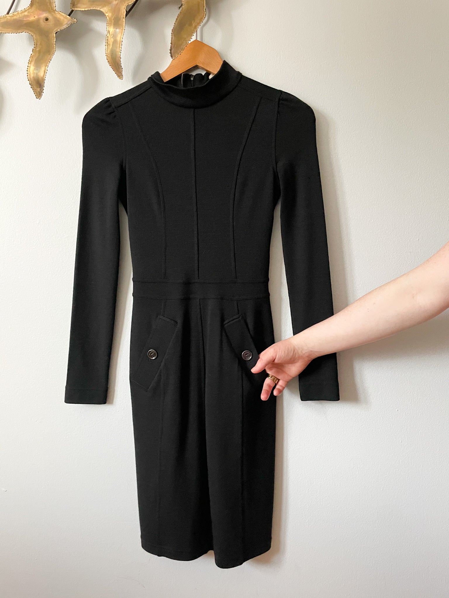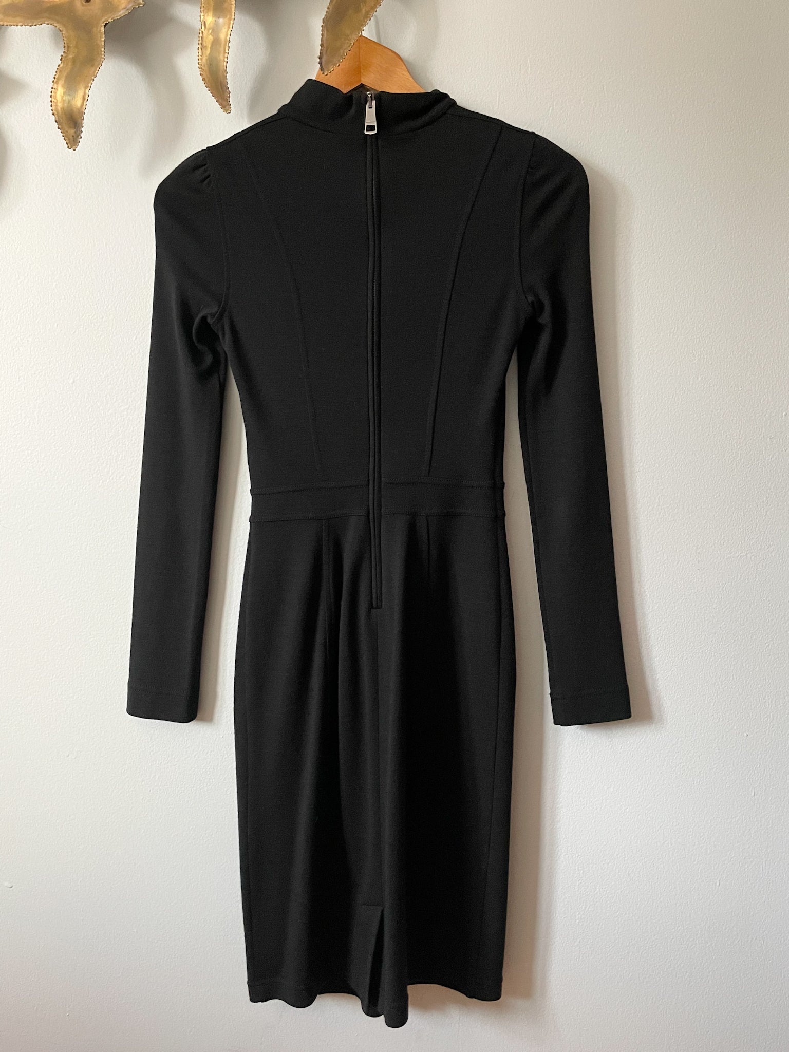 Burberry Brit Black Wool Mock Neck Knit Long Sleeve Dress - Size 2