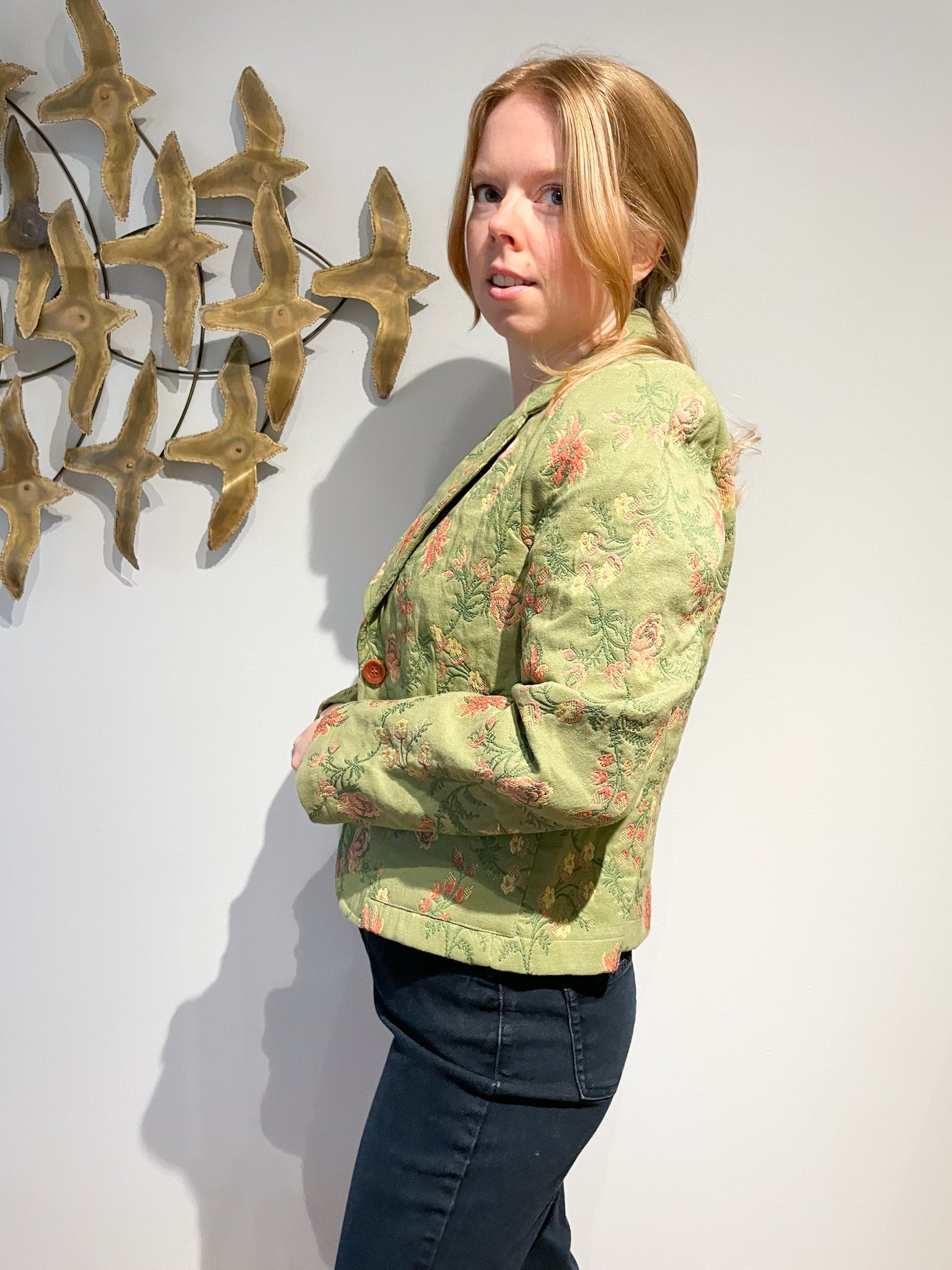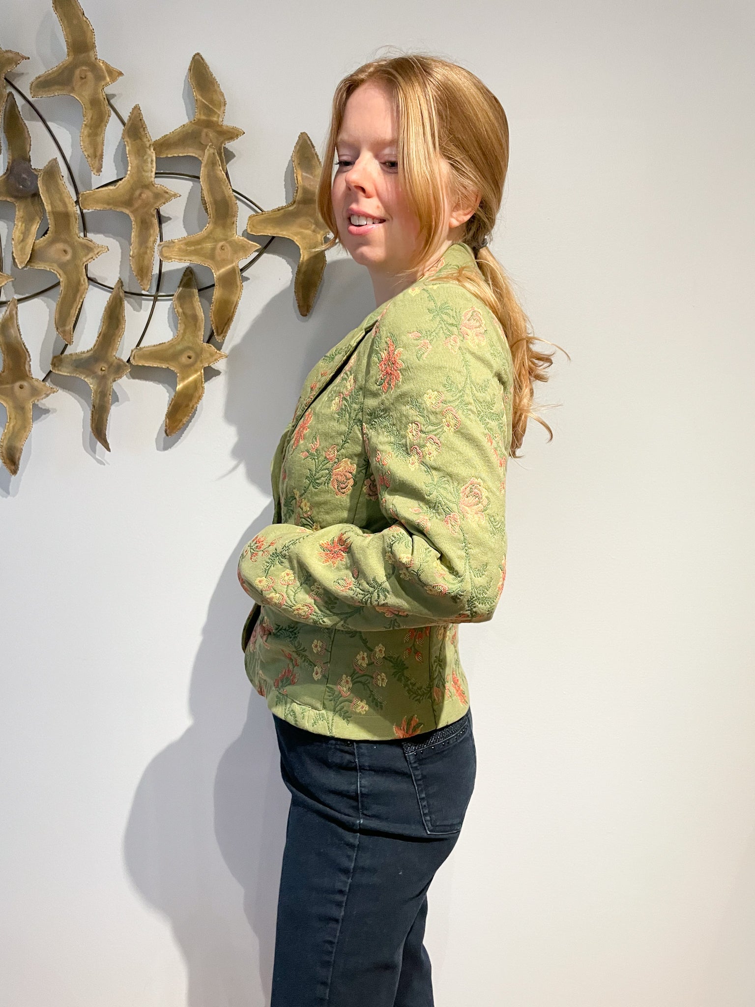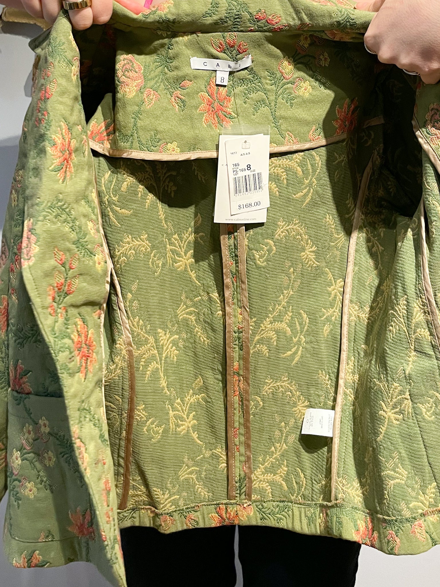 CAbi Green Embroidered Floral Blazer NWT - Size 8