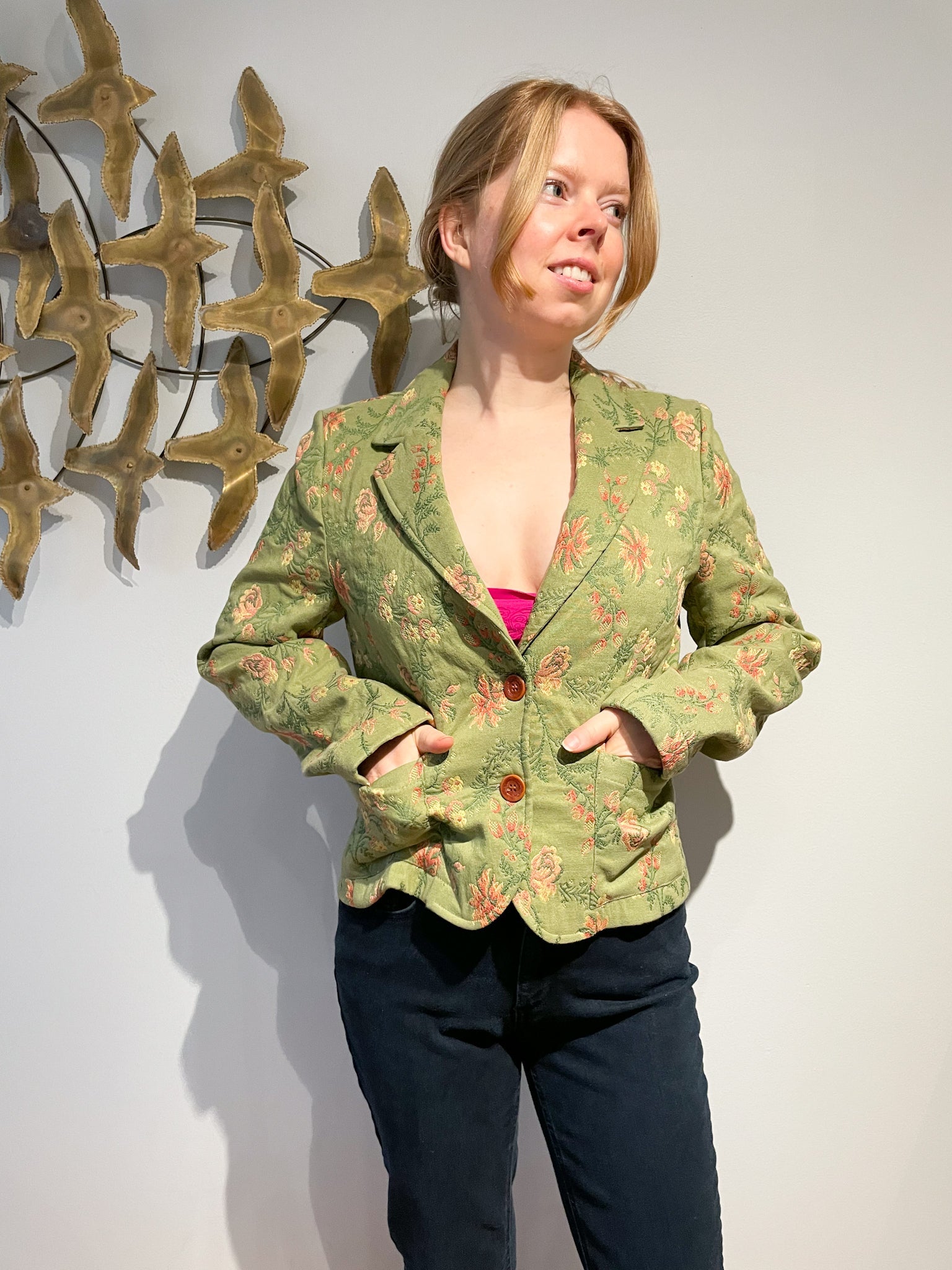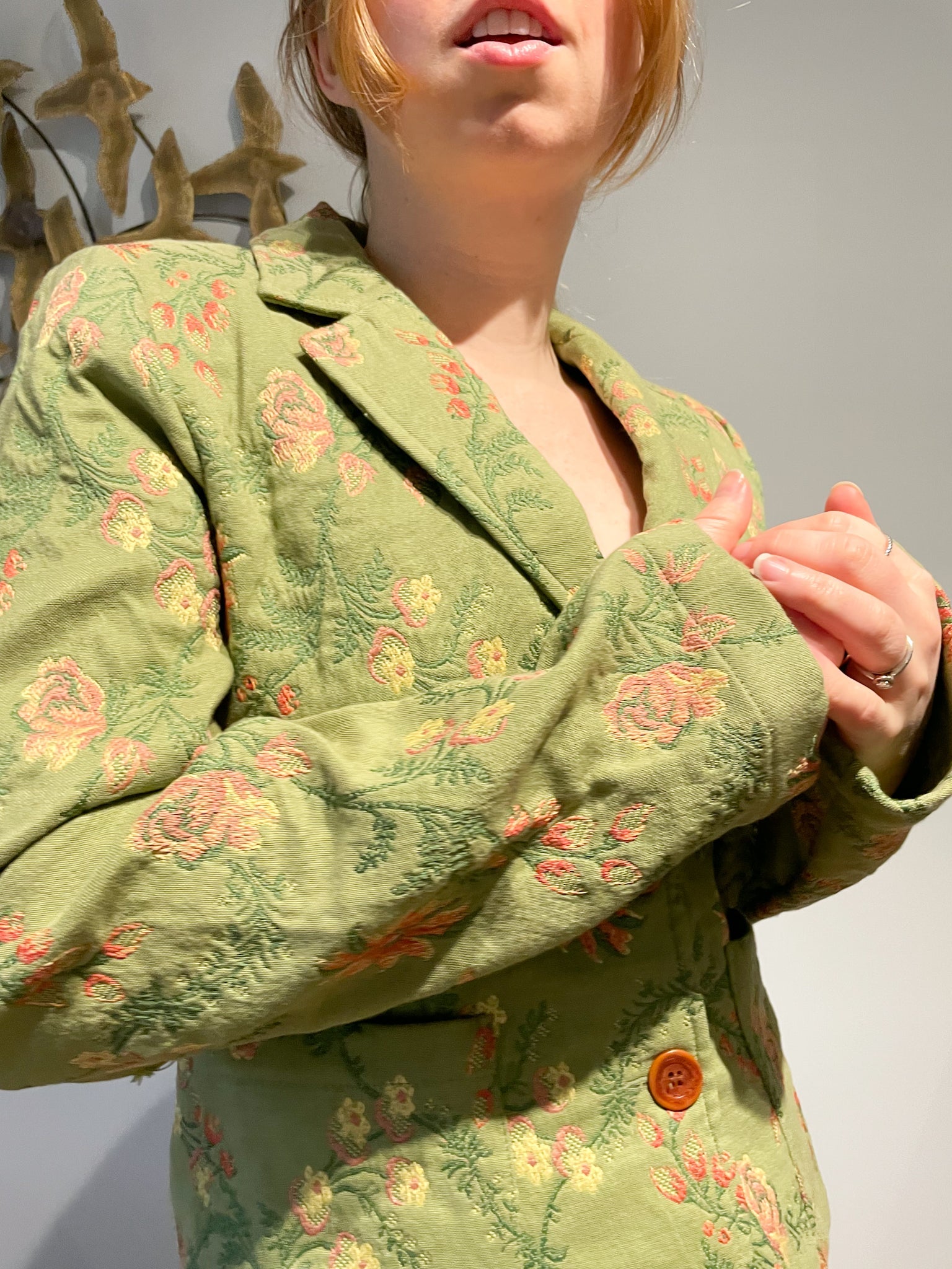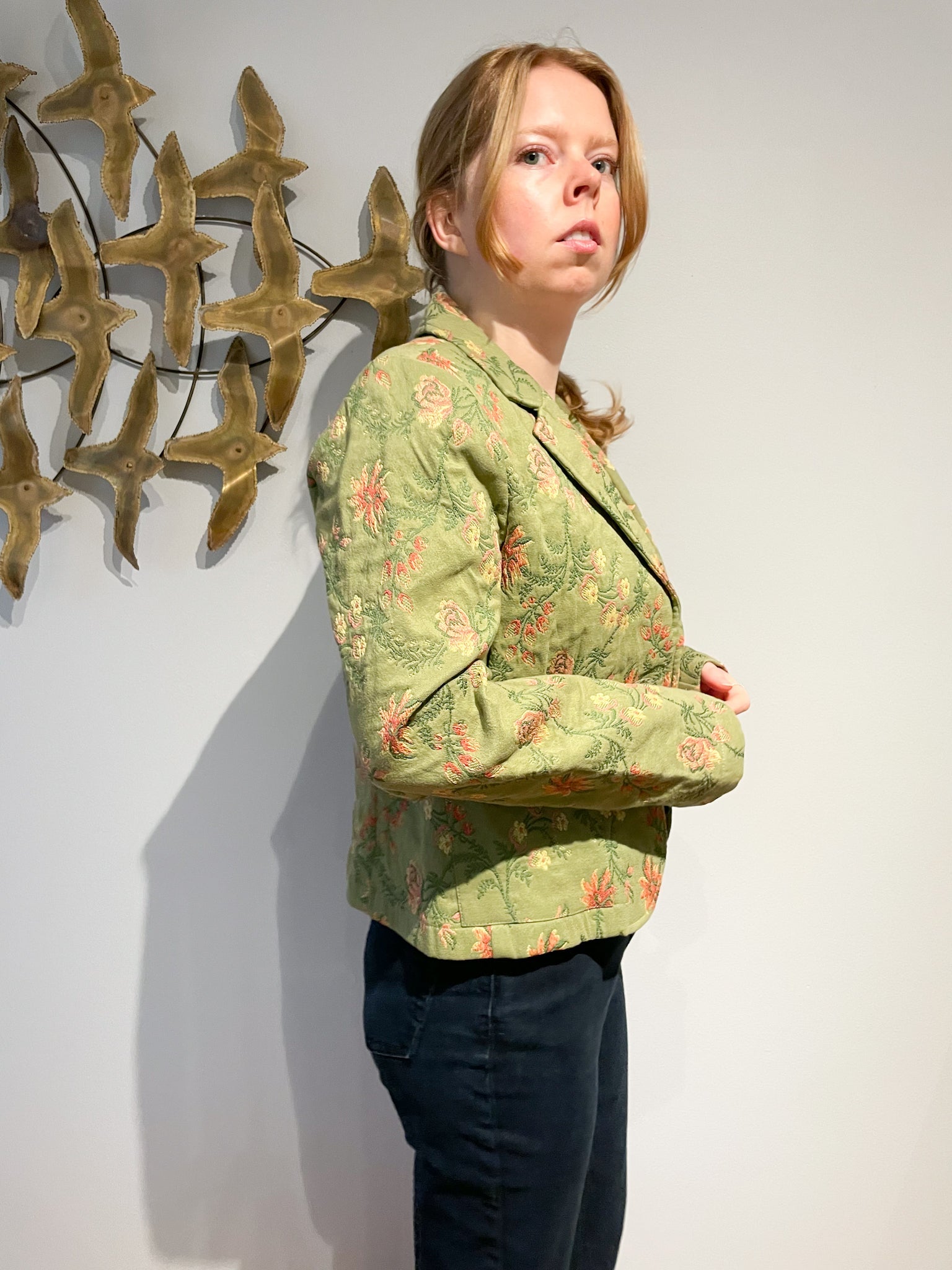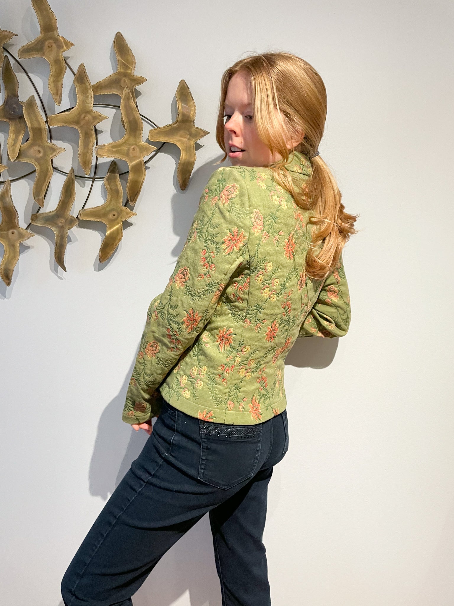CAbi Green Embroidered Floral Blazer NWT - Size 8