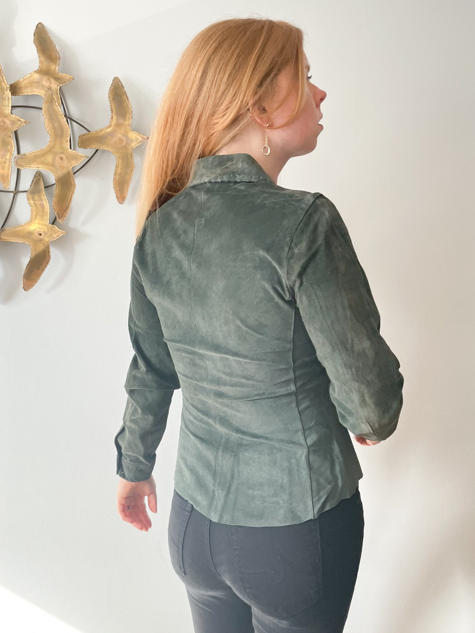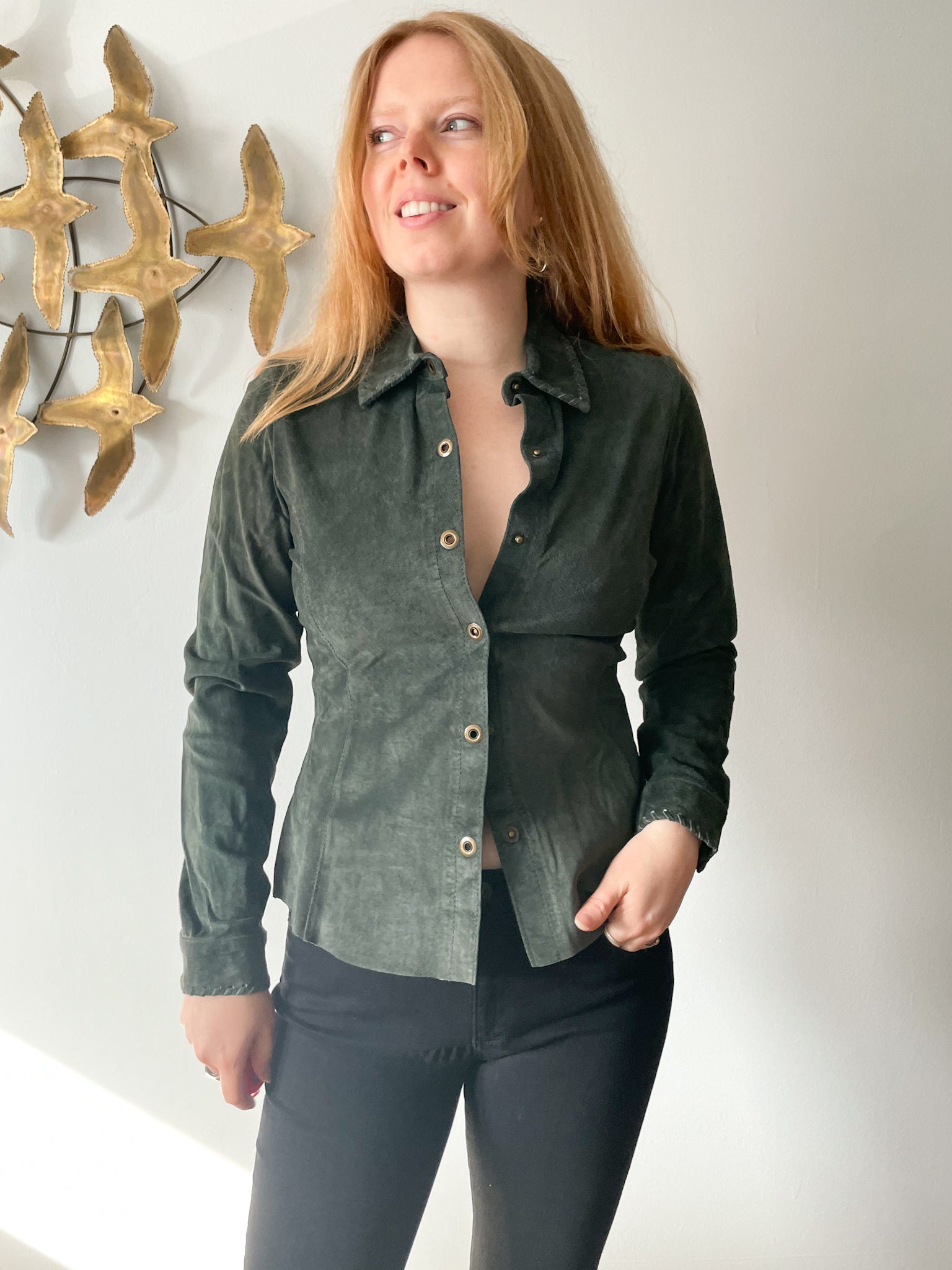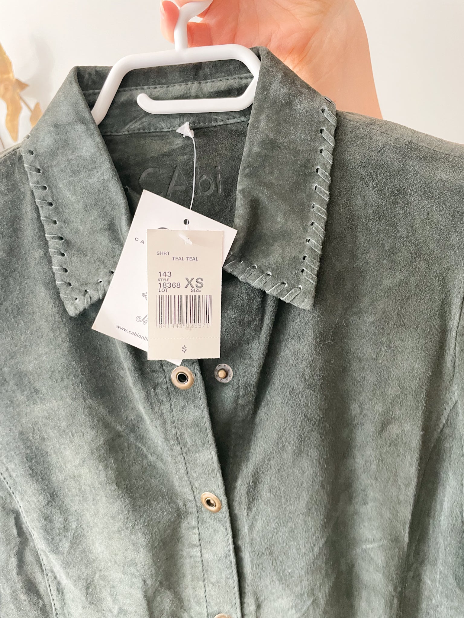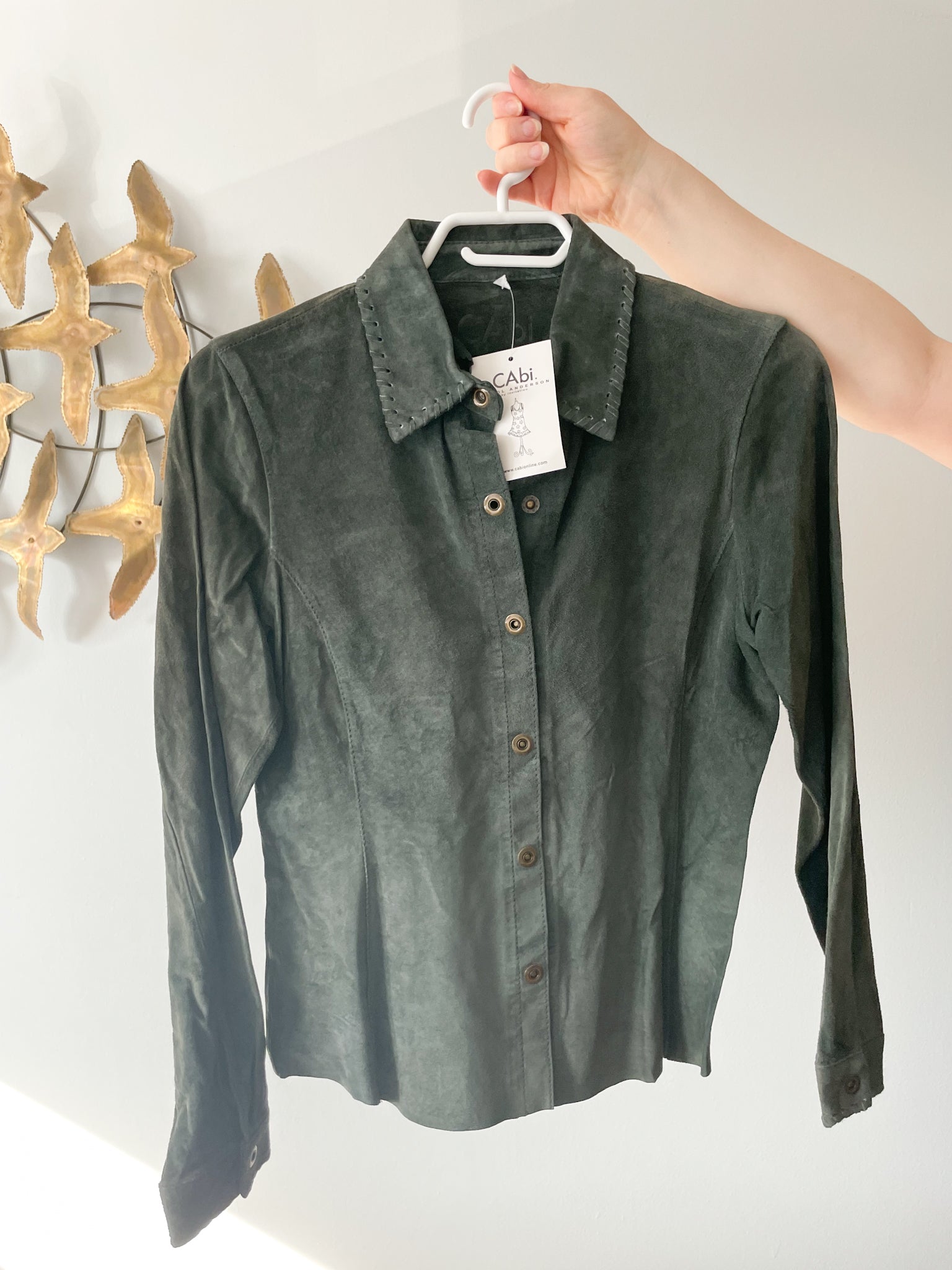 Cabi Olive Green Genuine Suede Leather Button Down Shirt Jacket NWT - XS
