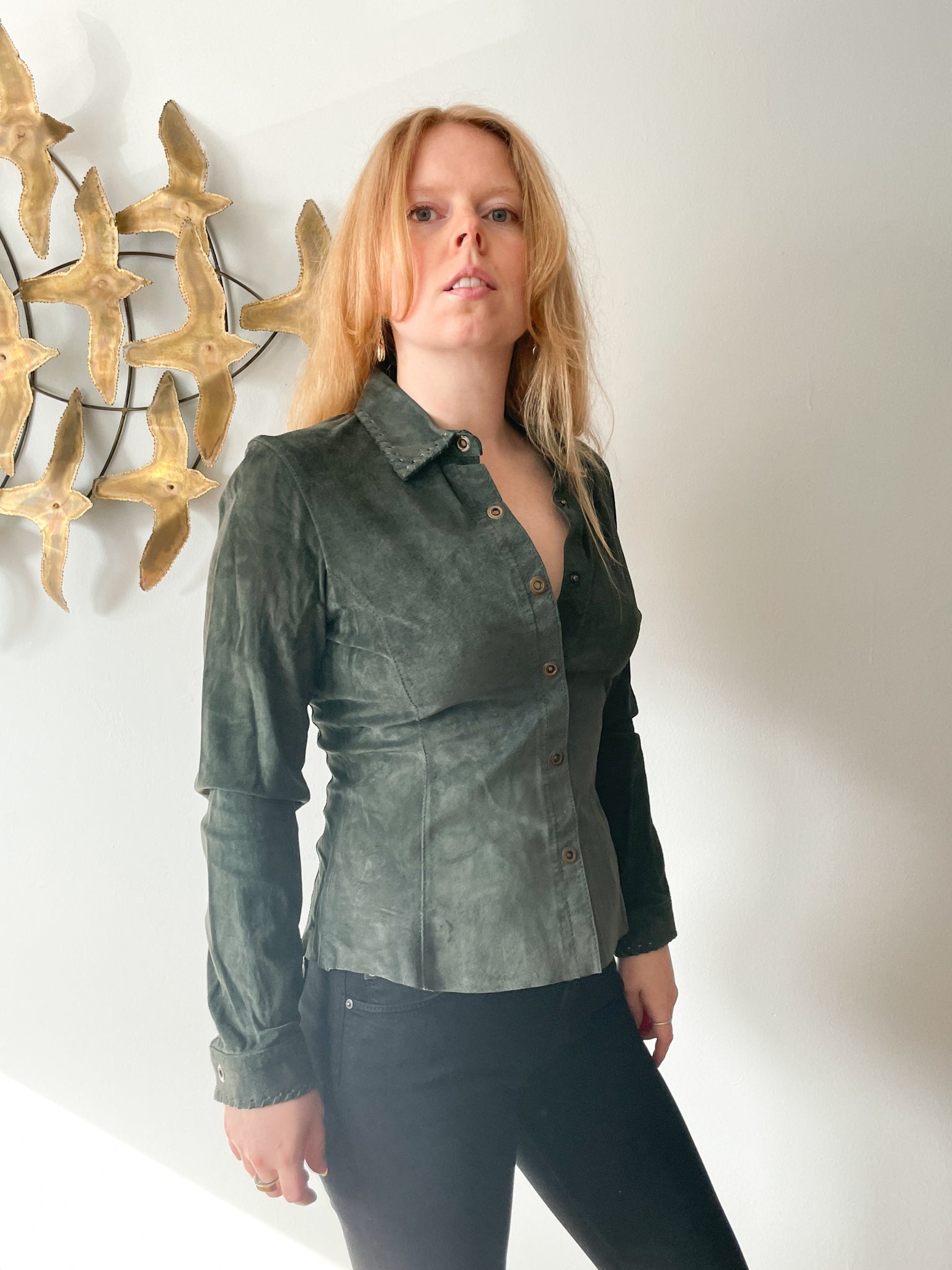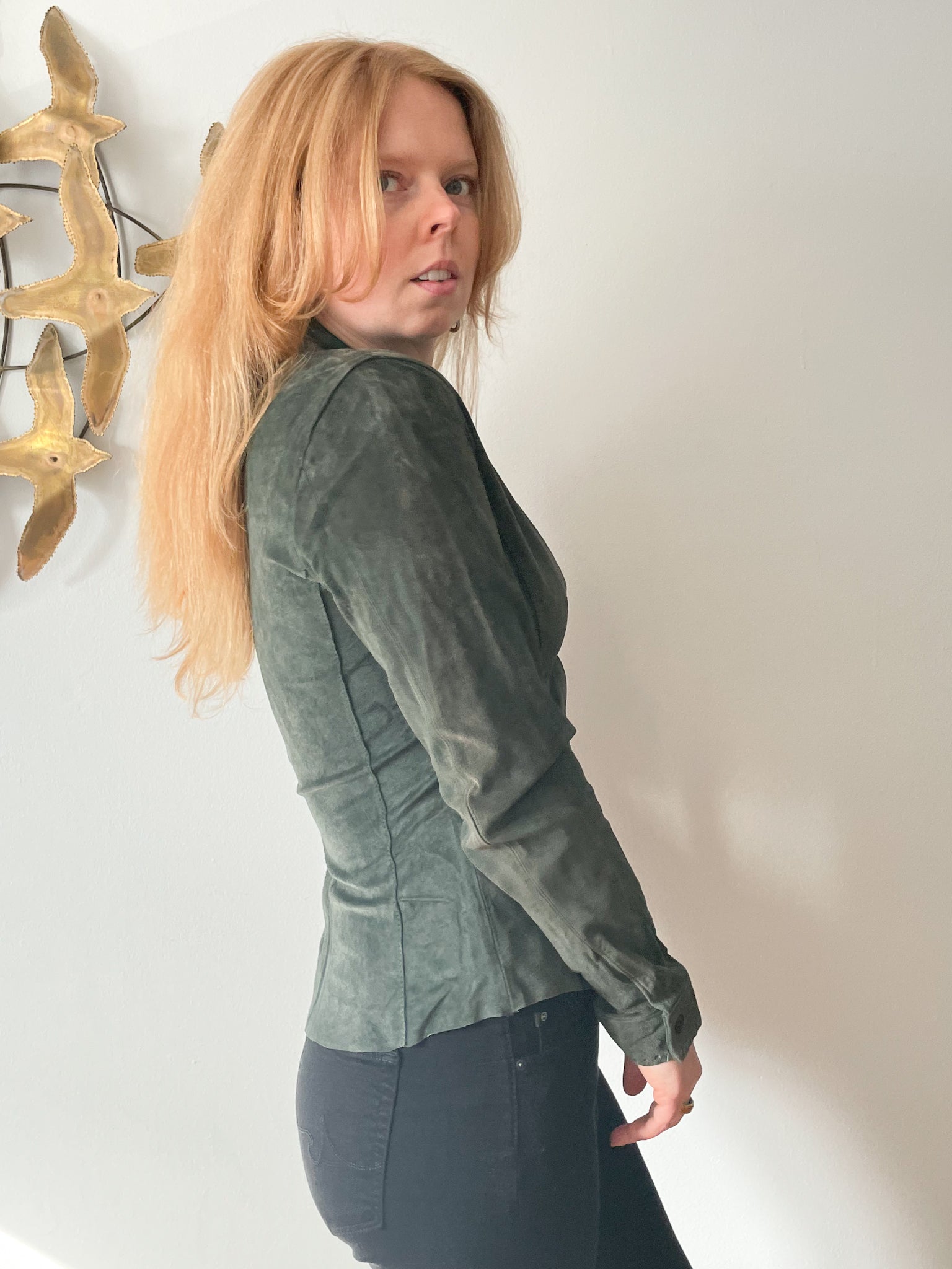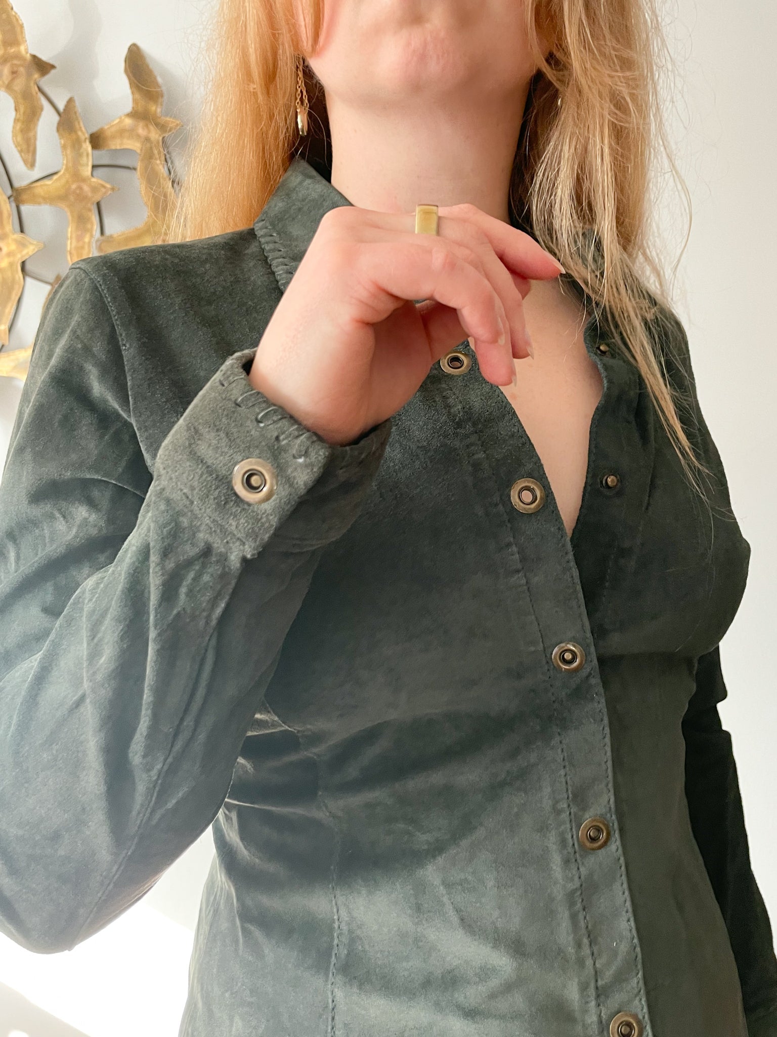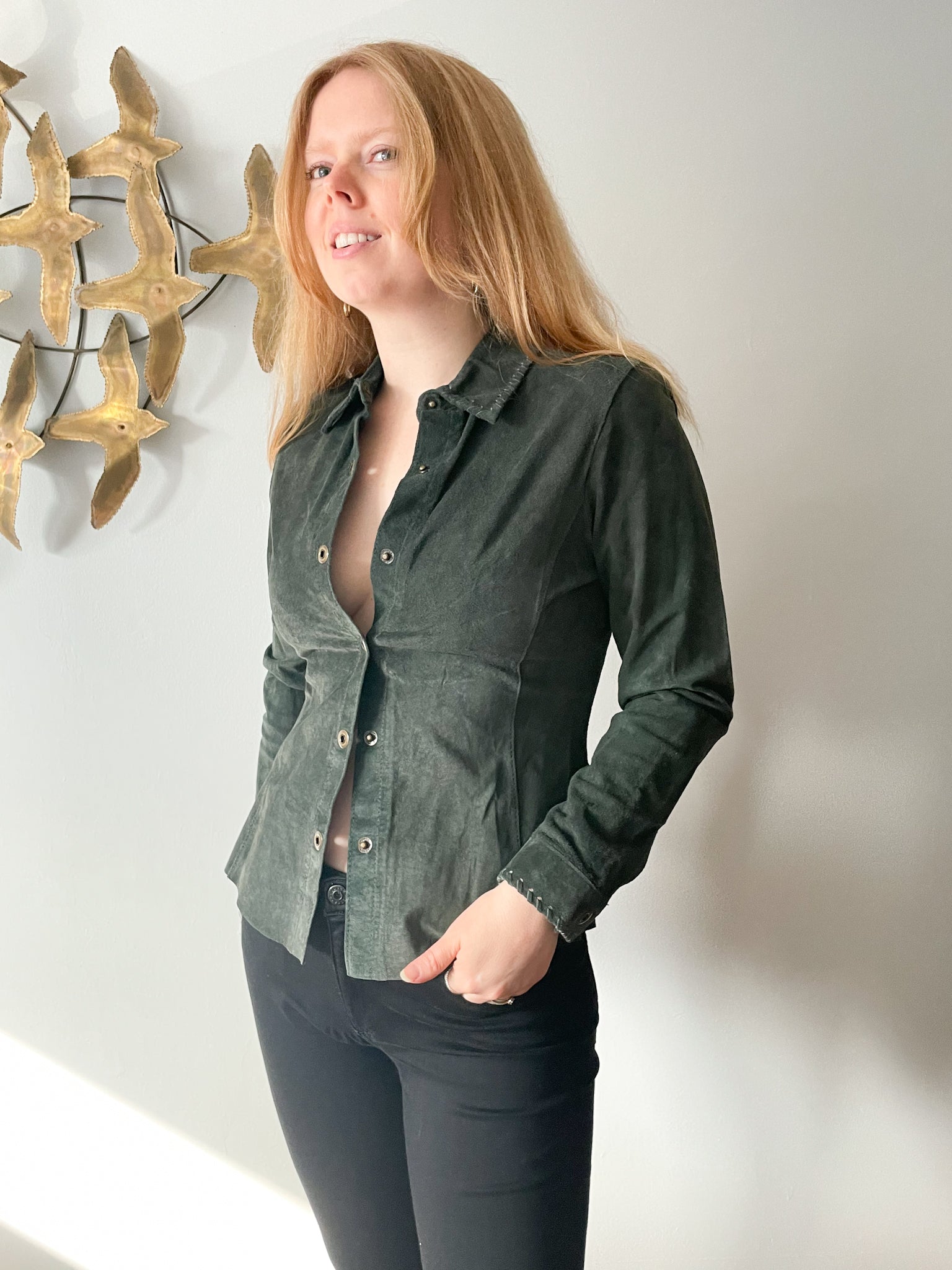 Cabi Olive Green Genuine Suede Leather Button Down Shirt Jacket NWT - XS