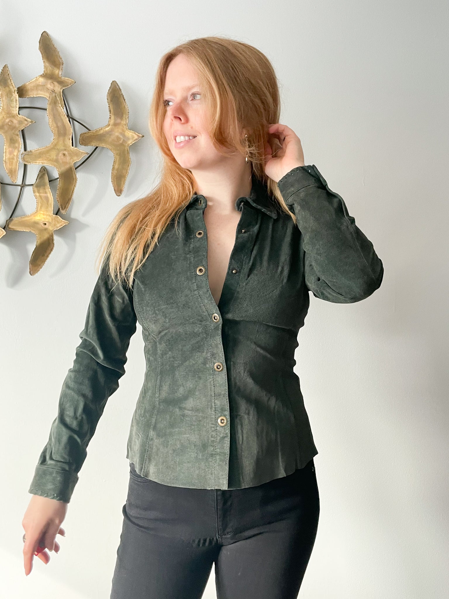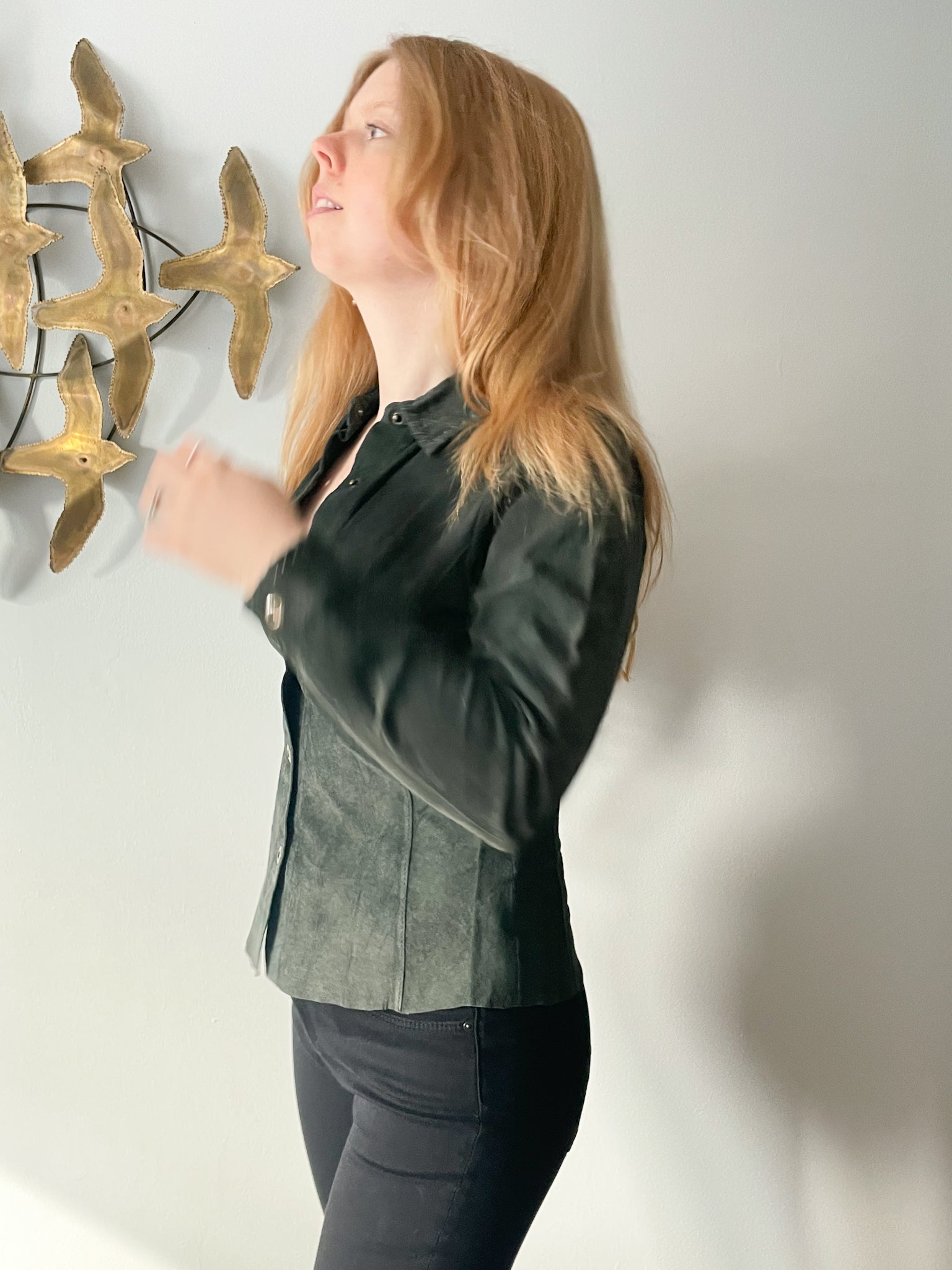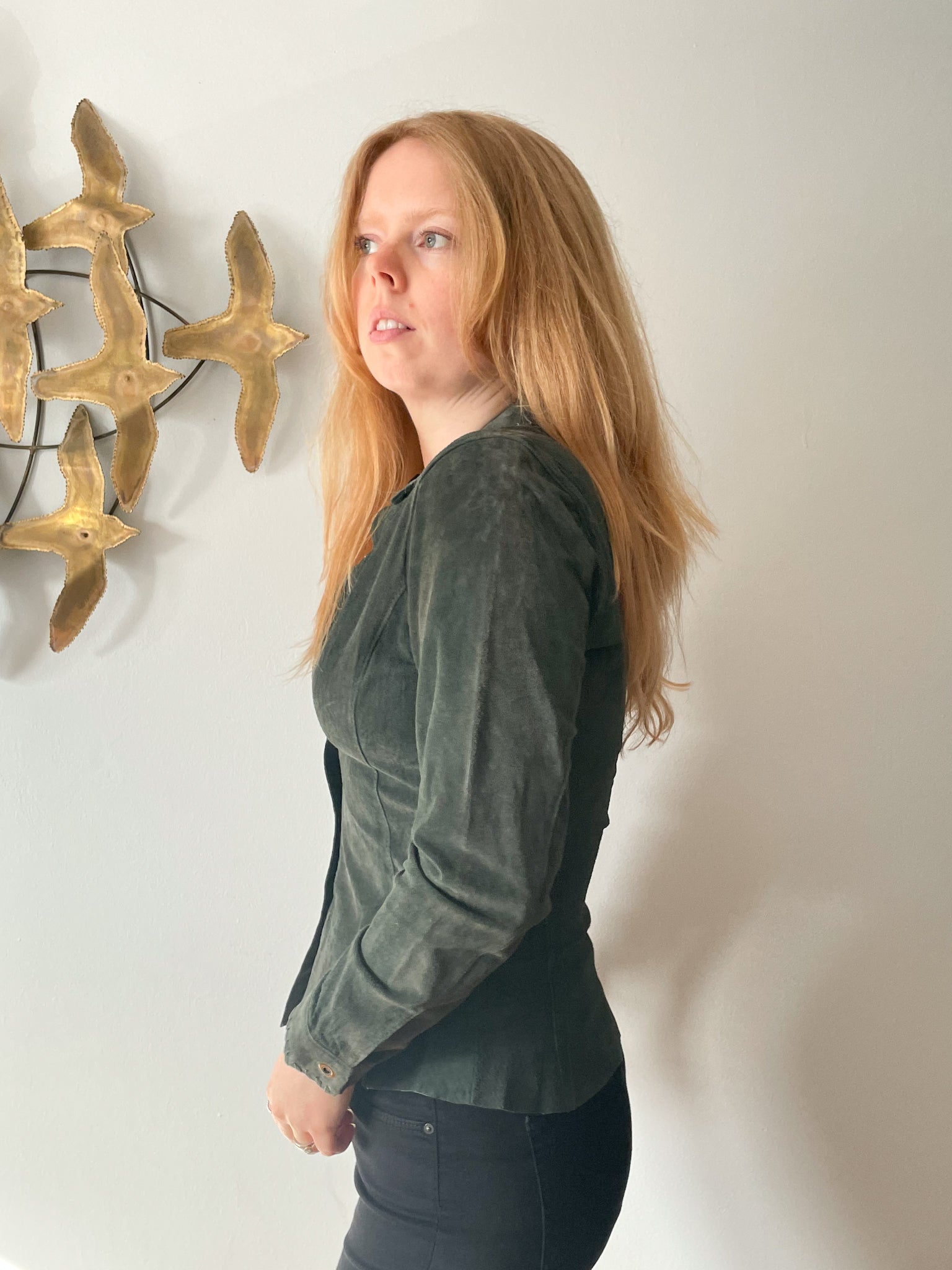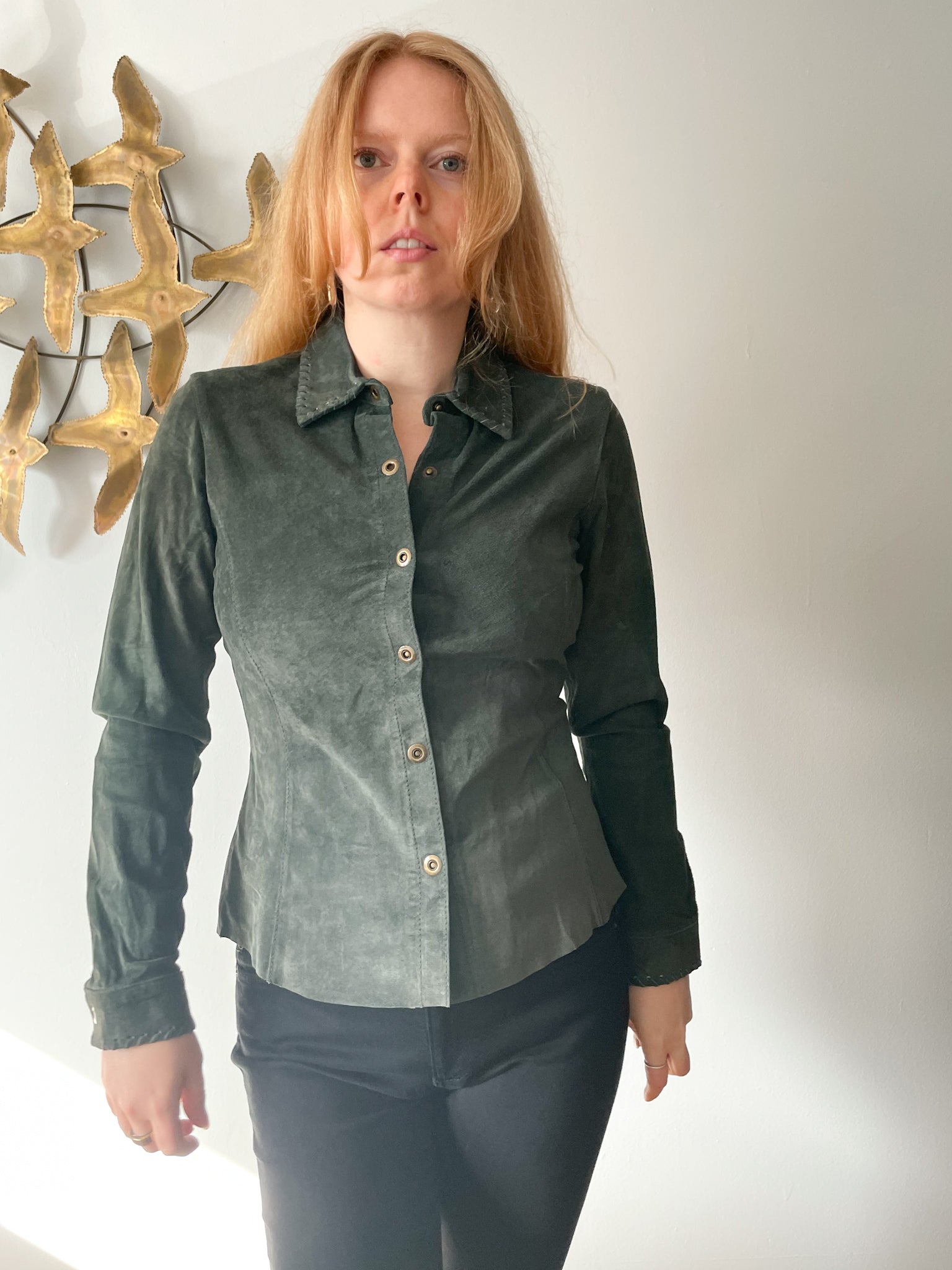Cabi Olive Green Genuine Suede Leather Button Down Shirt Jacket NWT - XS