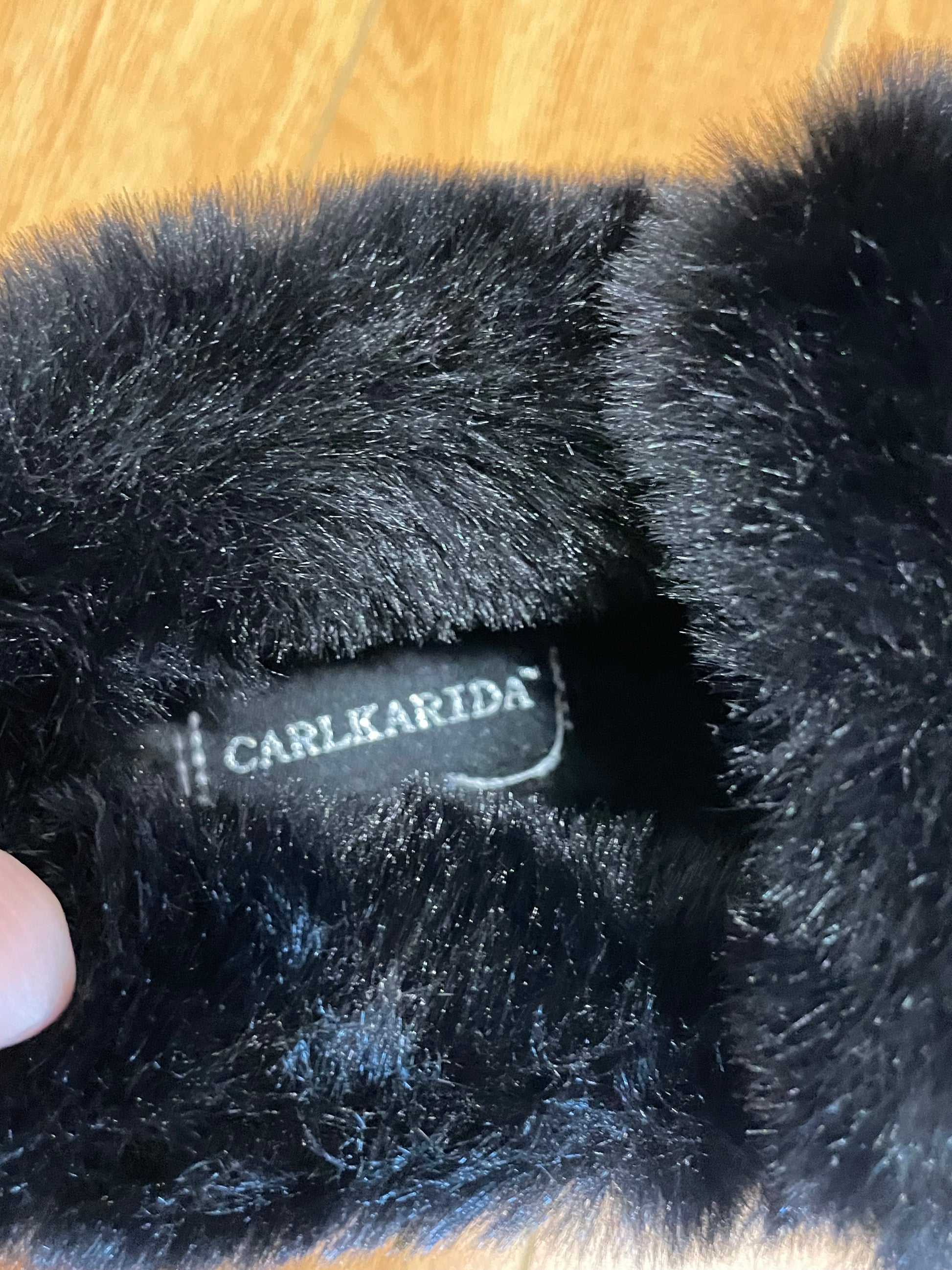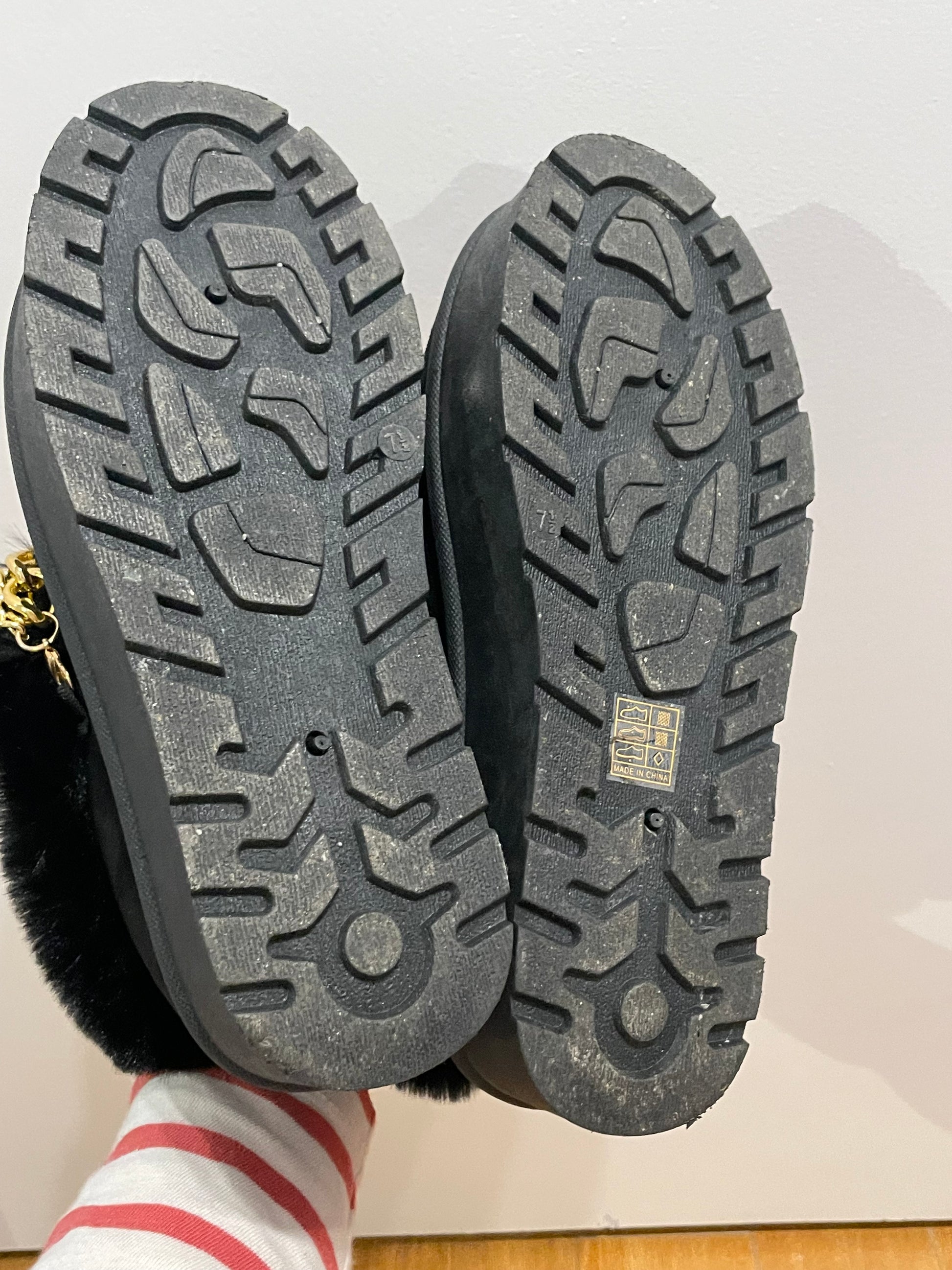 CARLA RIDA Black Faux Fur Chain Ankle Boots – Size 7.5