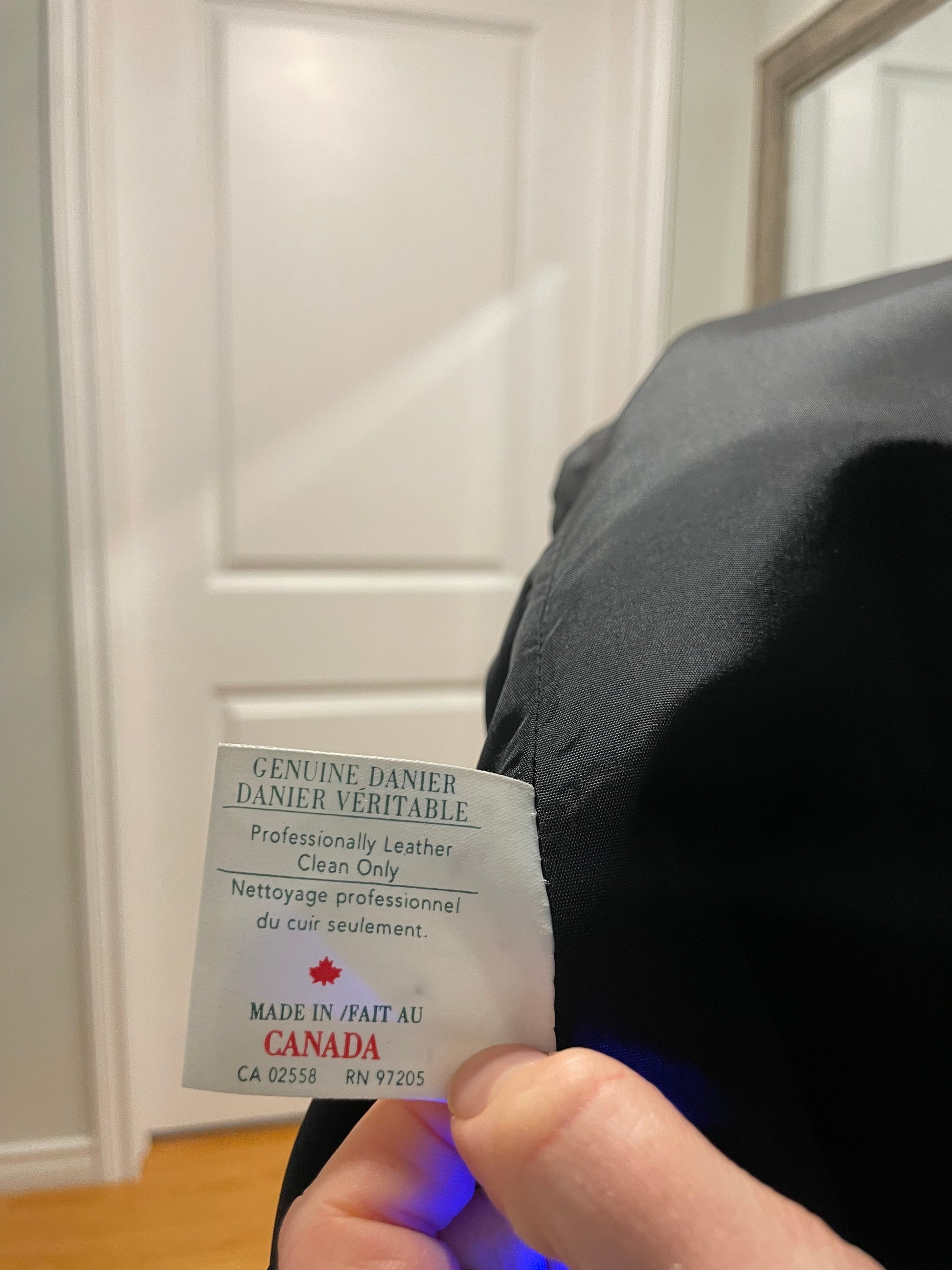 A timeless black leather blazer by Danier, crafted in Canada from supple genuine leather. This tailored piece features a classic notched lapel, single-breasted button front, and a flattering longer length that works effortlessly dressed up or down. Fully lined in smooth acetate for comfortable layering.