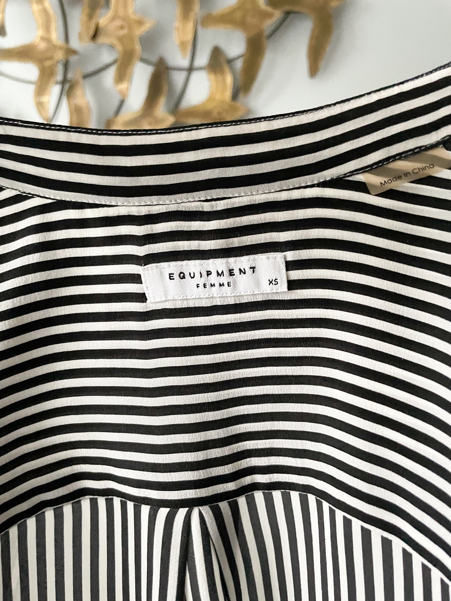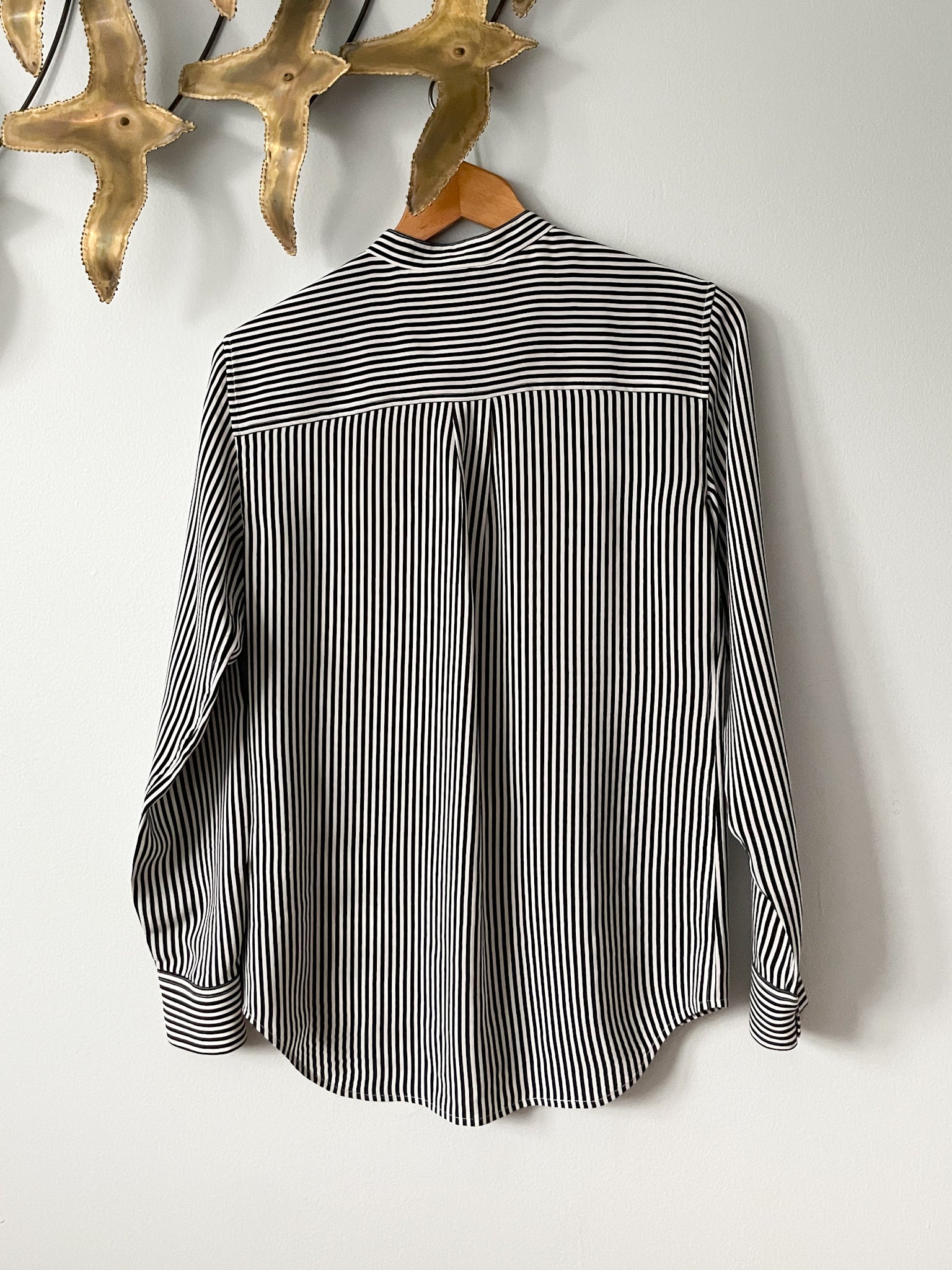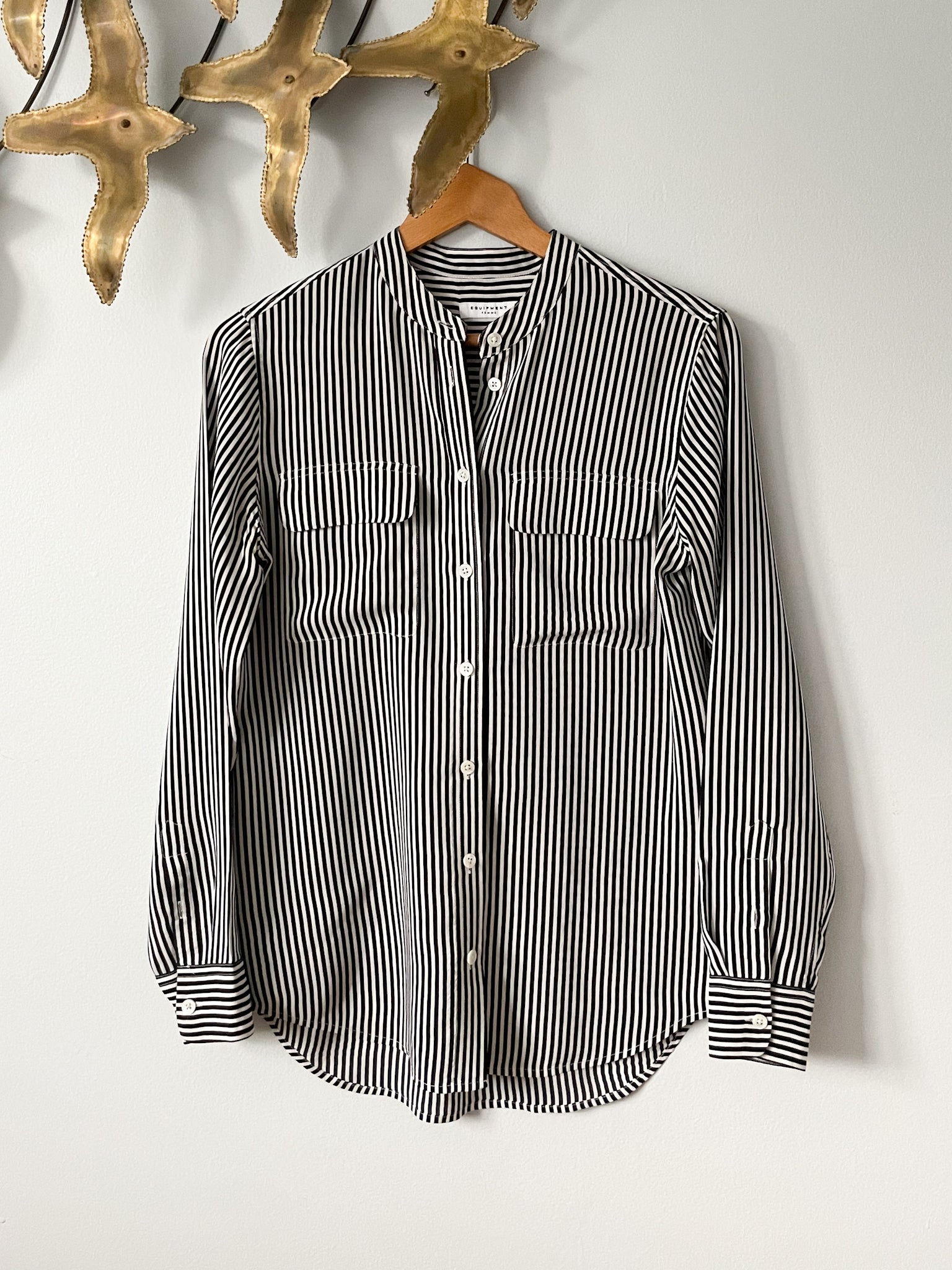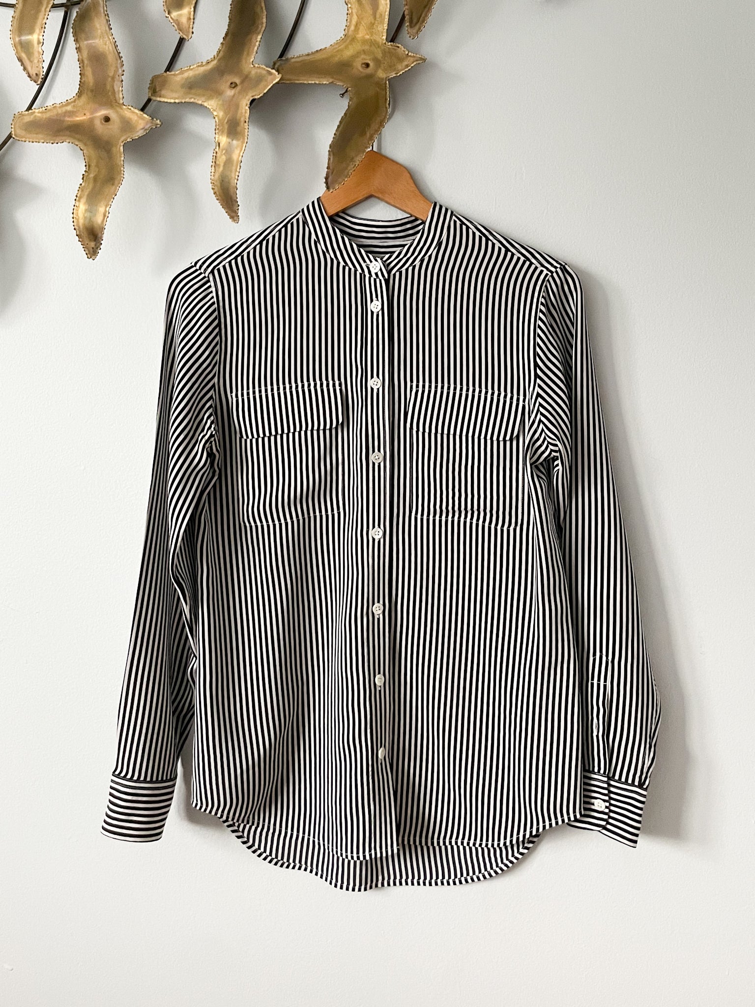Equipment Femme Black White Stripe 100% Silk Slim Signature Shirt - XS/S