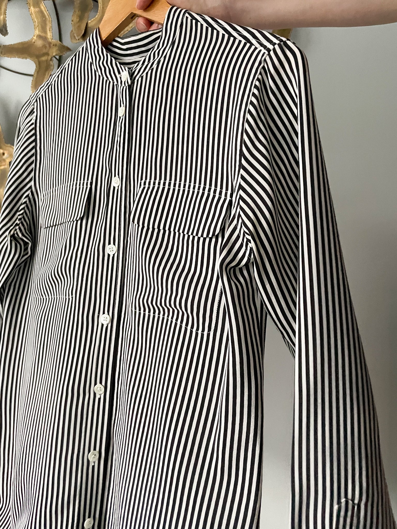 Slightly oversized with two front pockets, the slim signature is a versatile wardrobe staple that works just as well tucked into a pencil skirt as it does untucked with a pair of jeans.