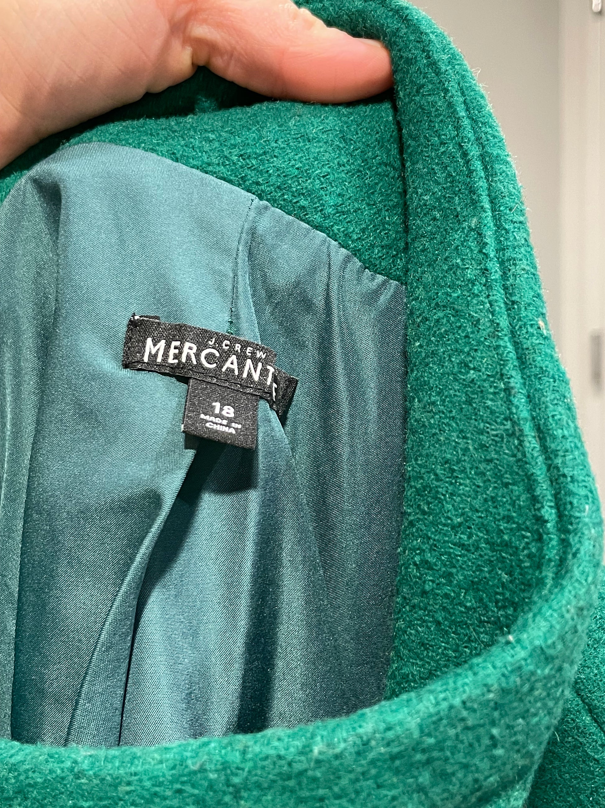 J.Crew Mercantile Kelly Green Wool-Blend Zip Coat – Size 18