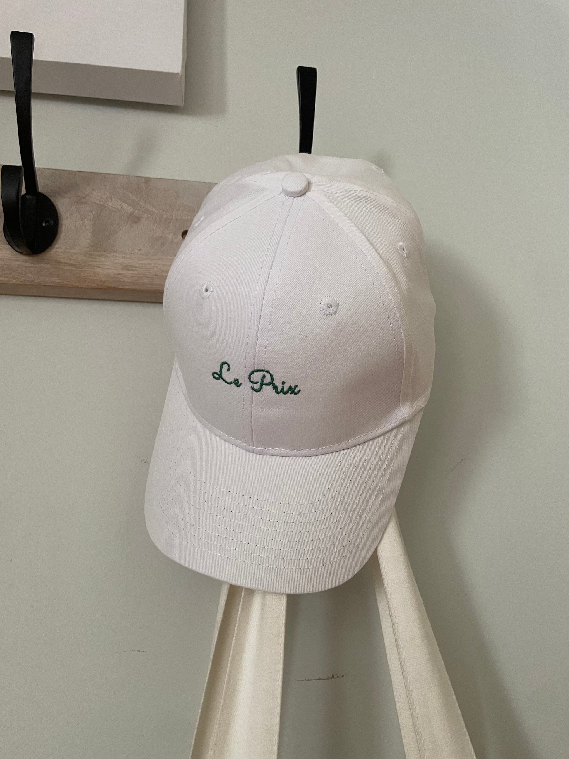 Le Prix White Cotton Embroidered Cap – Forest Green Logo