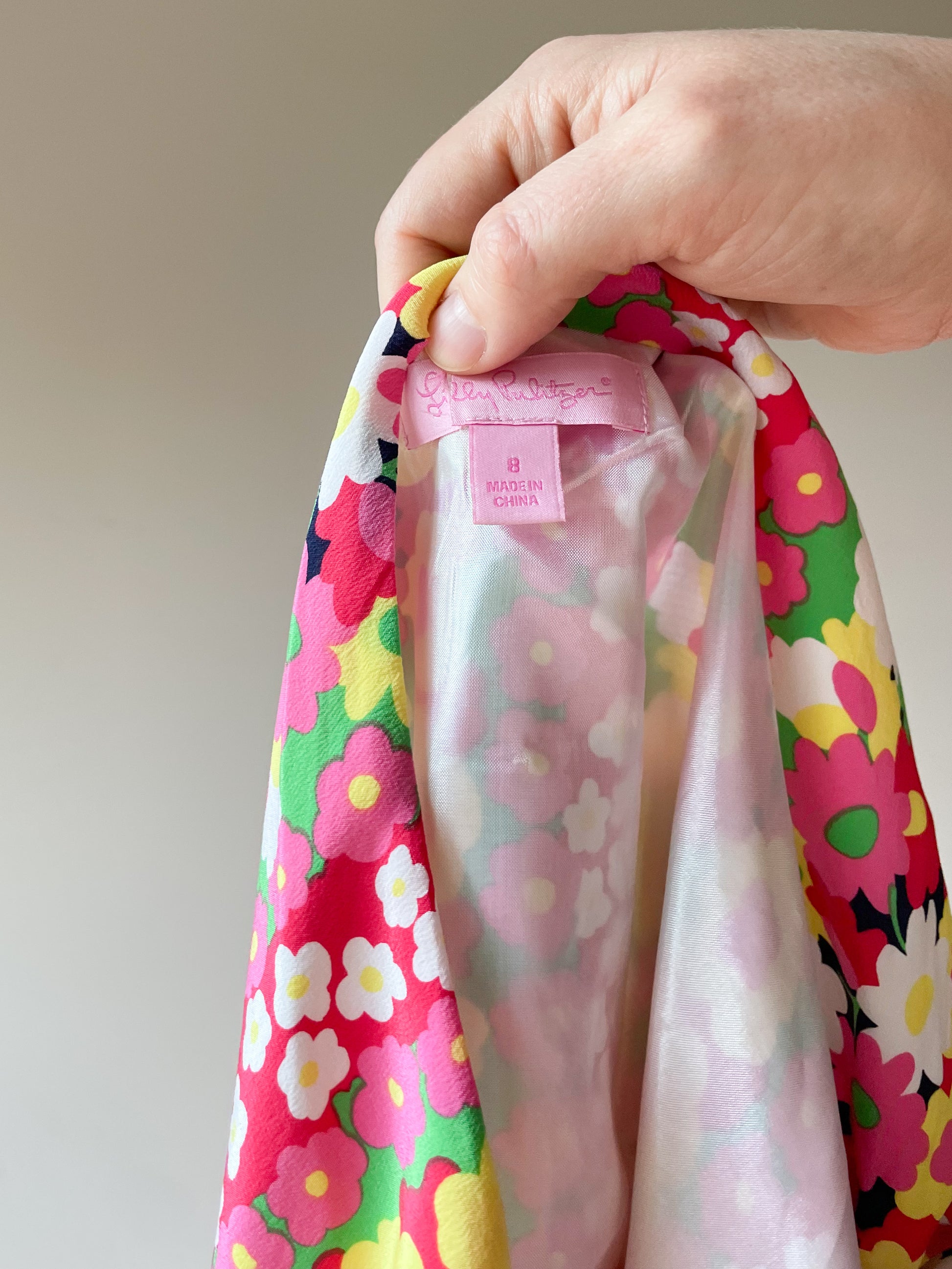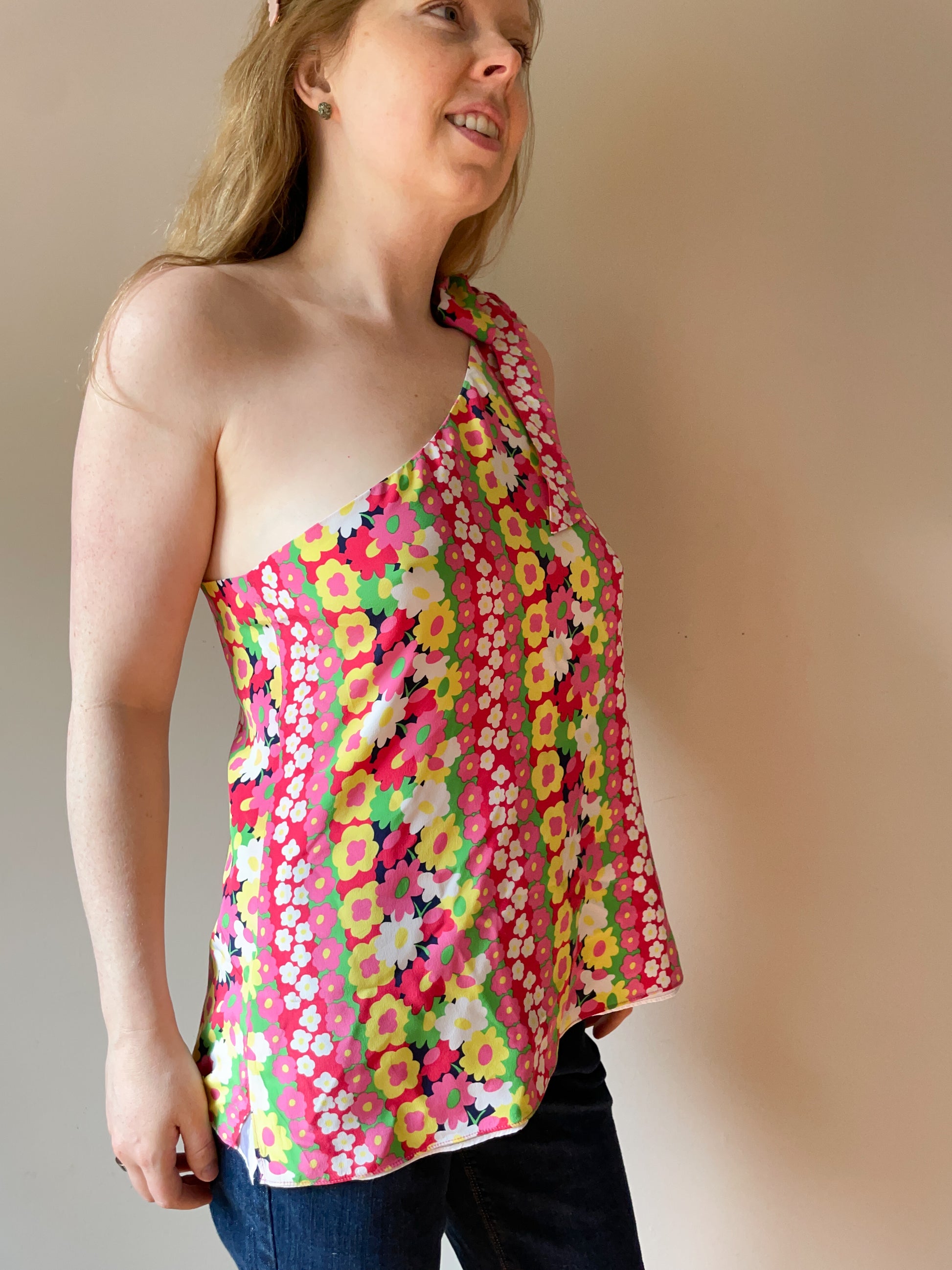 Lily Pulitzer Red Retro Floral Silk One Shoulder Bow Top - Size 8