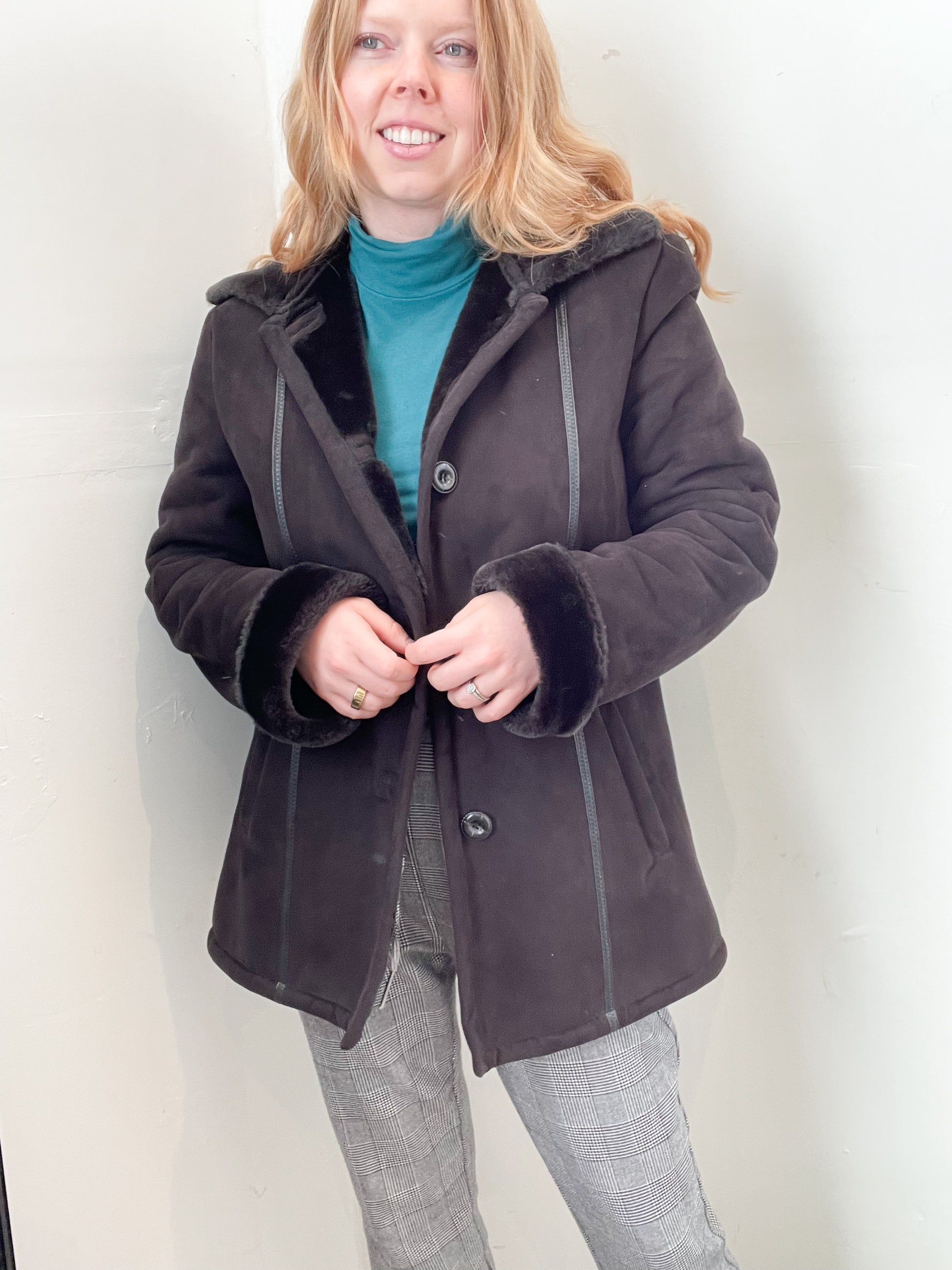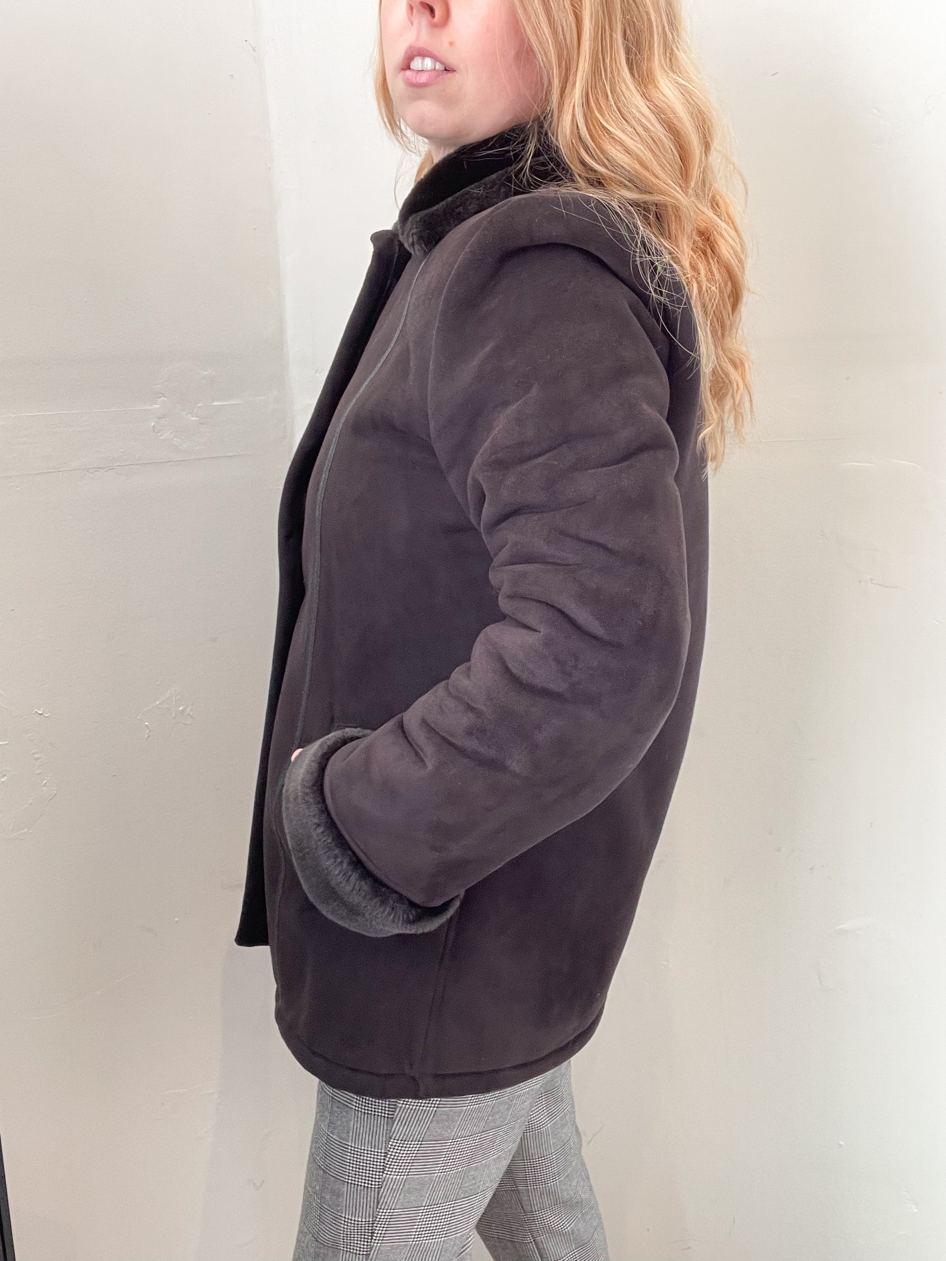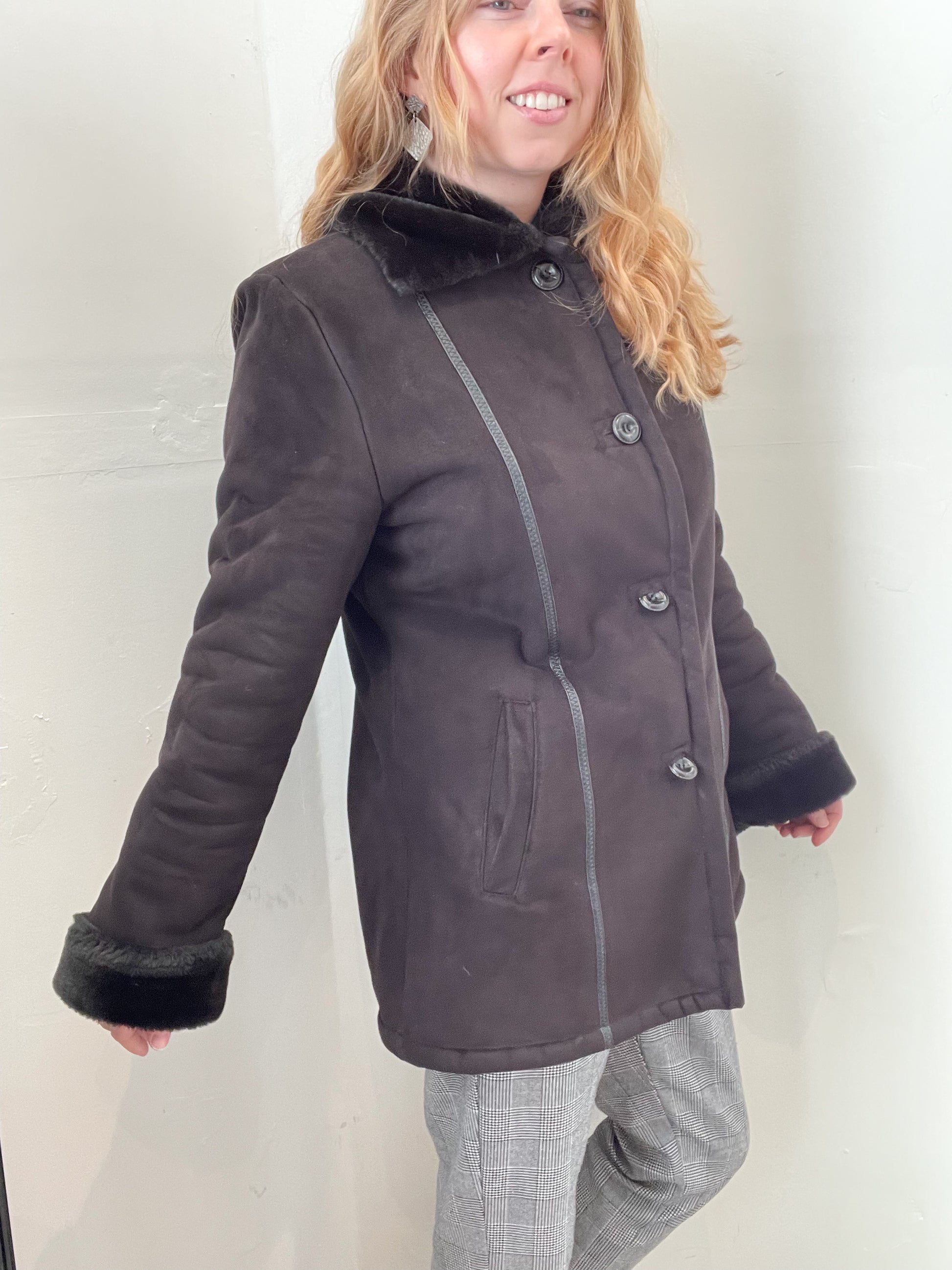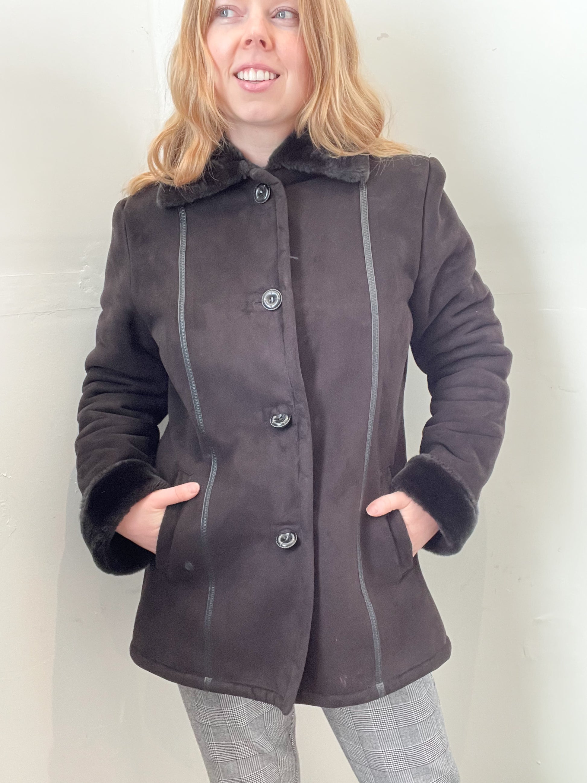 Liz Claiborne Brown Faux Fur Shearling Jacket - Medium