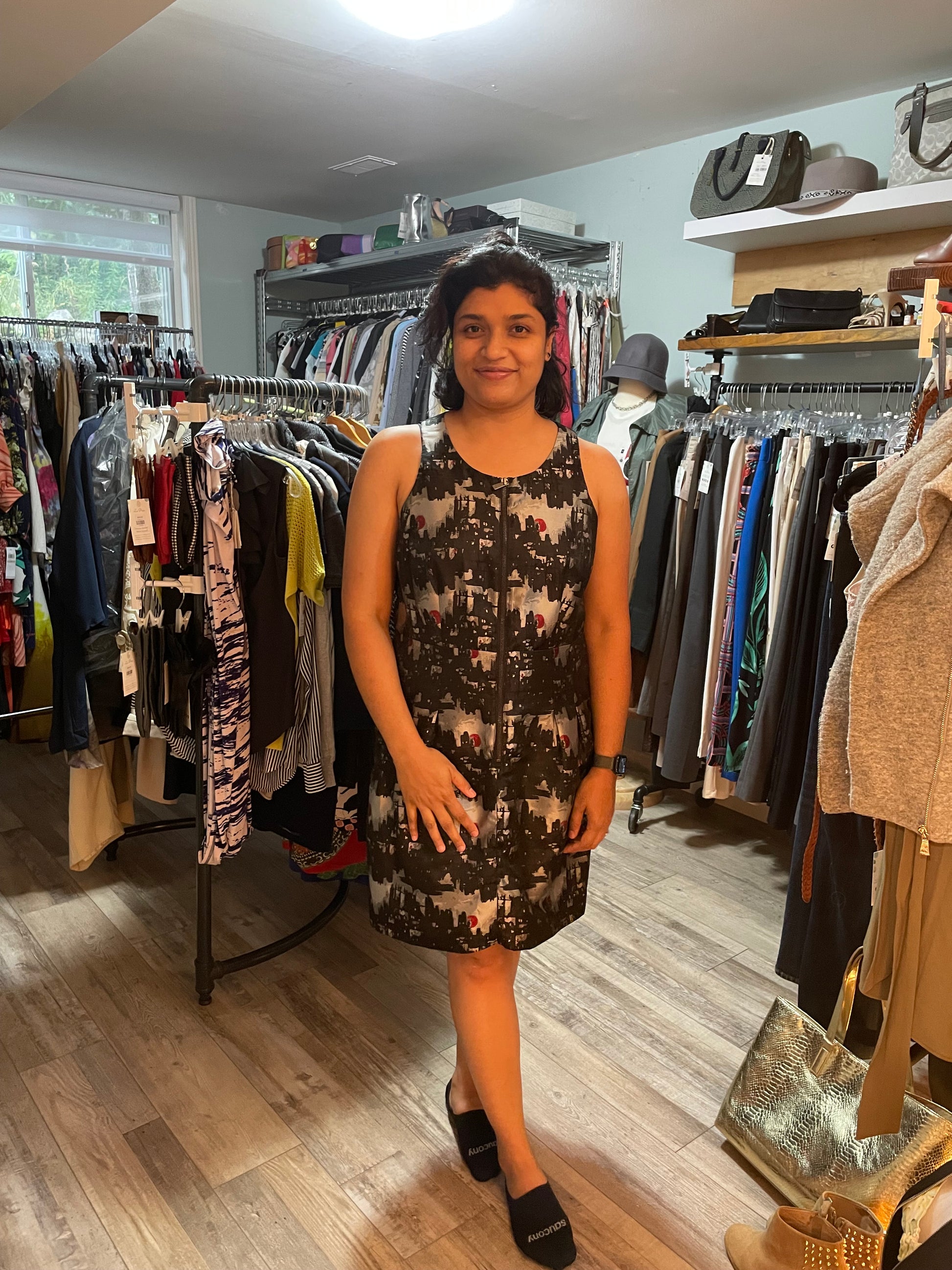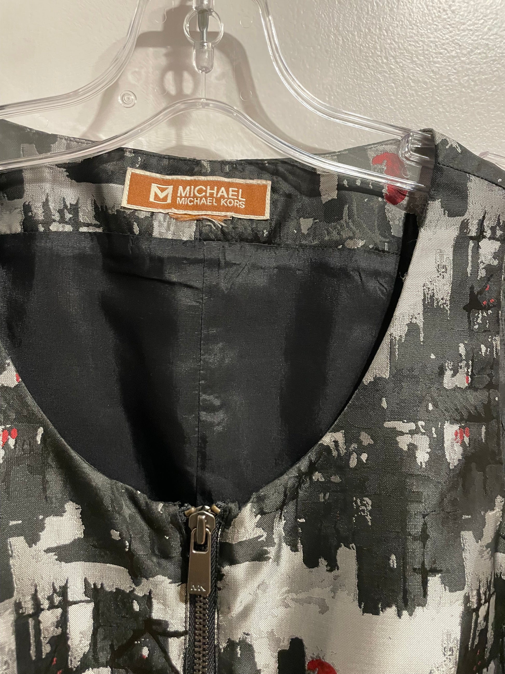 Designer Black & Grey Abstract Zip-Front Dress – Size Small