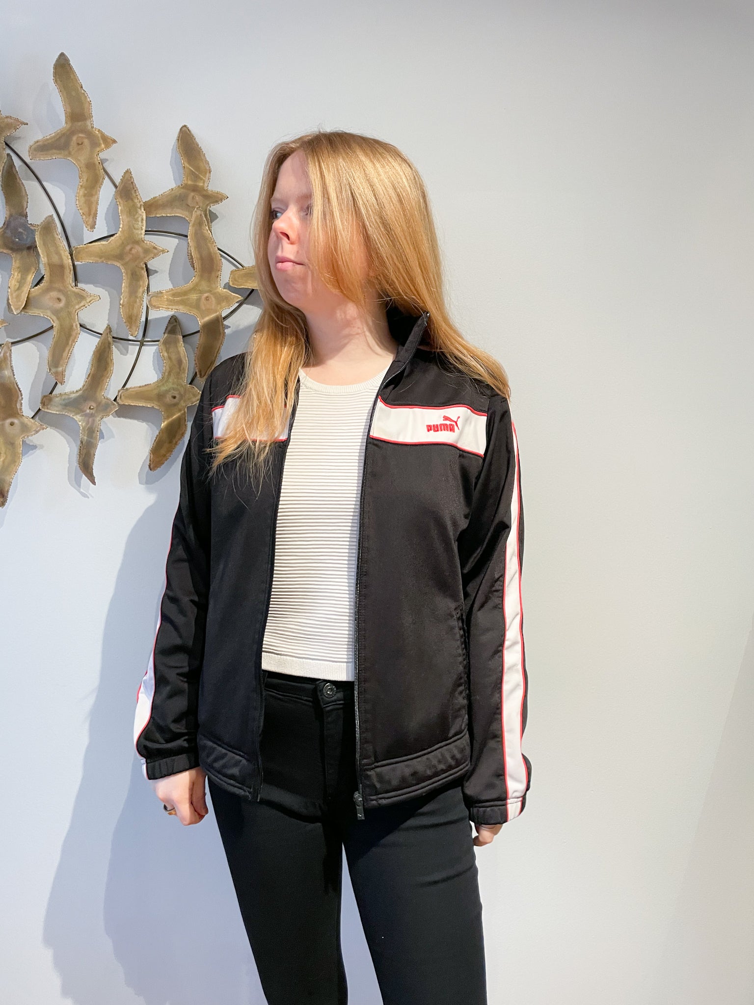 PUMA Black Red Piped Iconic Zipper Track Jacket - Large