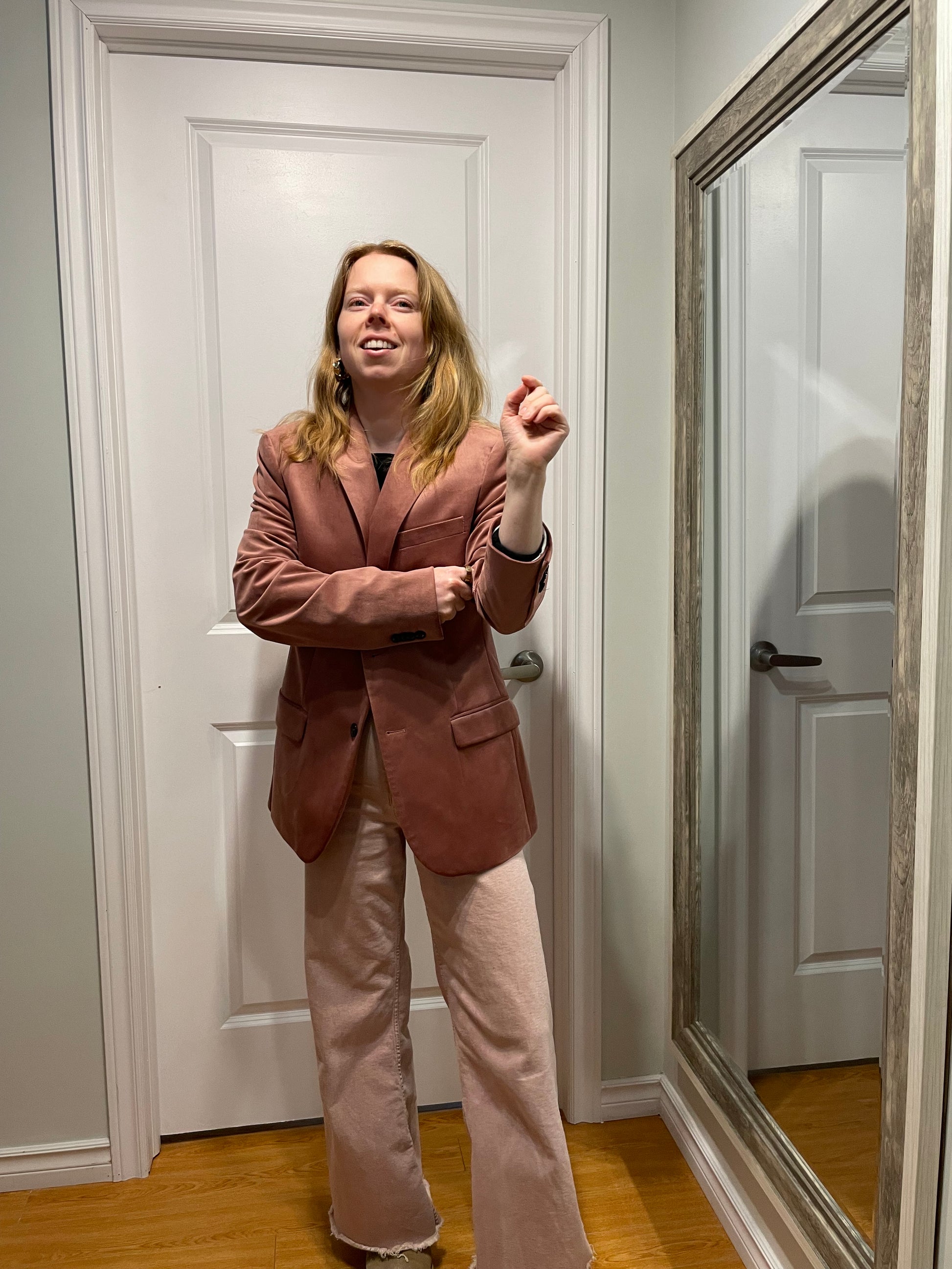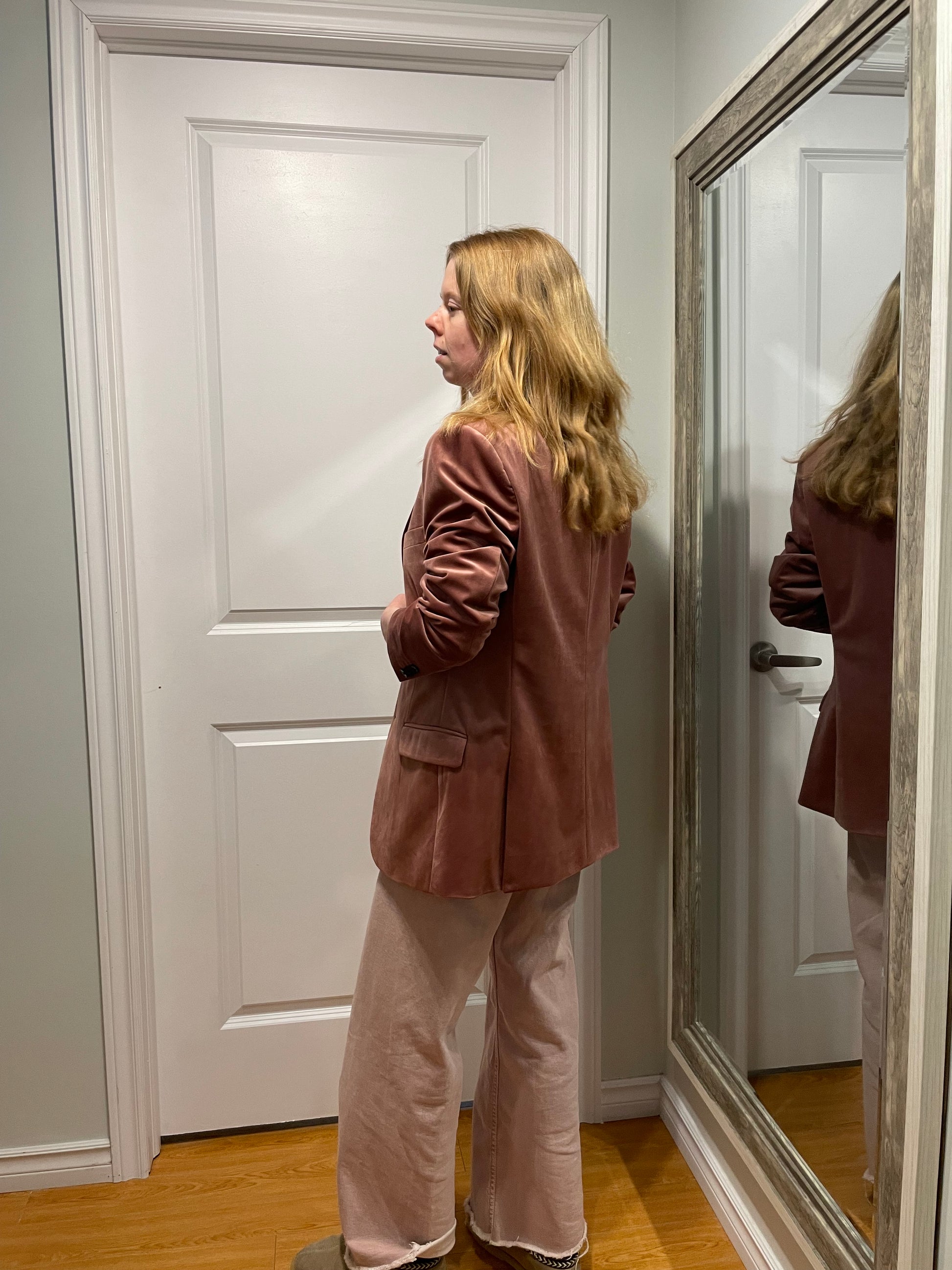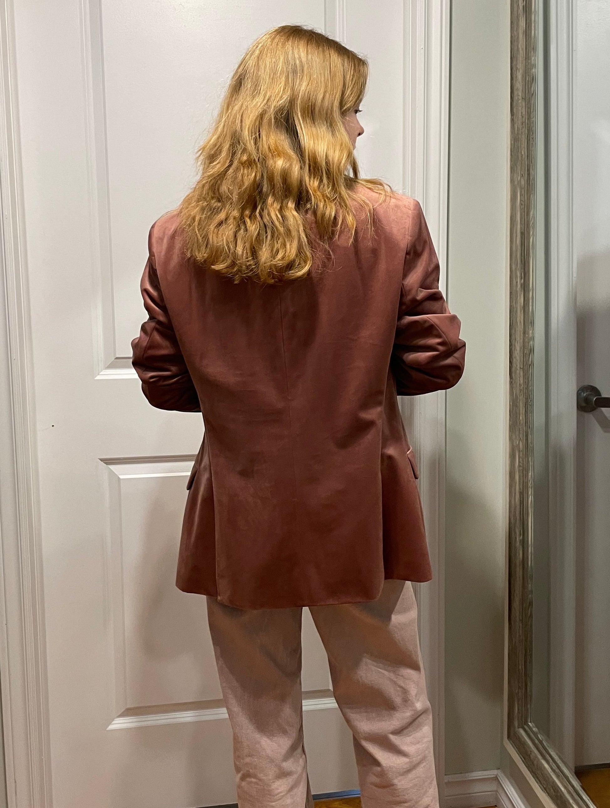 RW&CO Dusty Rose Velvet Slim-Fit Blazer – Medium