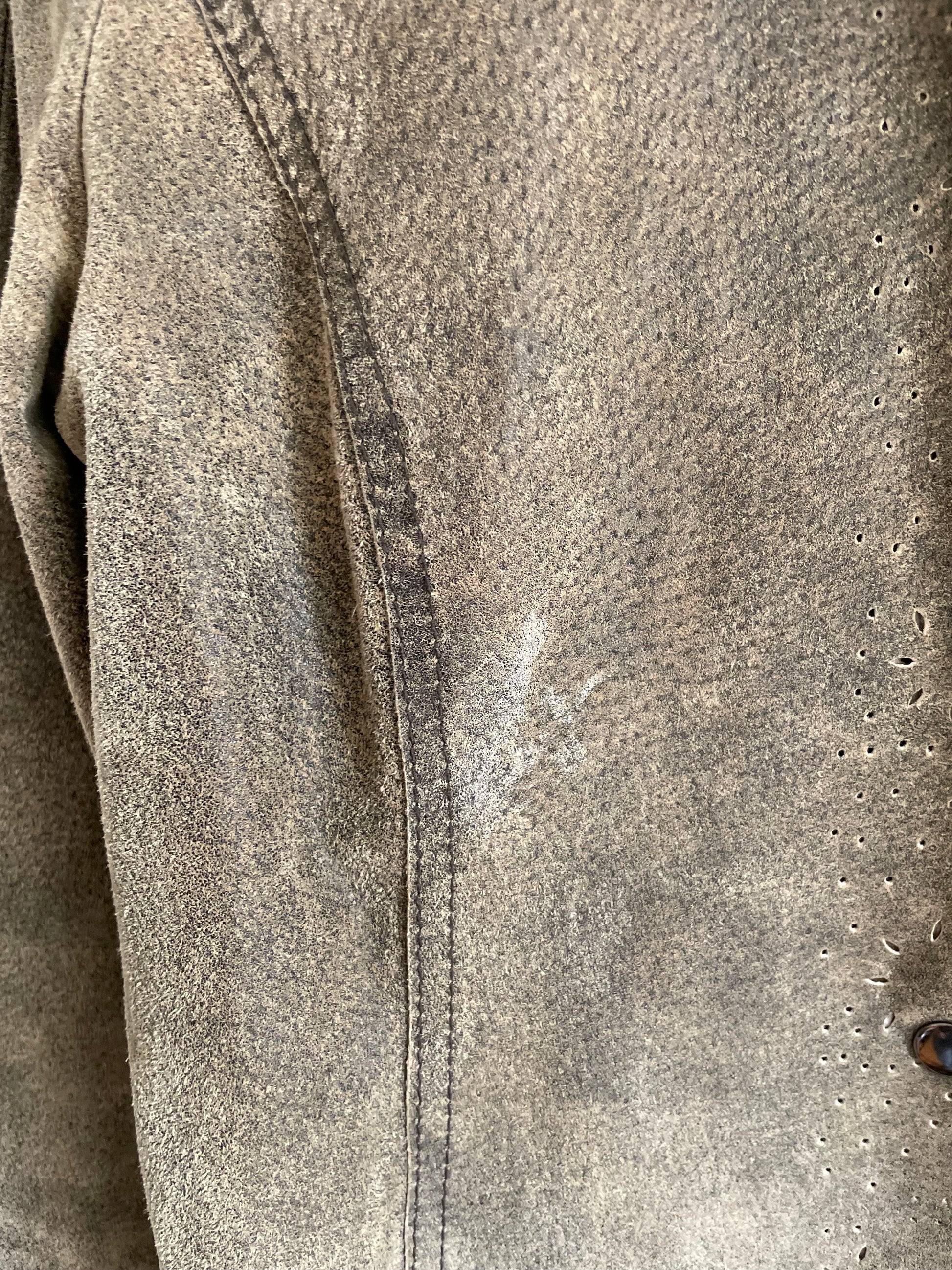 Spanner Taupe Genuine Leather Laser-Cut Jacket — Size Small