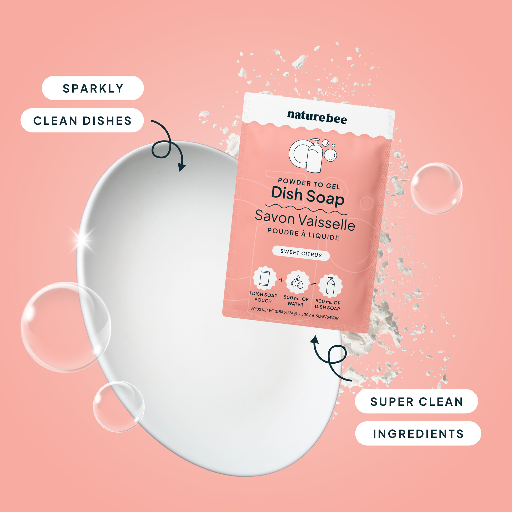 Dissolves to make a beautifully scented 500ml Gel Dish Soap - washing dishes squeaky-clean the eco-friendly way!