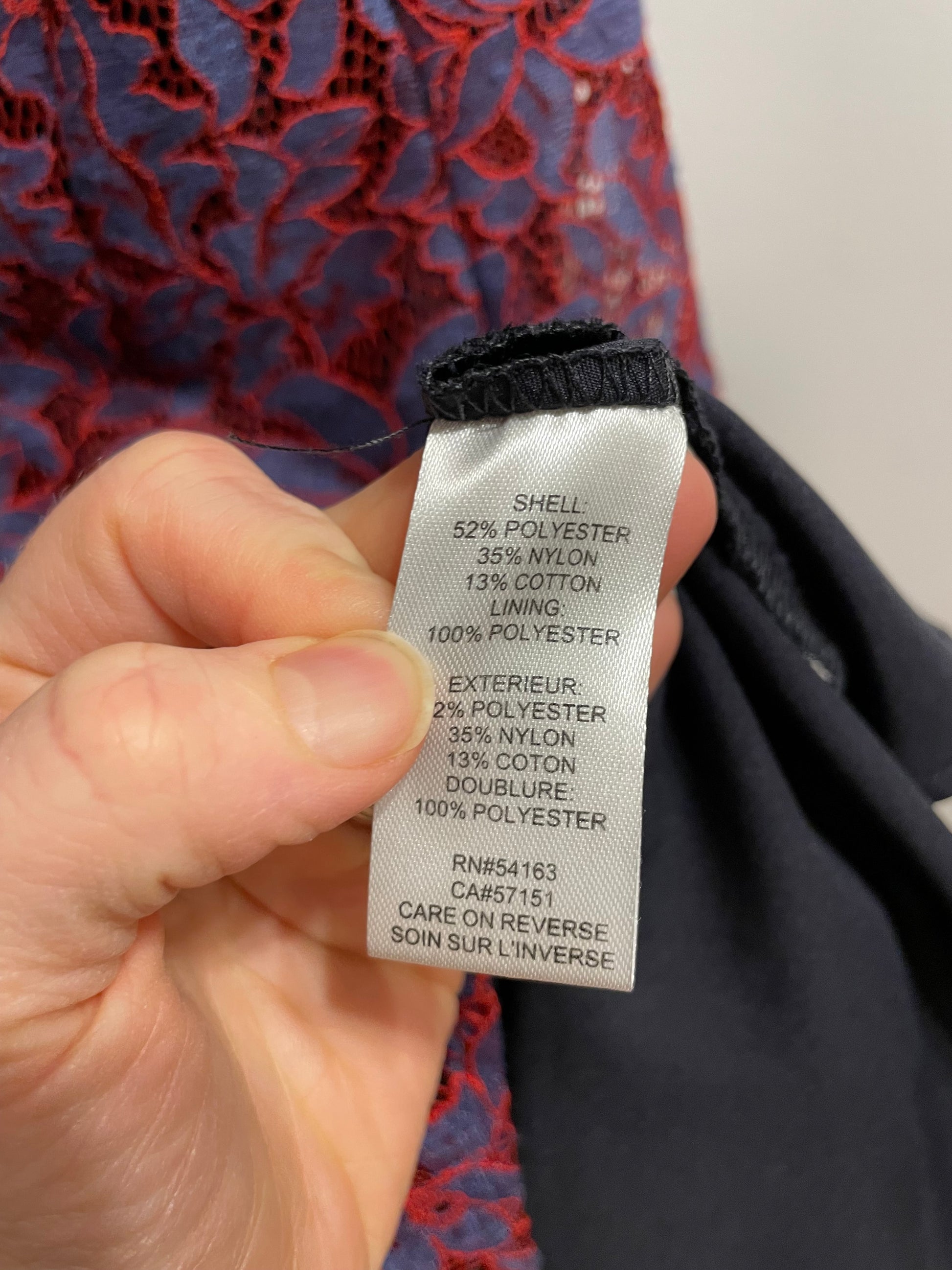 A striking floral lace dress by Tommy Hilfiger featuring a textured blue base overlaid with vivid red lace. The contrast creates a bold yet feminine look that works beautifully for dinners, celebrations, or polished workplace outfits. Fully lined for comfort, with a classic silhouette that flatters without feeling restrictive.
