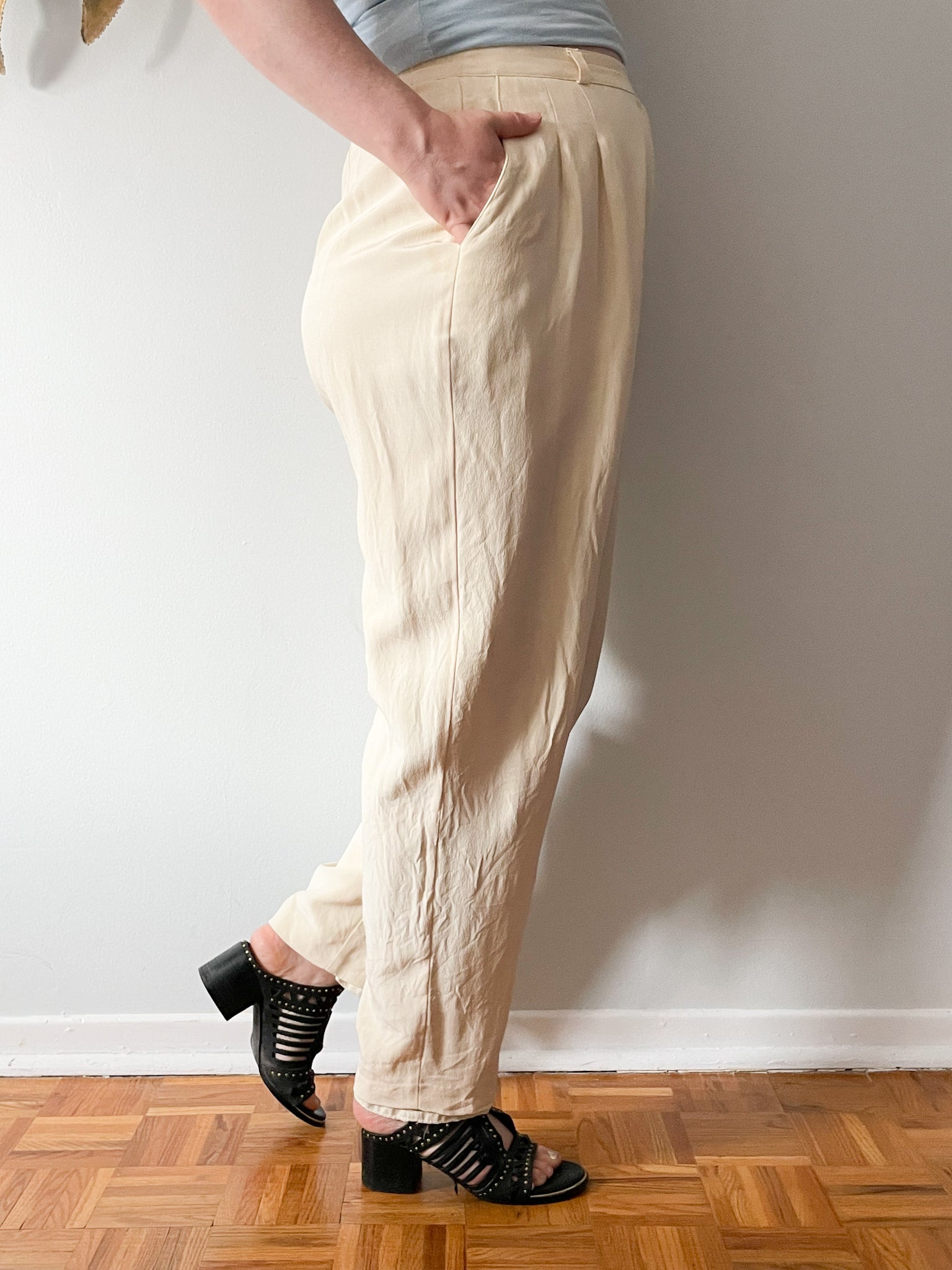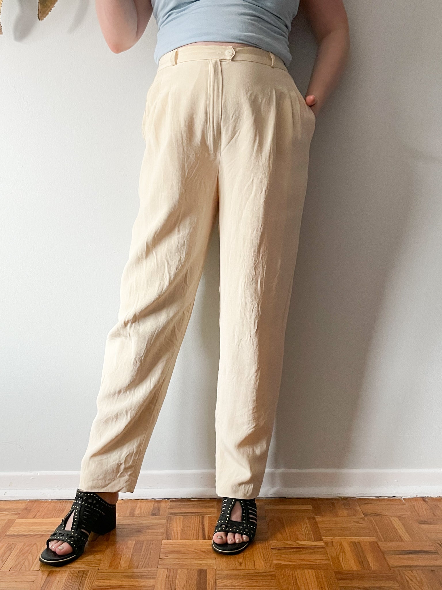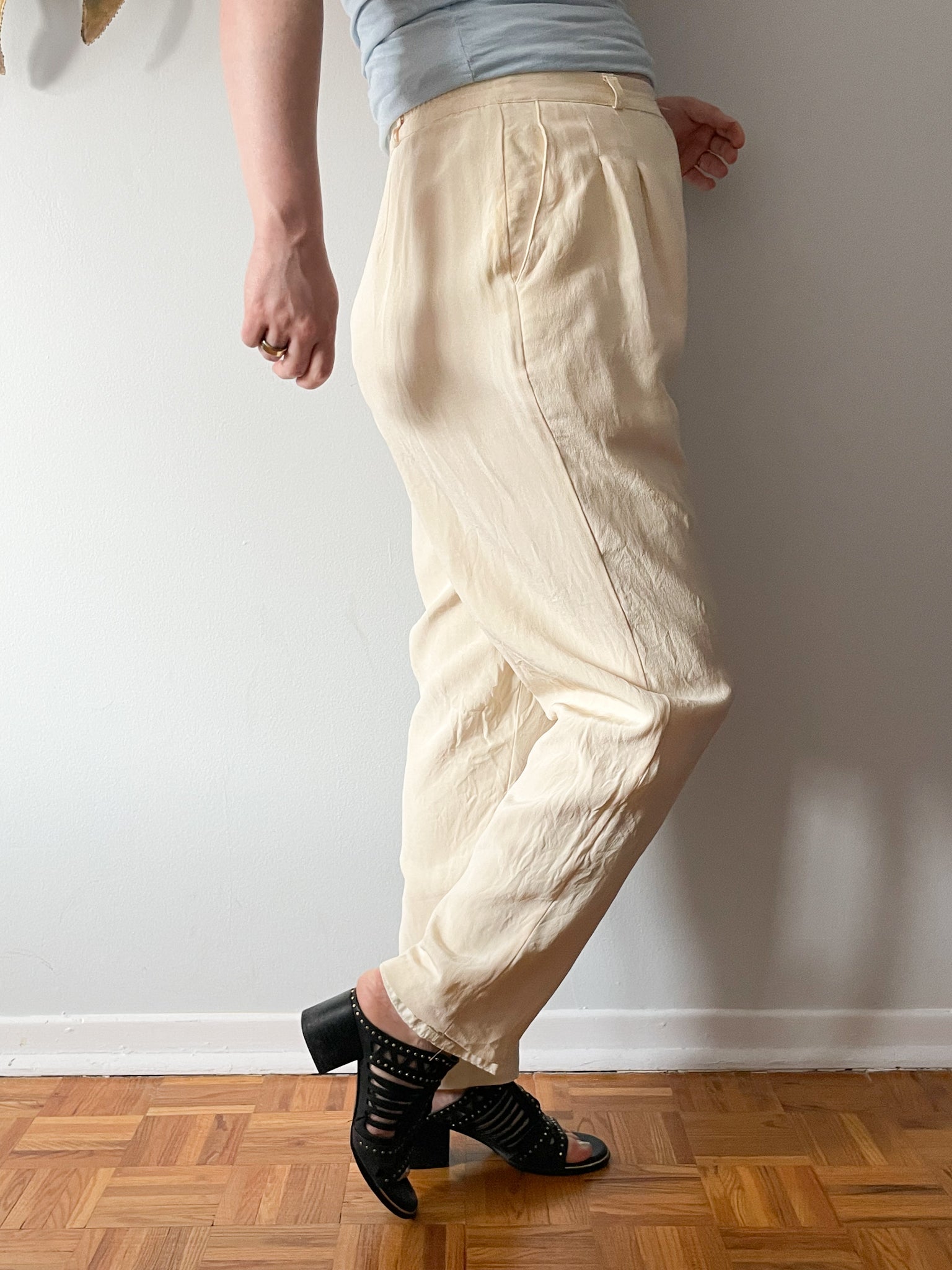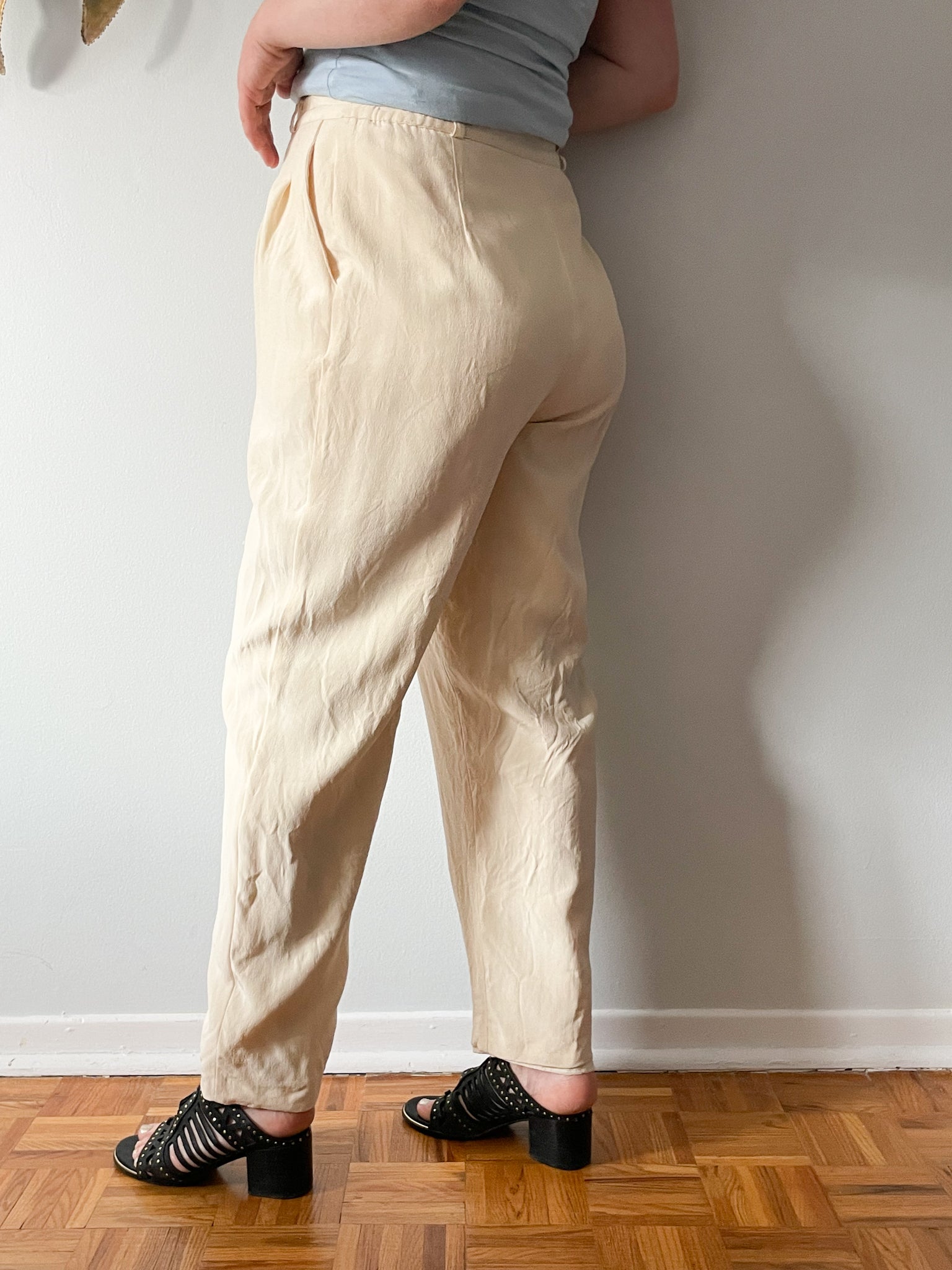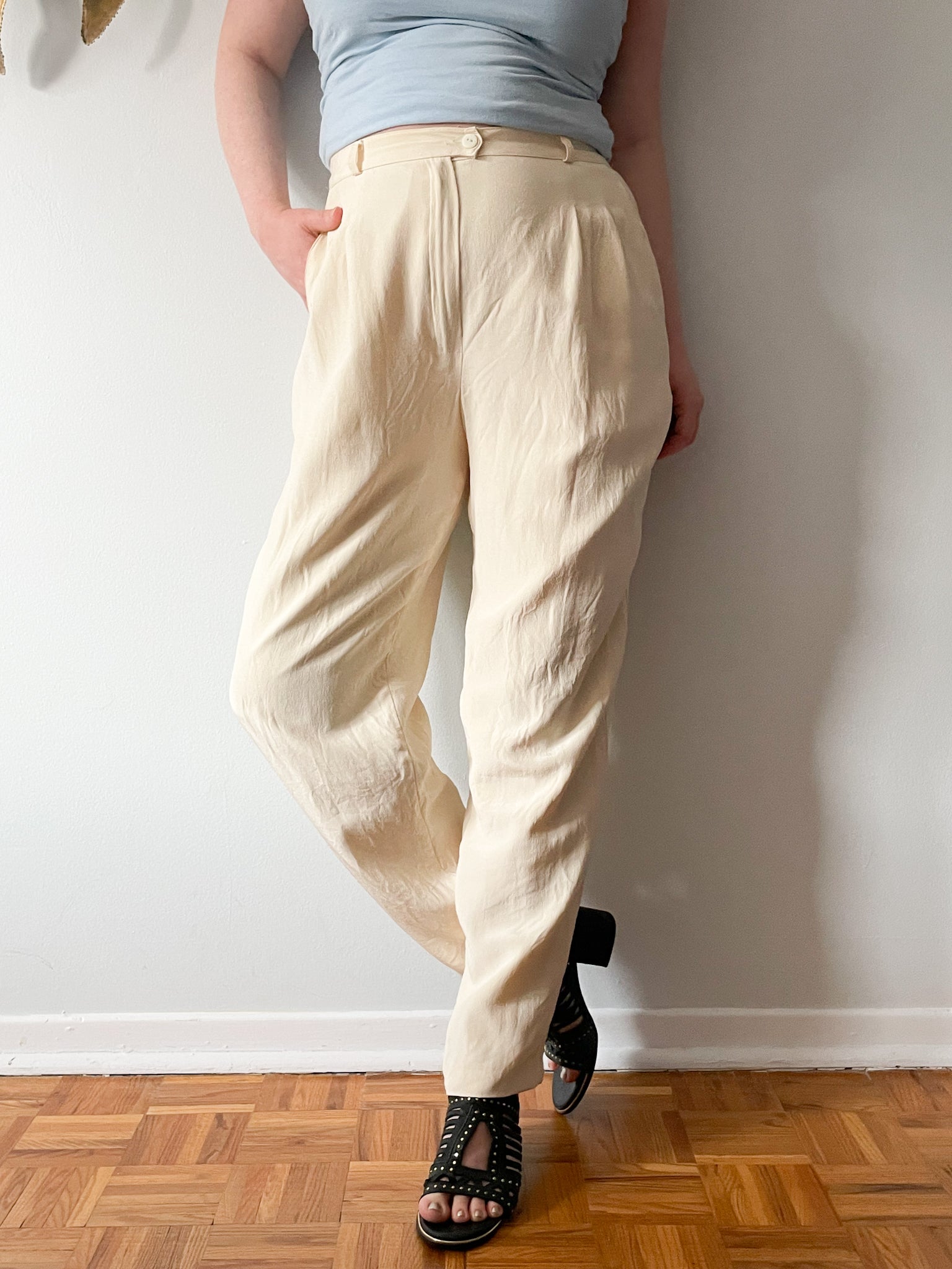 Vintage Bianca Nygard Cream 100% Silk High Rise Trouser Pants - Size 12