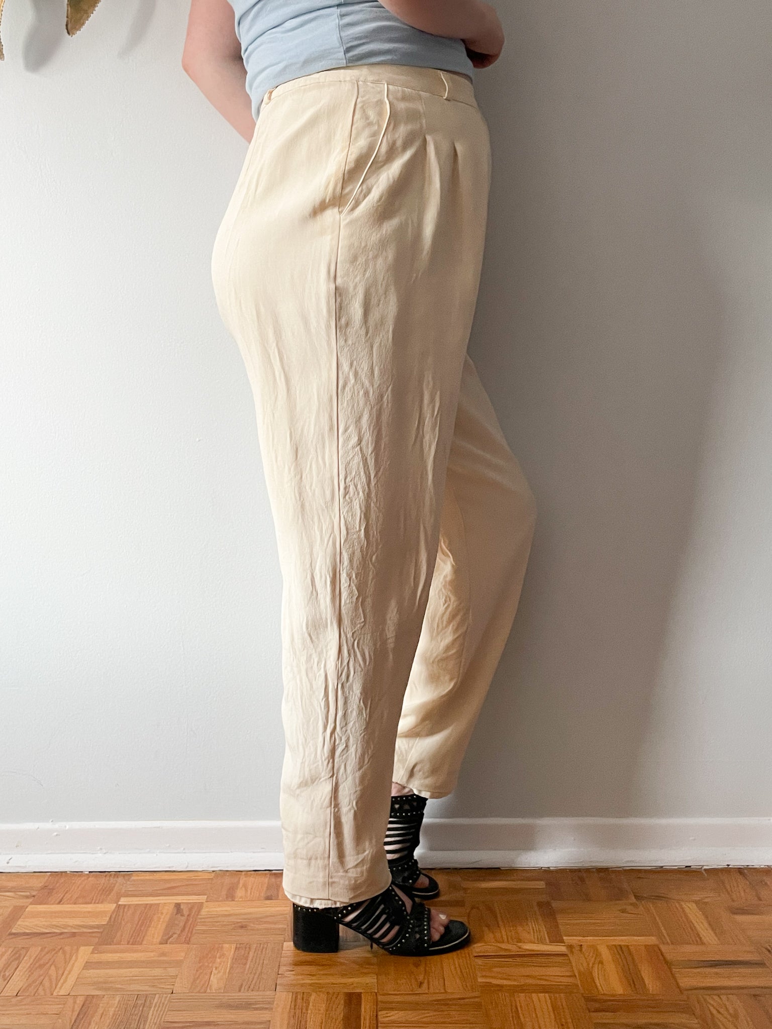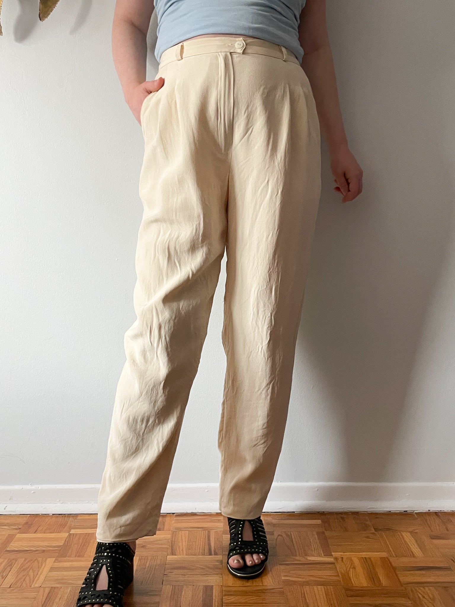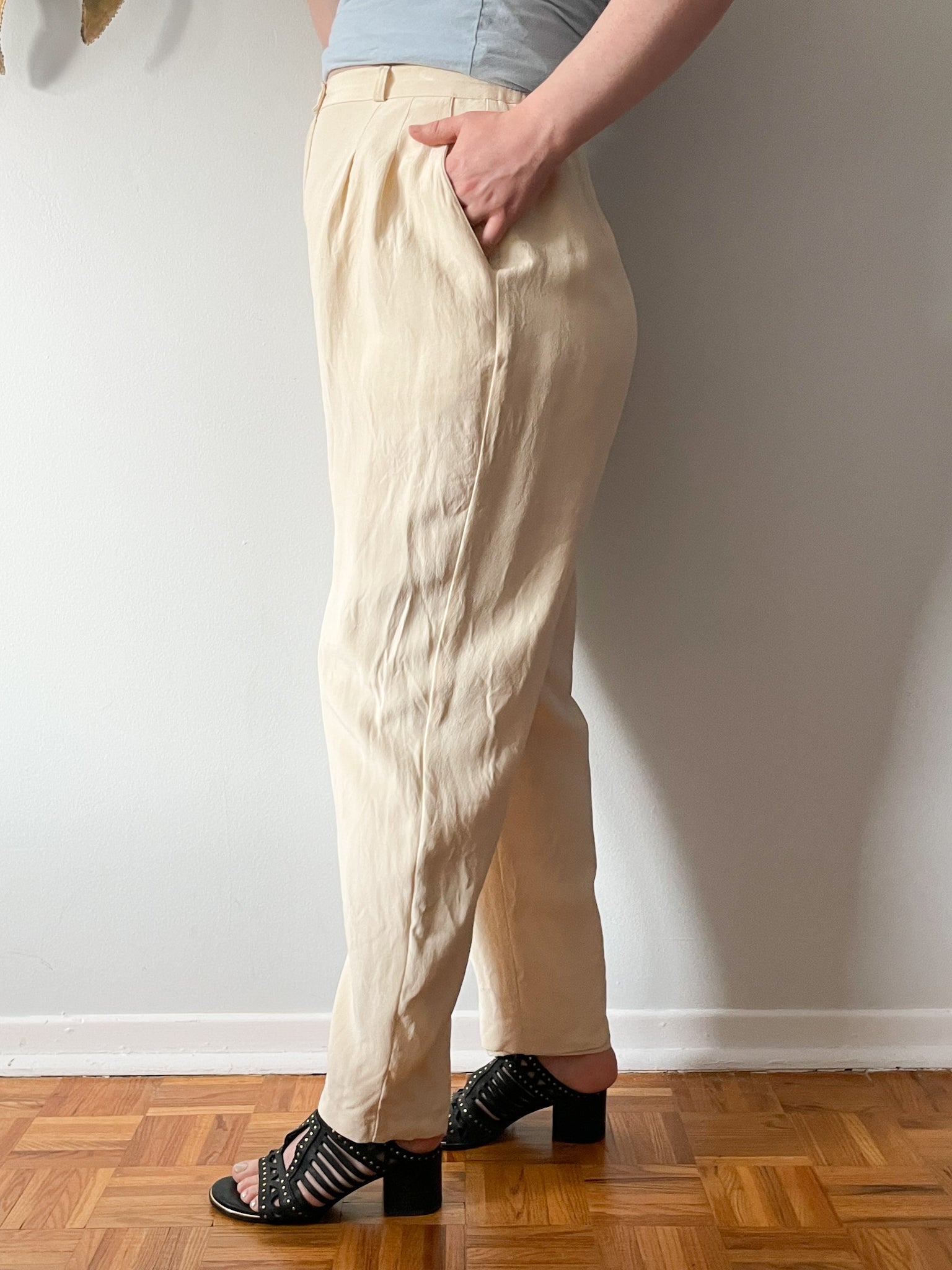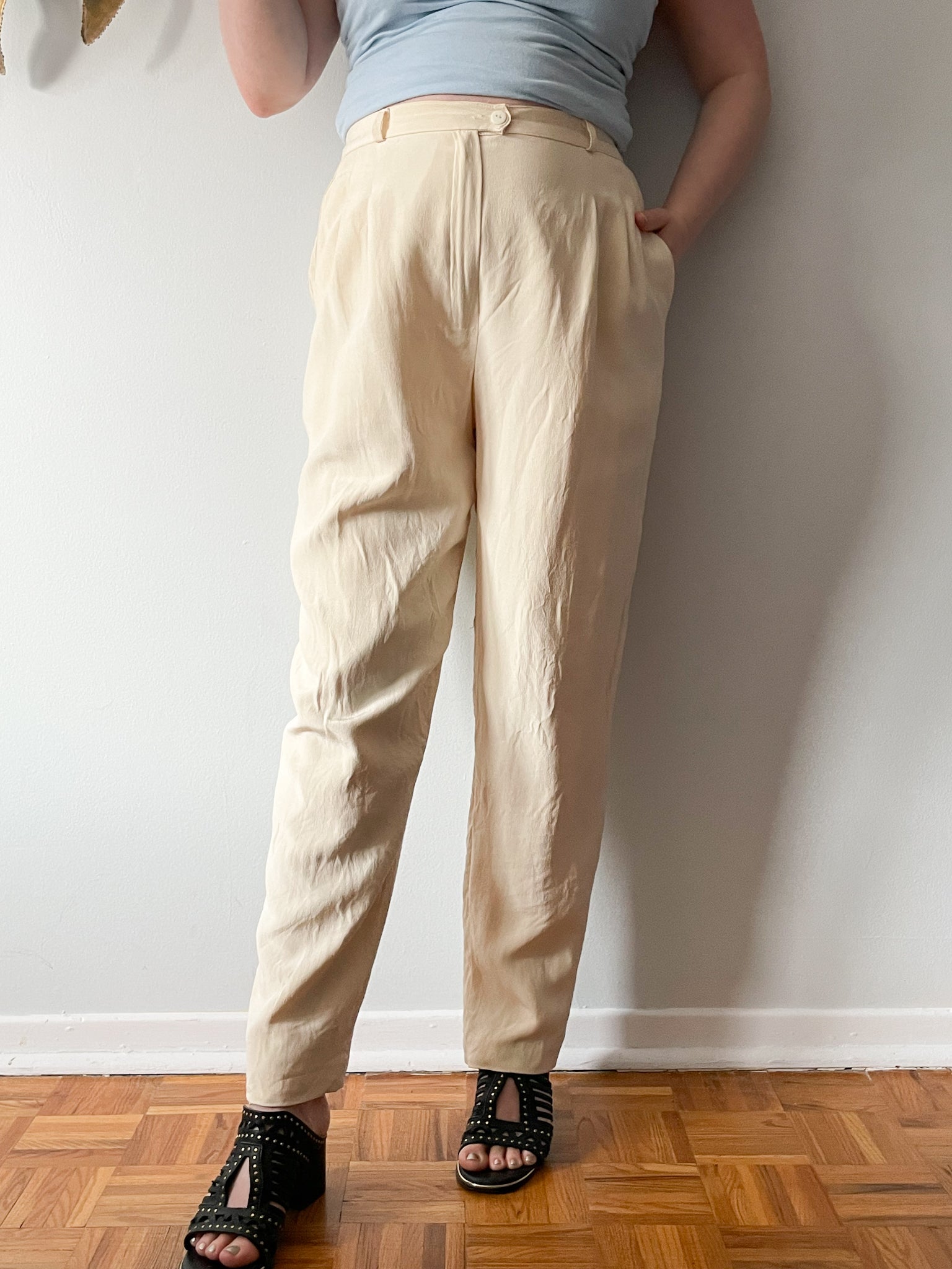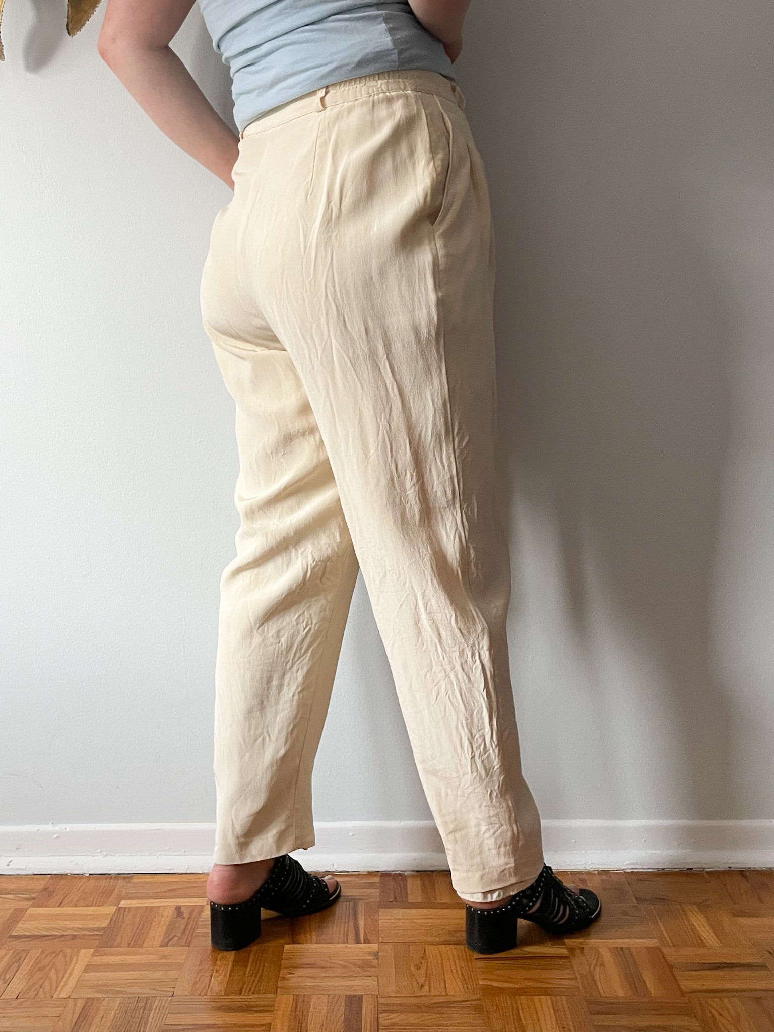 Vintage Bianca Nygard Cream 100% Silk High Rise Trouser Pants - Size 12
